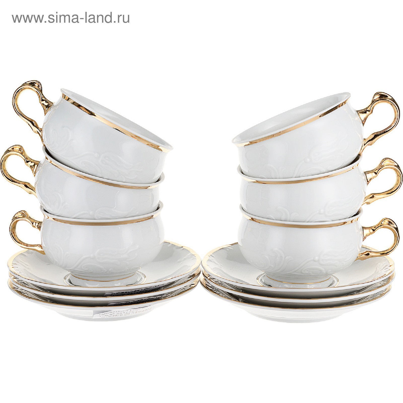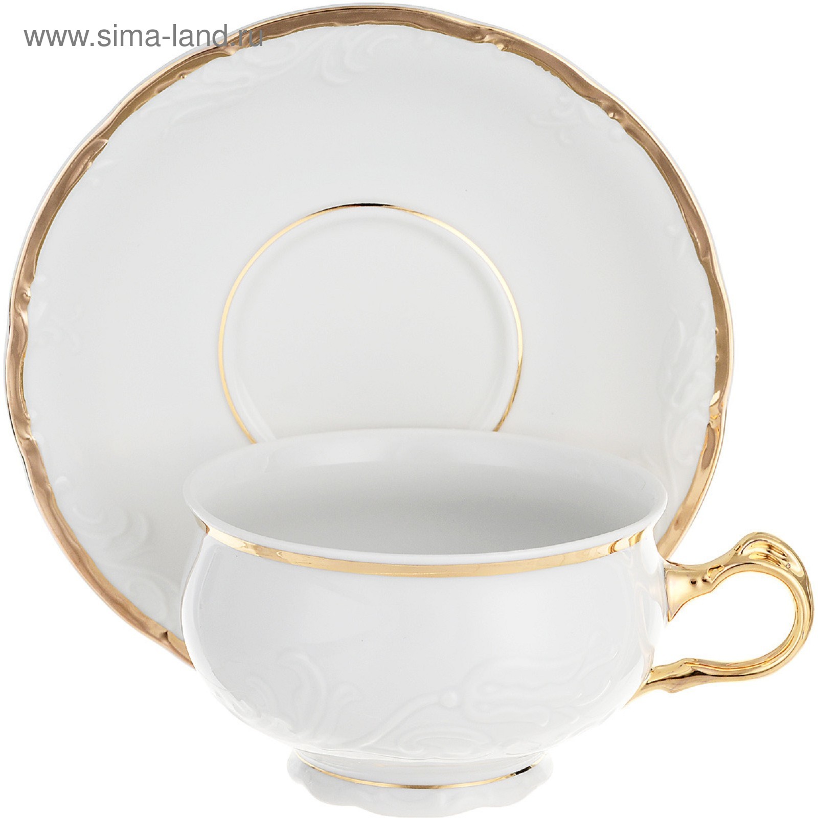 Чашка 320 мл с блюдцем 165 мм Tulip, декор «белоснежный тюльпан, золотые держатели»
