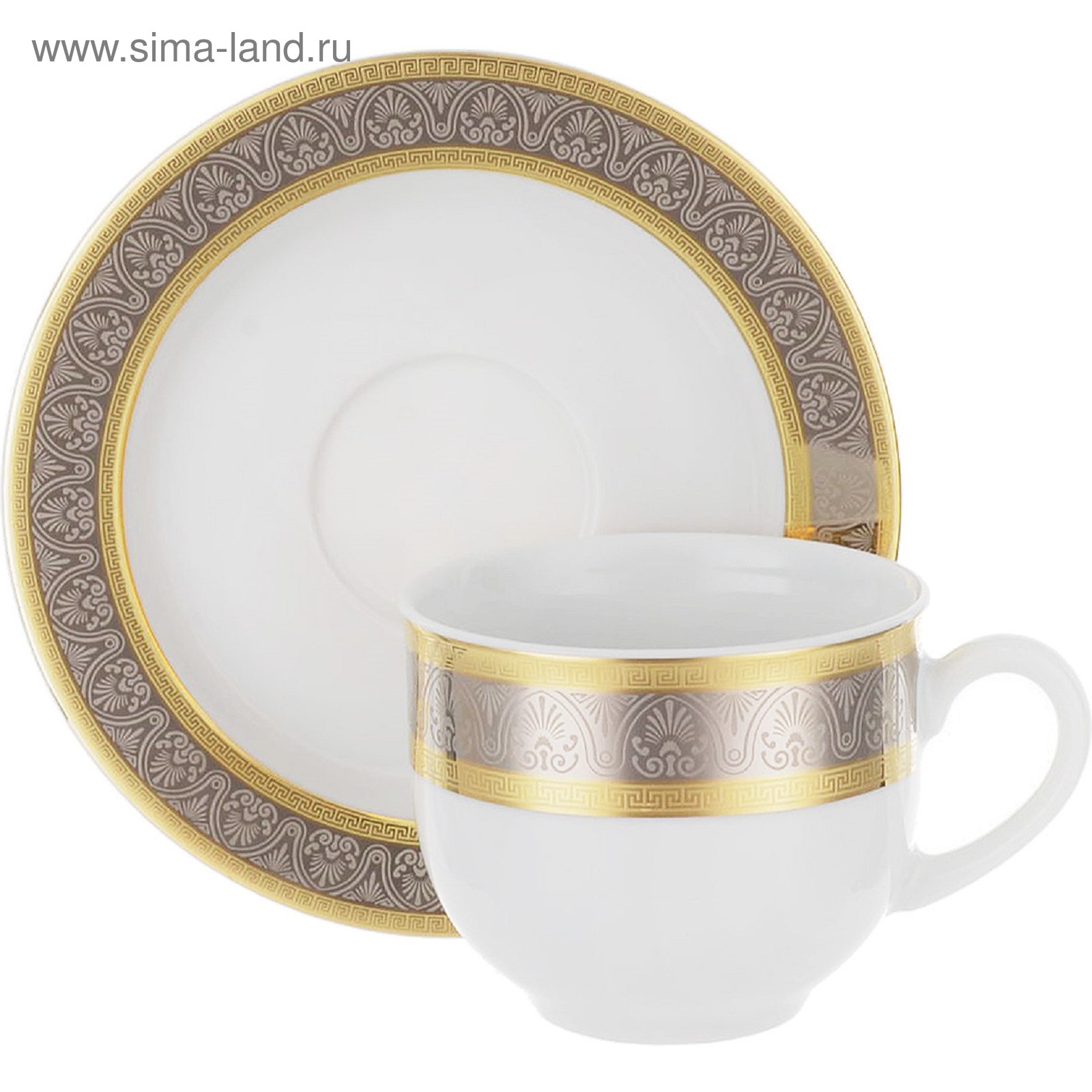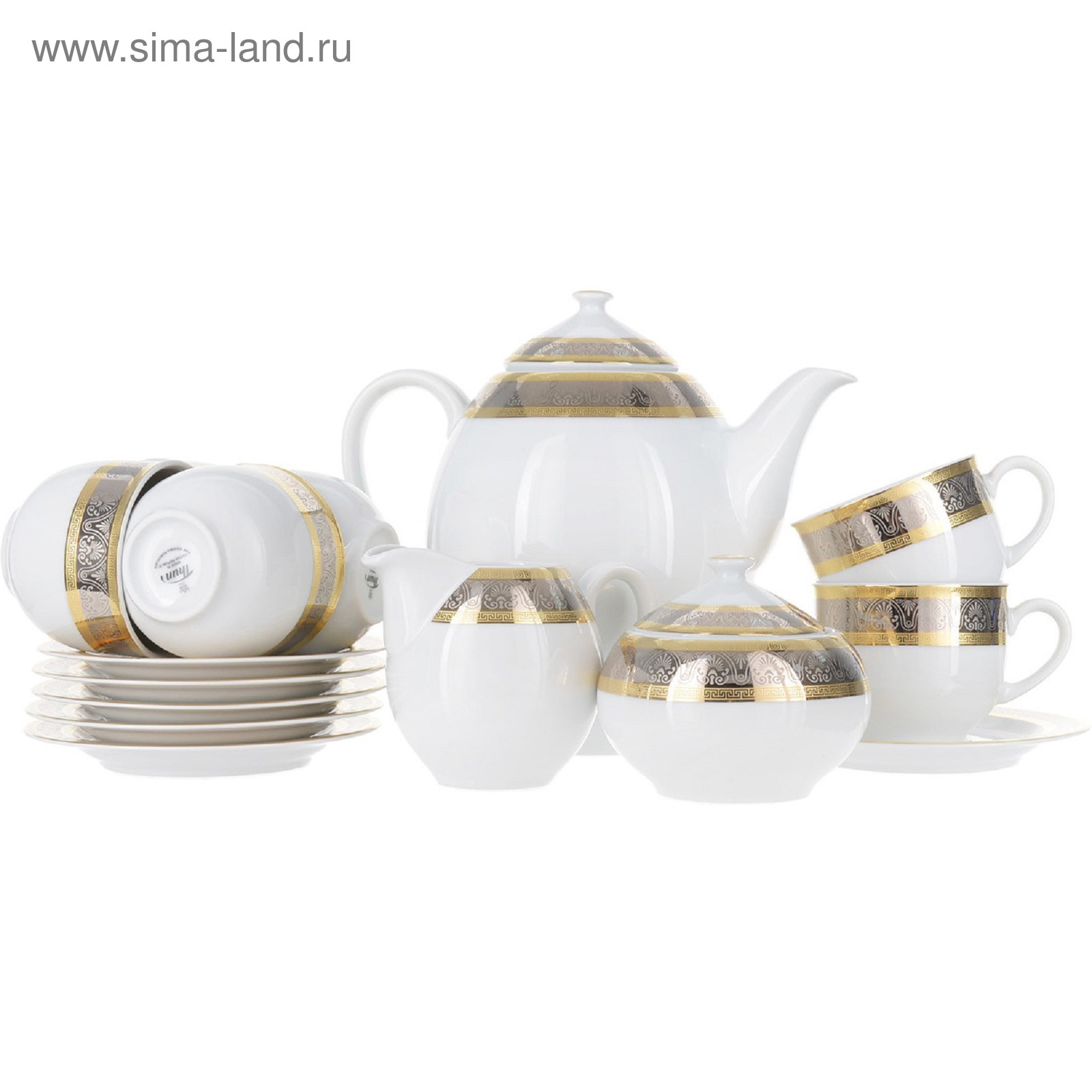 Кофейный сервиз 6/9 Opal, декор «широкий кант платина, золото», 15 предметов