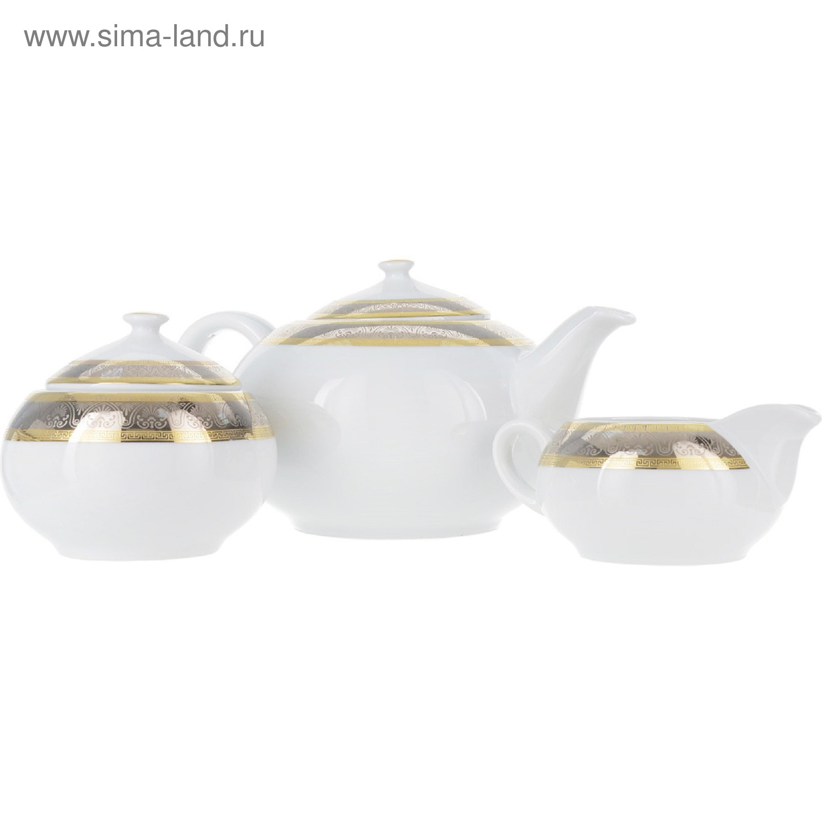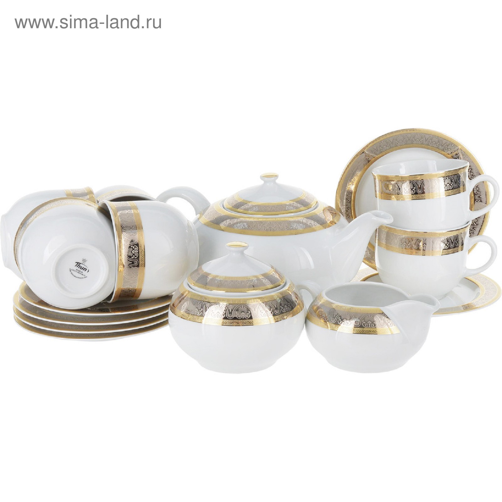 Чайный сервиз 6/9 Opal, декор «широкий кант платина, золото», 15 предметов