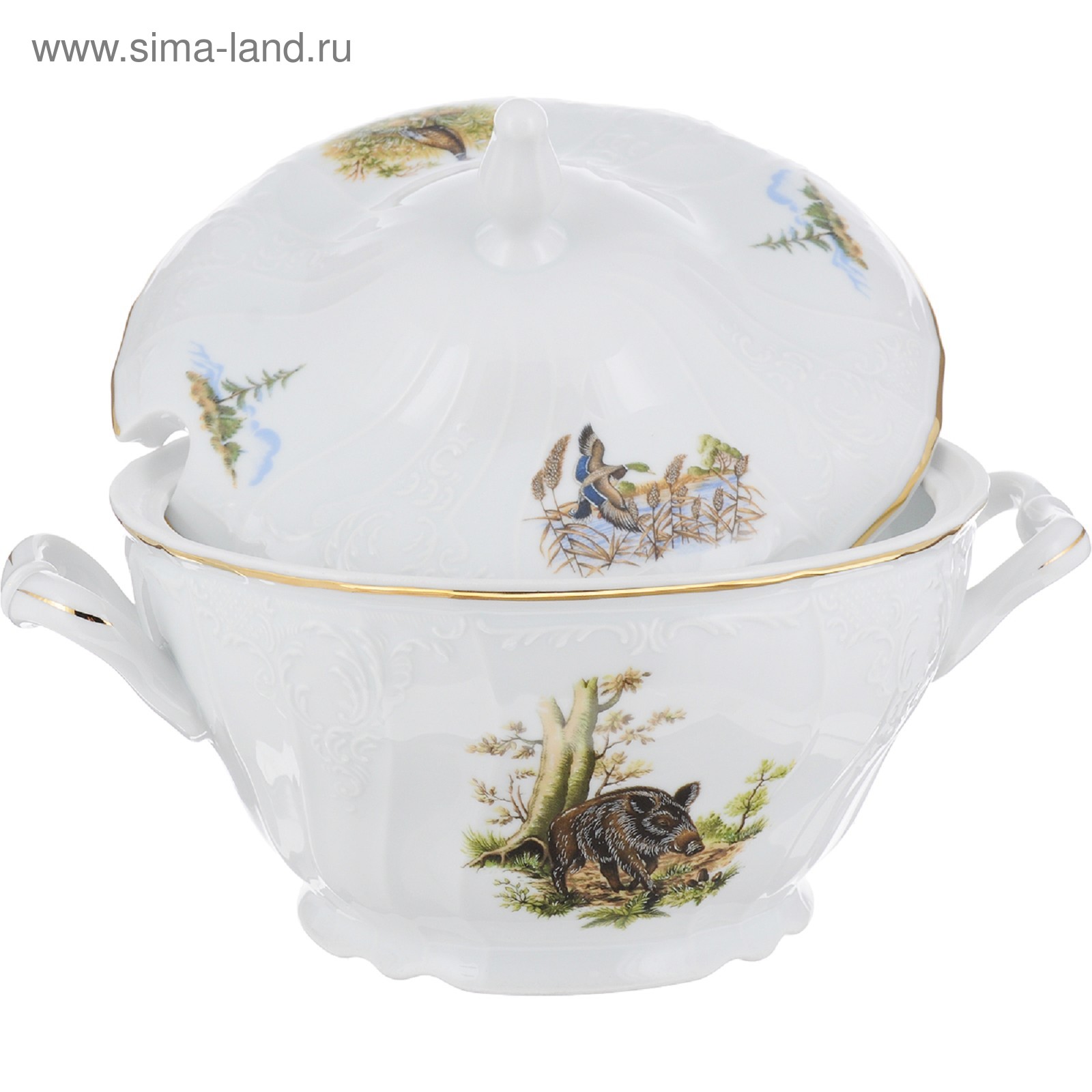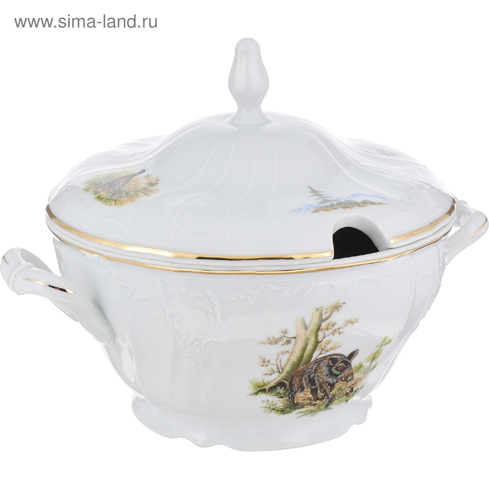 Супница bernadotte, декор «охотничьи сюжеты», 2.5 л. Цвет: Белый Форма: Круглая Объём, л: 2.5 Тематика: Животный мир Крышка: Да Материал: Фарфор Можно мыть в посудомоечной машине: Нет Можно использовать в СВЧ-печи: Нет Текстура: С рельефом Особенности: С золотой отводкой Форма: Круг, шар, цилиндр  развернуть описание ▼