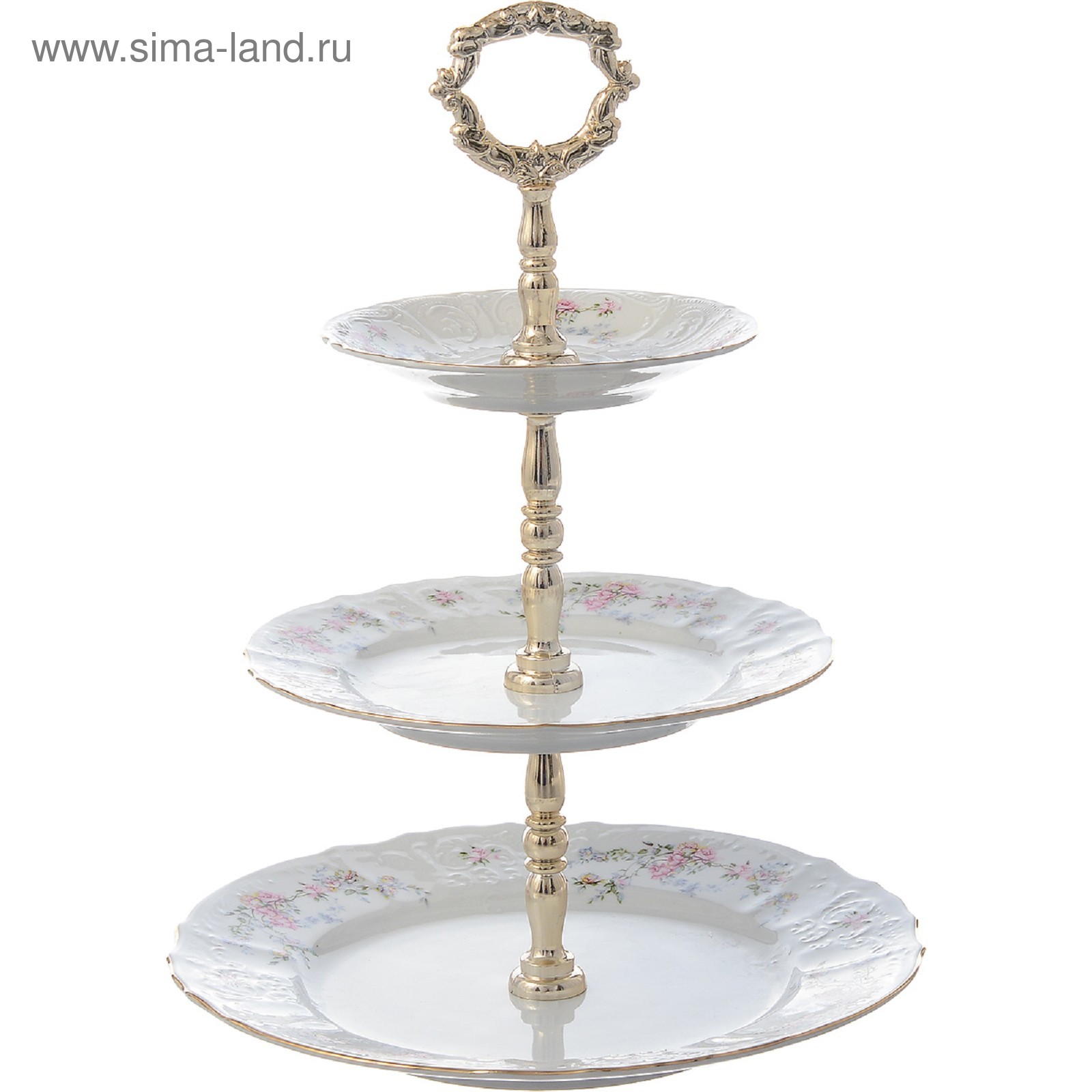 Этажерка 3-х ярусная Bernadotte, декор «дикая роза, отводка золото»