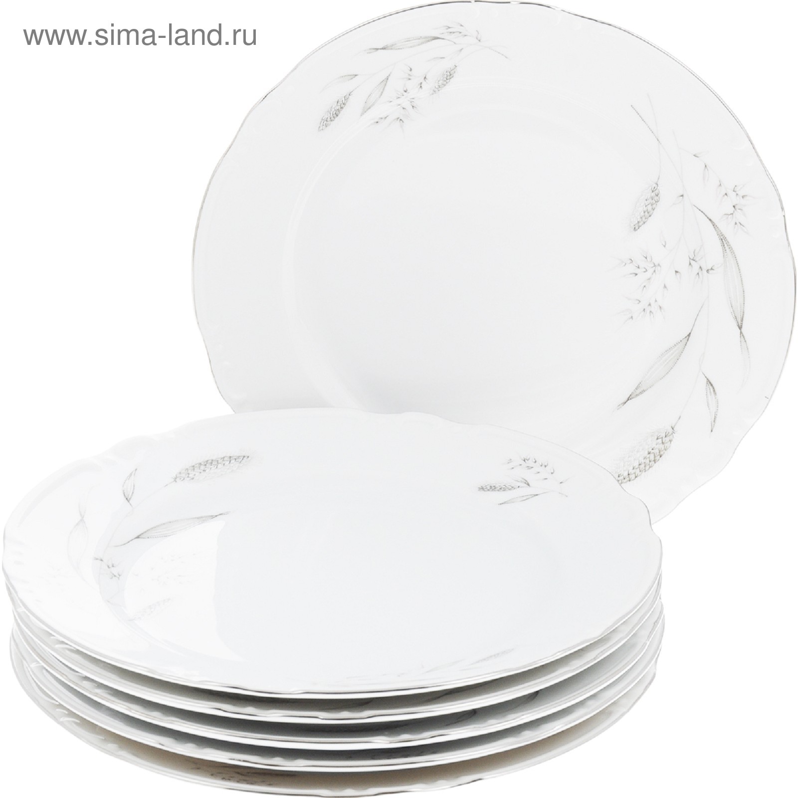Тарелка мелкая Constance, декор «серебряные колосья, отводка платина», 24 см
