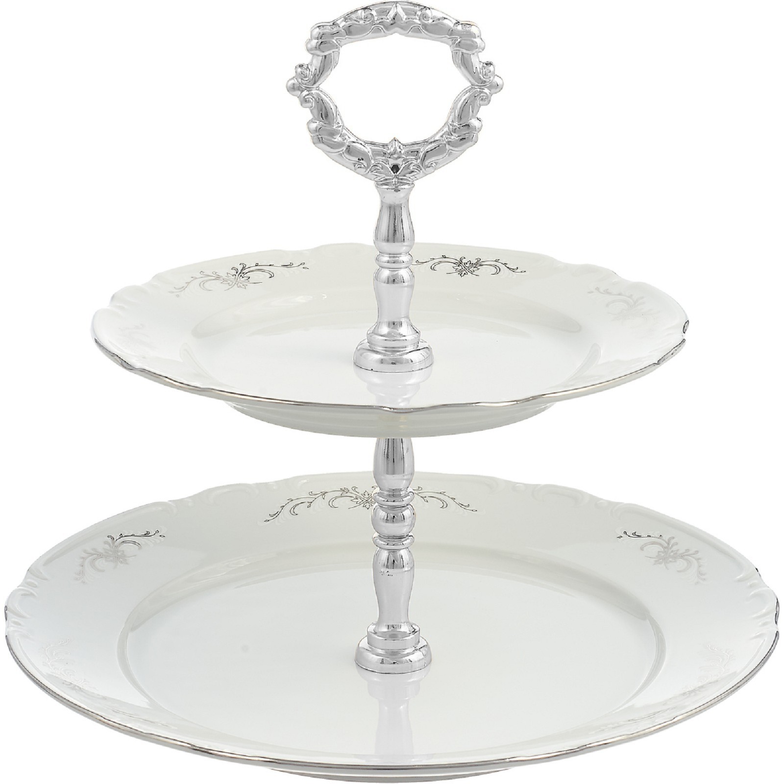 Этажерка 2-х ярусная Constance, декор «серый орнамент, отводка платина»