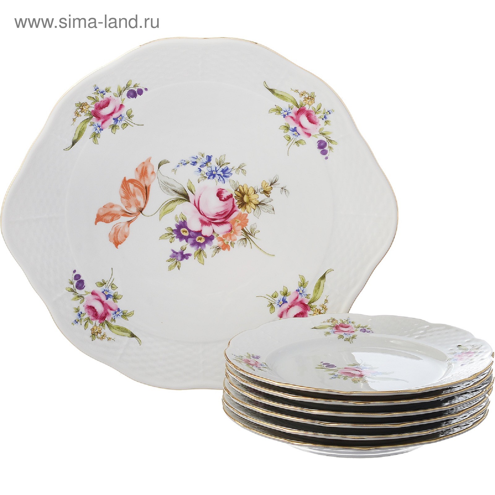 Набор для торта 7/6 Menuet, декор «мейсенский цветок, отводка золото», 7 предметов