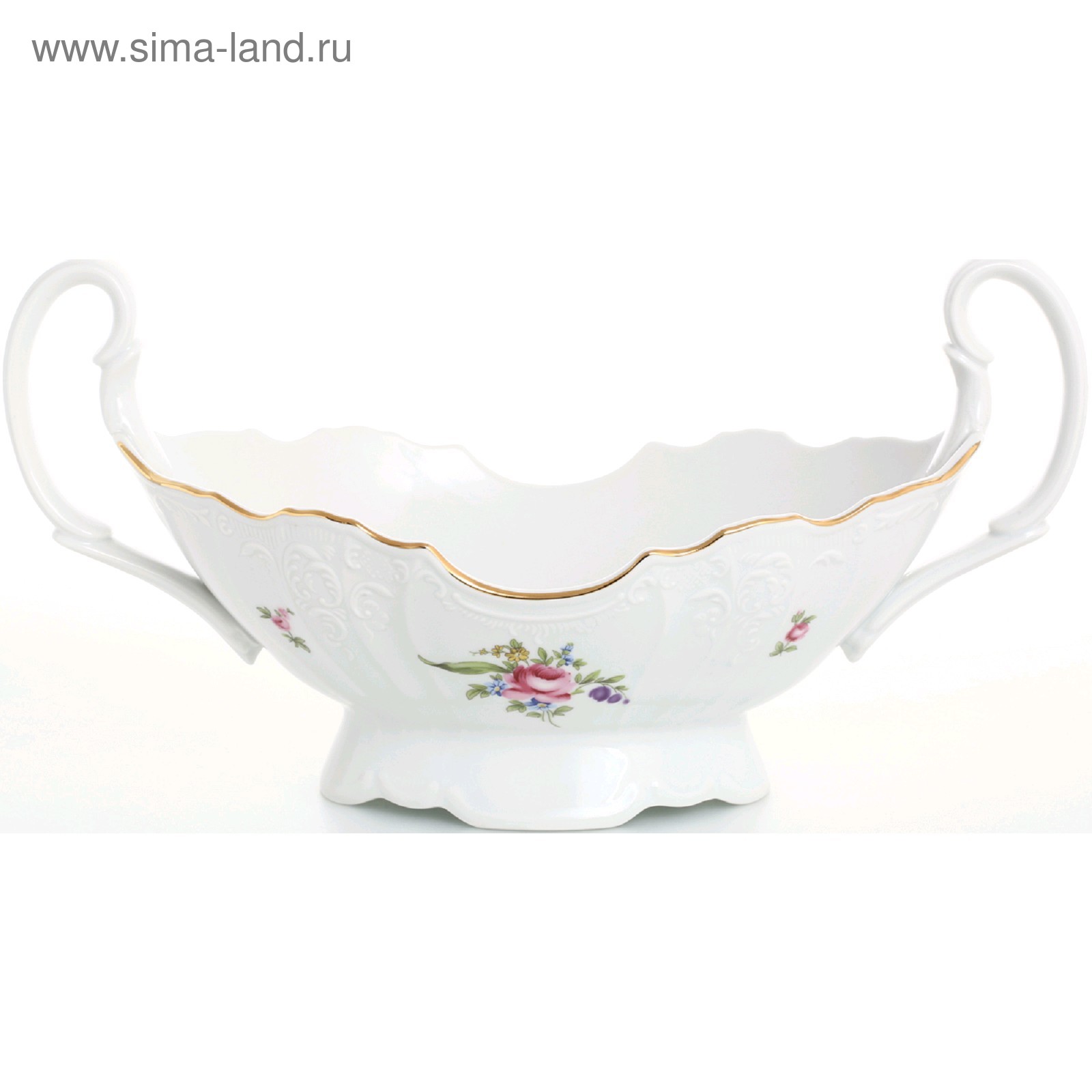 Блюдо на ножке для торта с 2 ручками Bernadotte, декор «мейсенский букет», 27 см