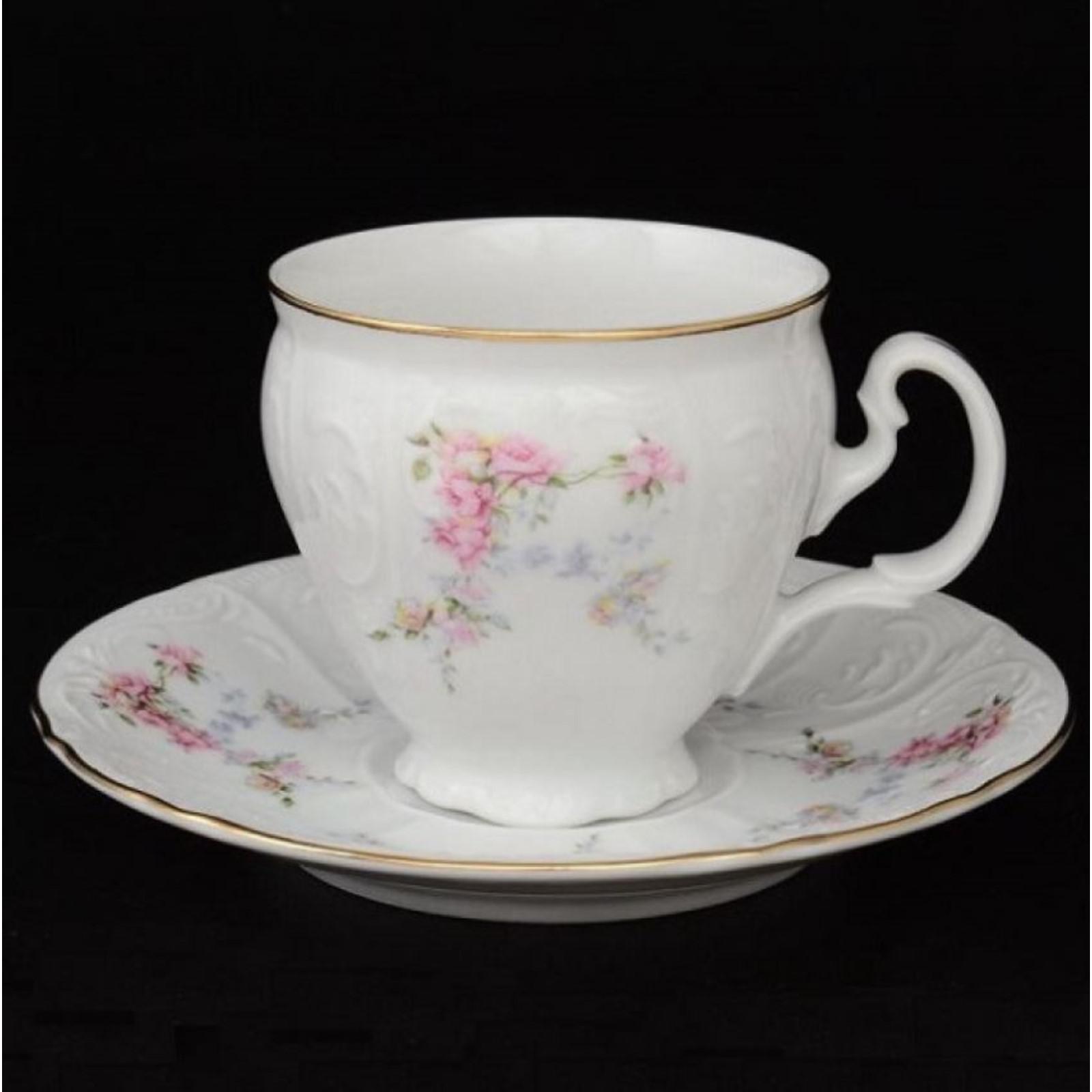 Чашка 170 мл с блюдцем 140 мм высокая Bernadotte, декор «дикая роза, отводка золото», 170 мл