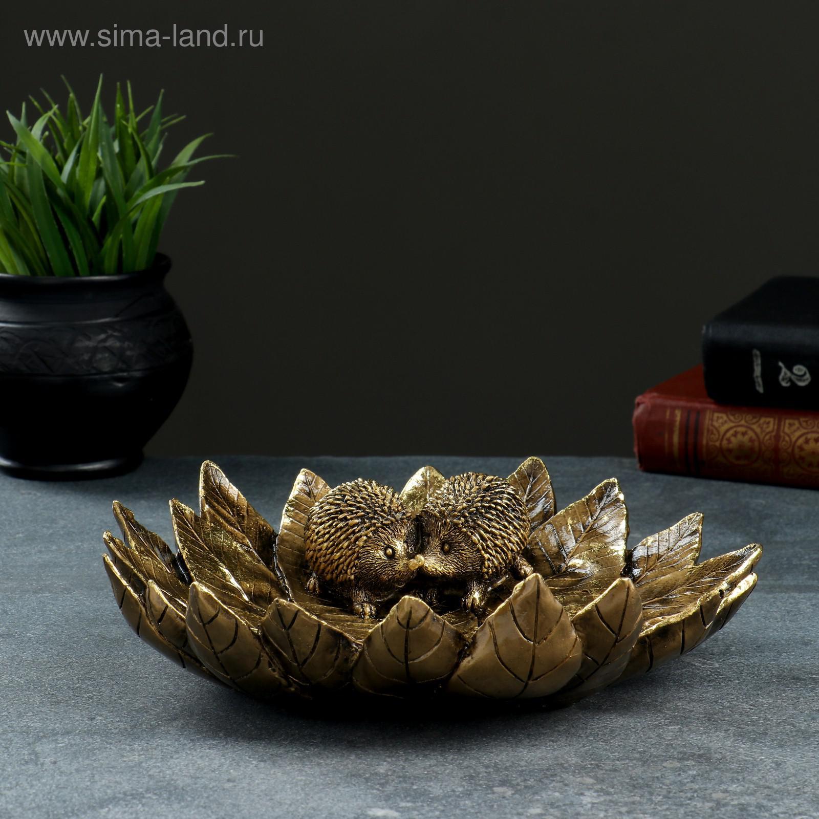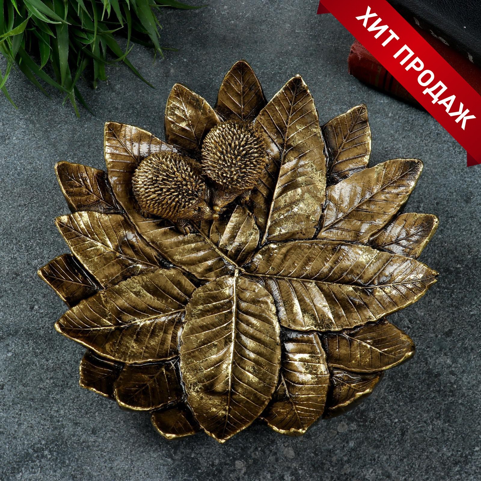 Подставка конфетница "пара ежей на тарелке из листьев" золото, 24х24х6,5см