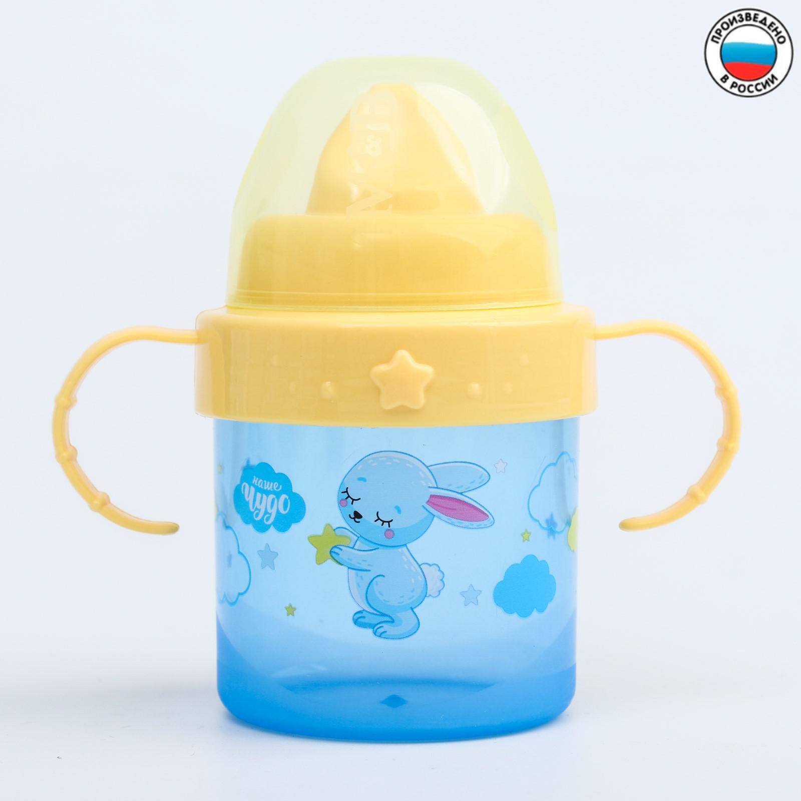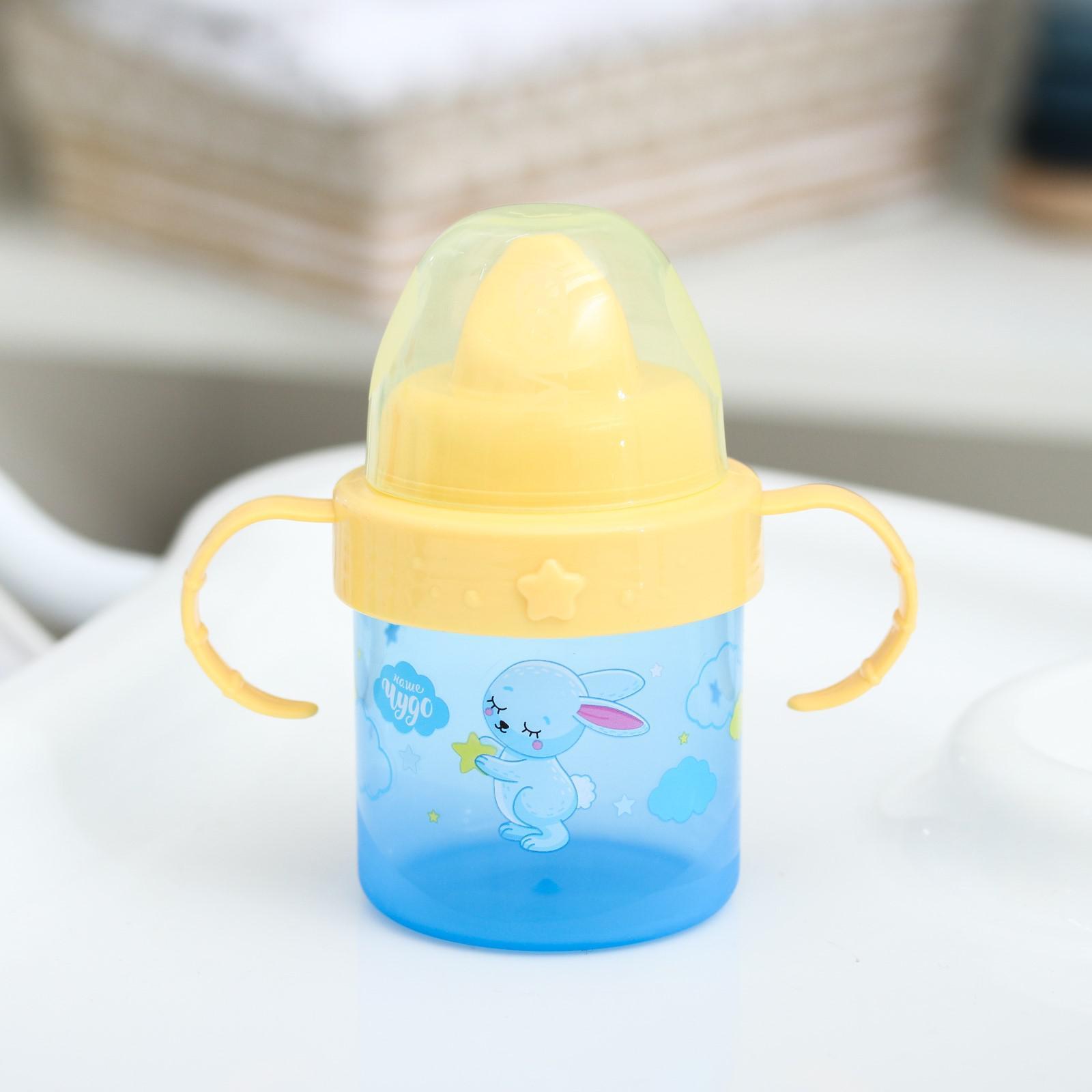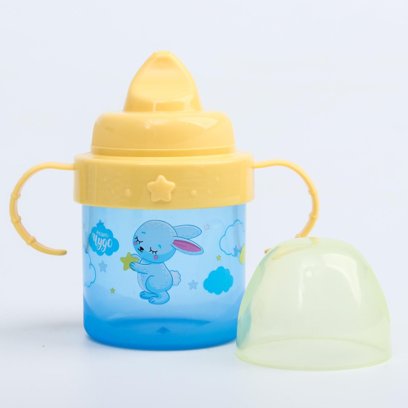 Поильник детский с твёрдым носиком «зайки. мамы и малыши», 150 мл, с ручками, цвет голубой