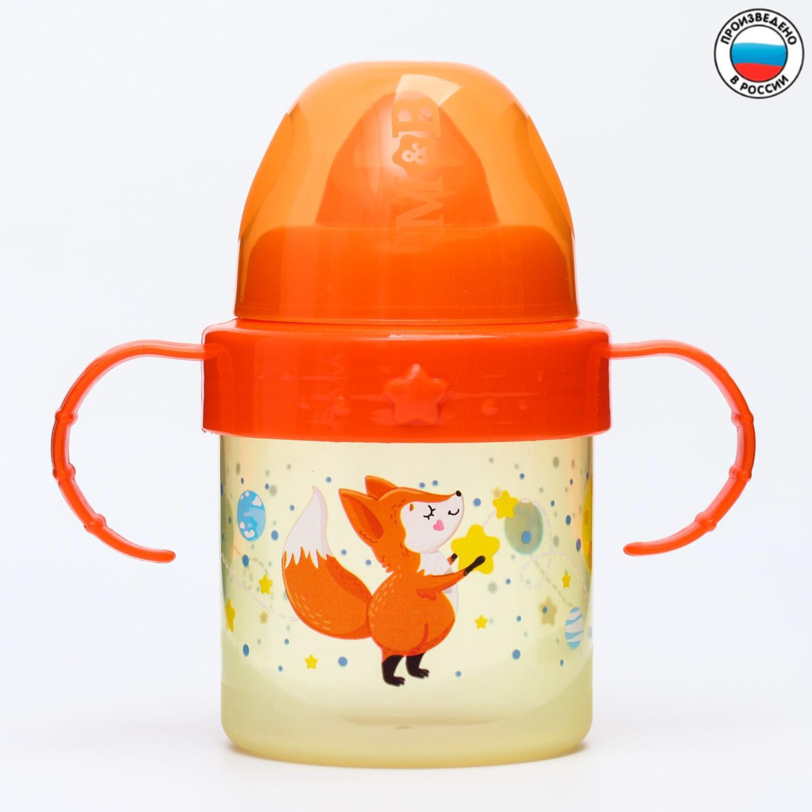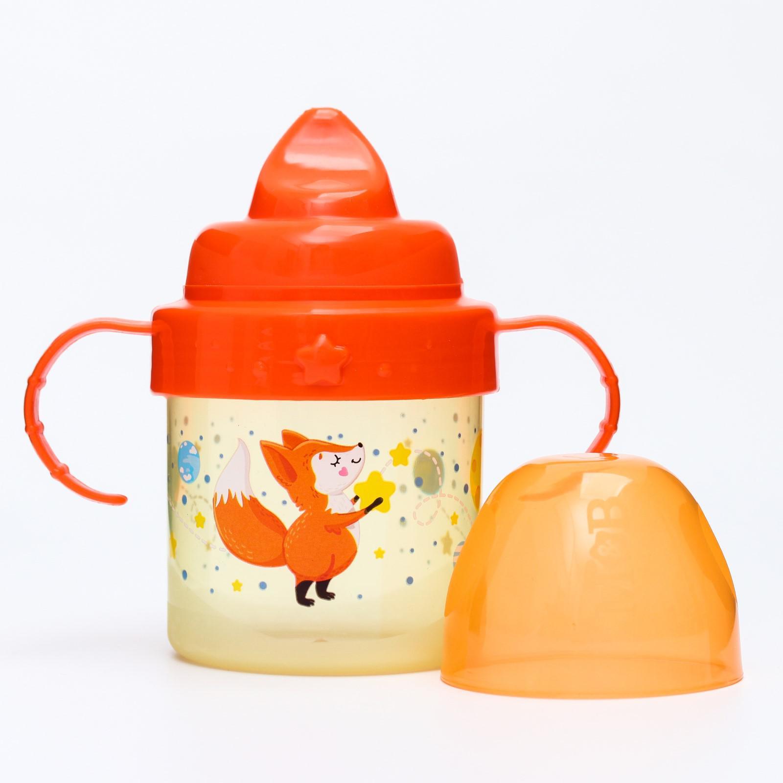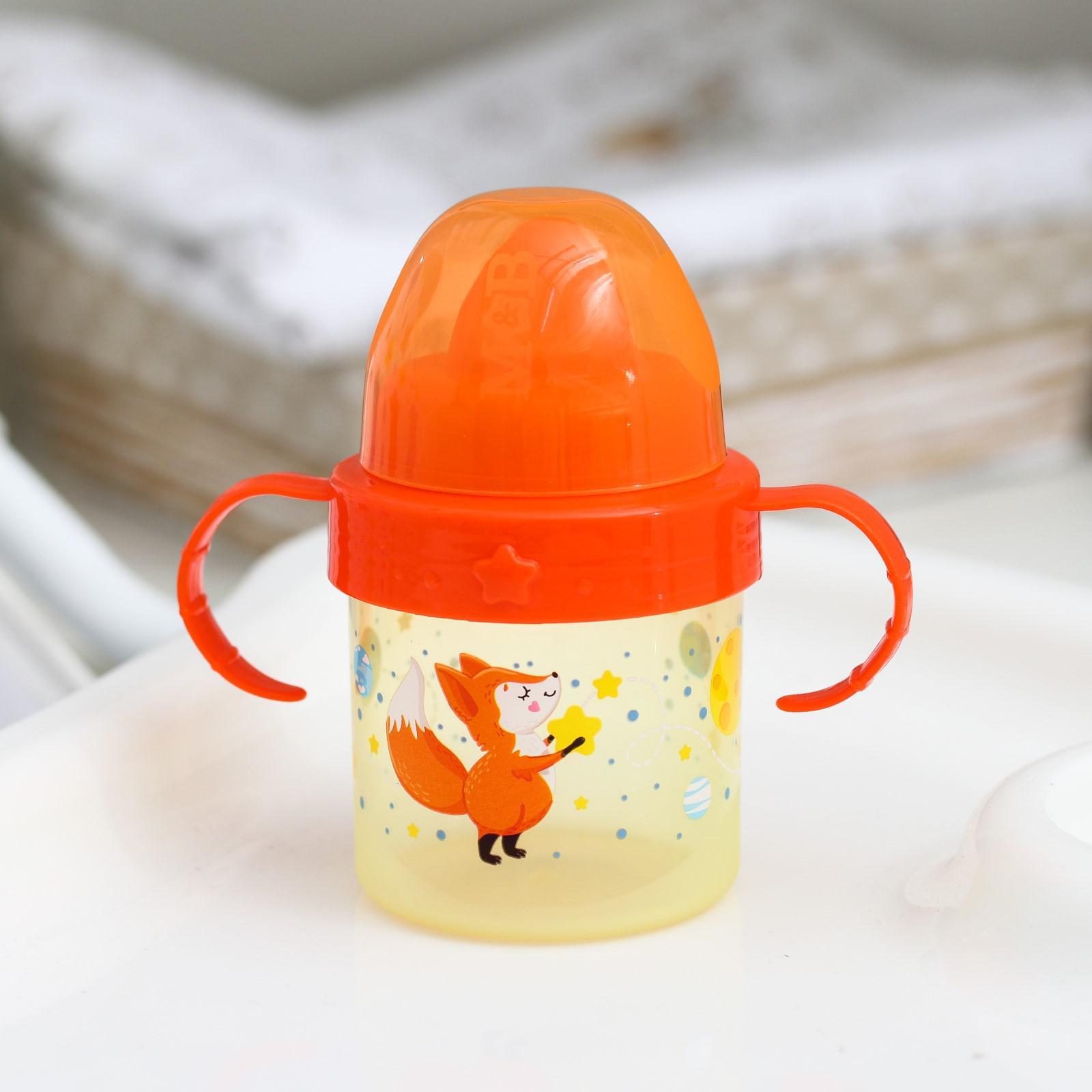 Поильник детский с твёрдым носиком «лисята. мамы и малыши», 150 мл., с ручками, цвет оранжевый