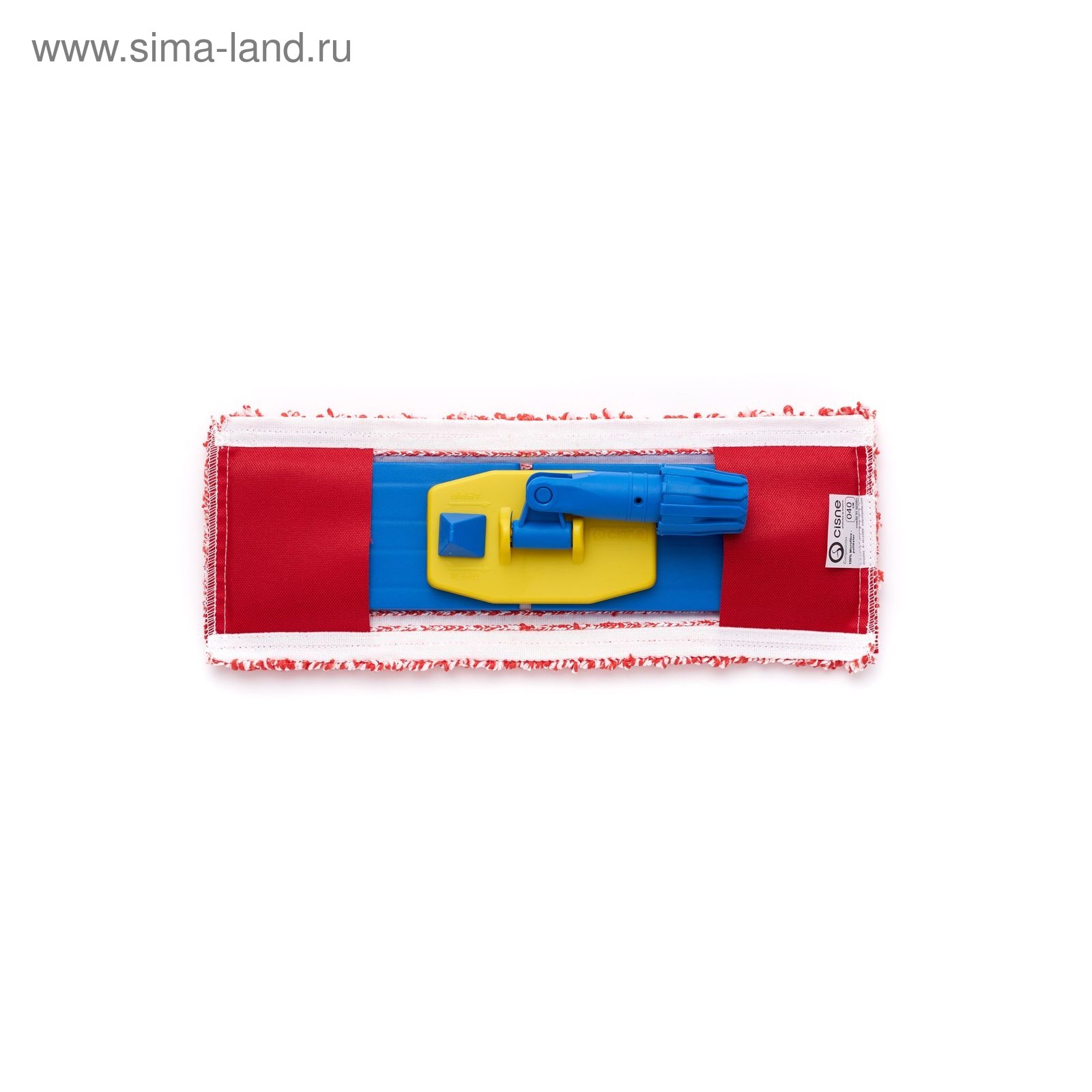 Насадка для швабры, плоская микрофибра, цвет красный/белый, 40 см, комплект с держателем.