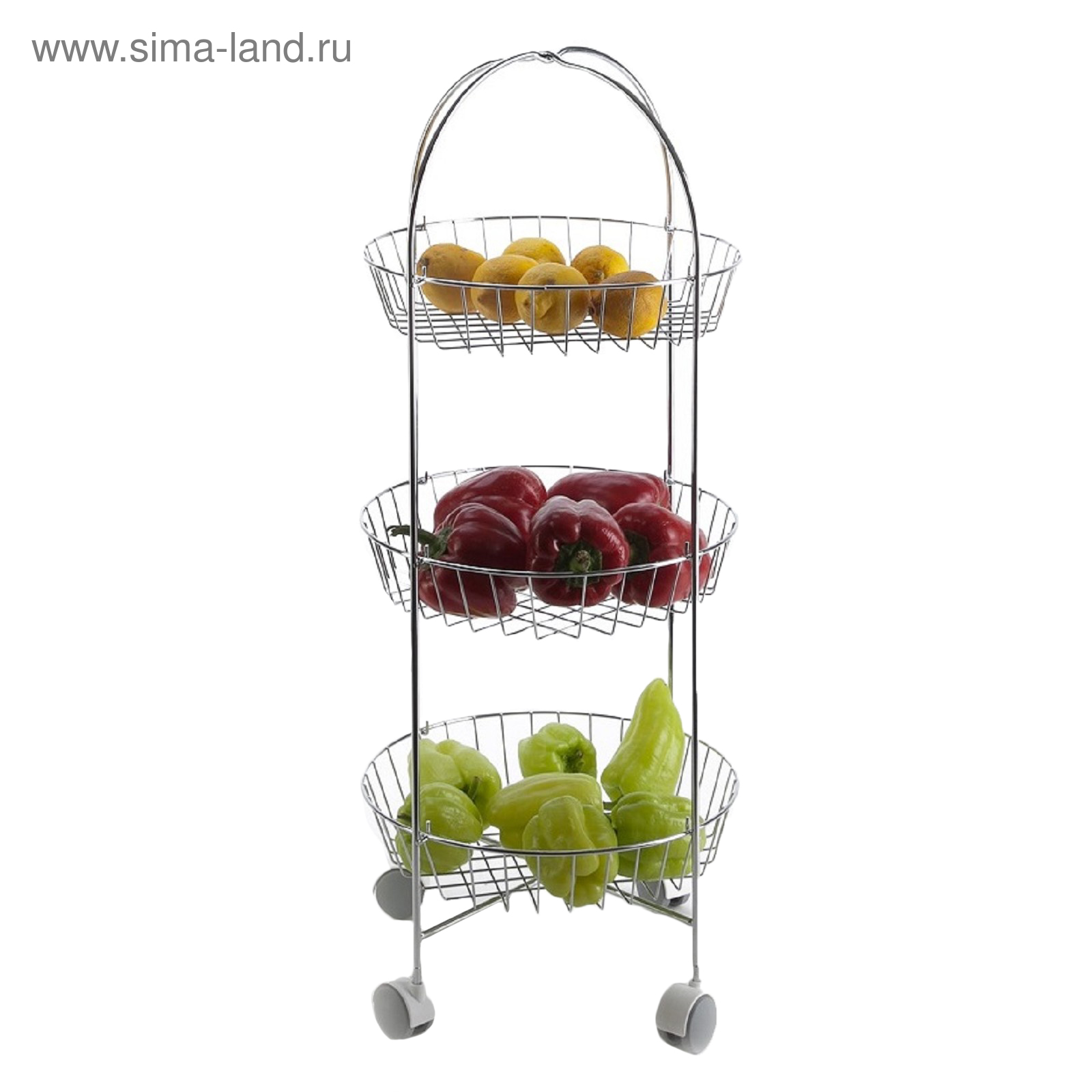 Подставка на колёсных опорах, круглая, 3 яруса, цвет хром