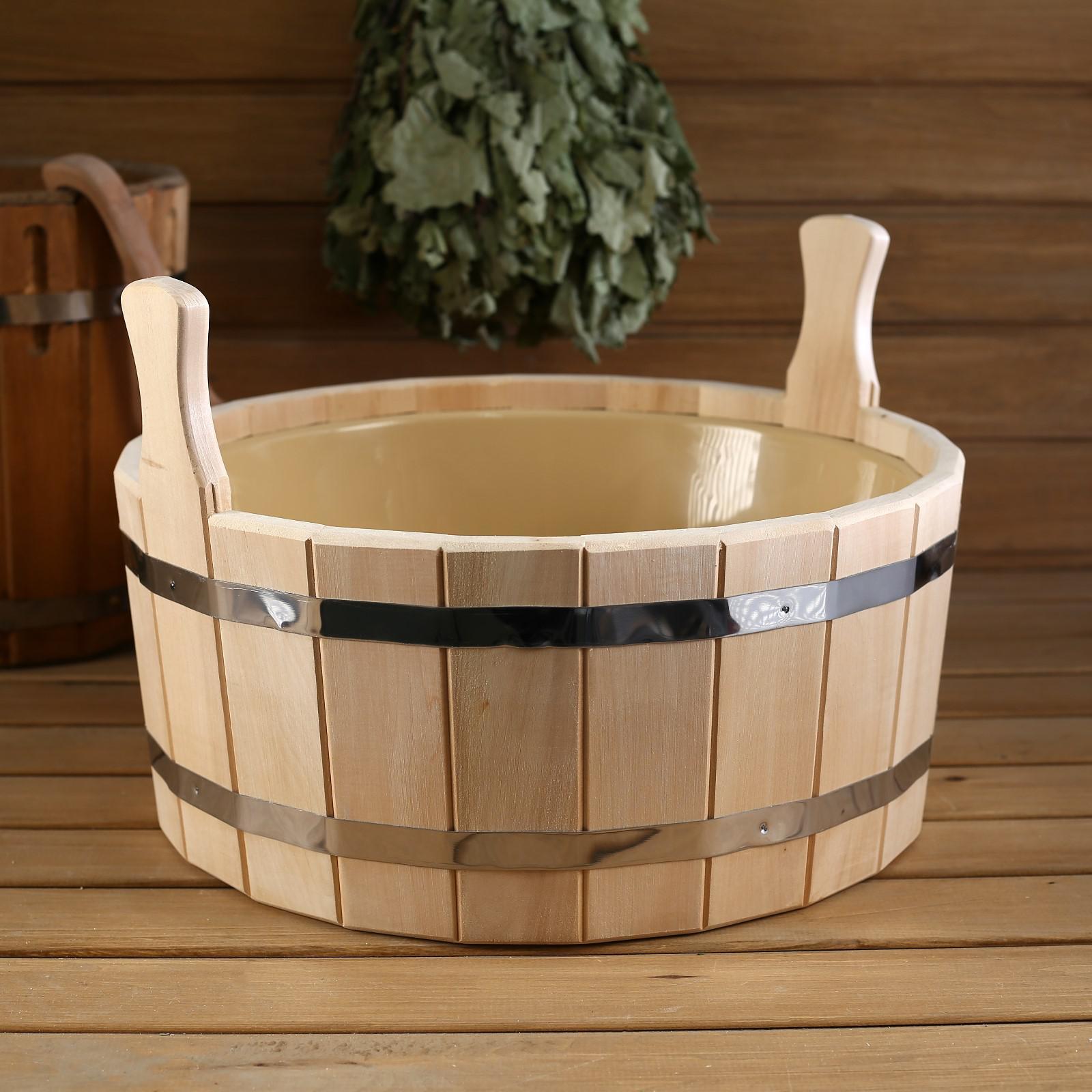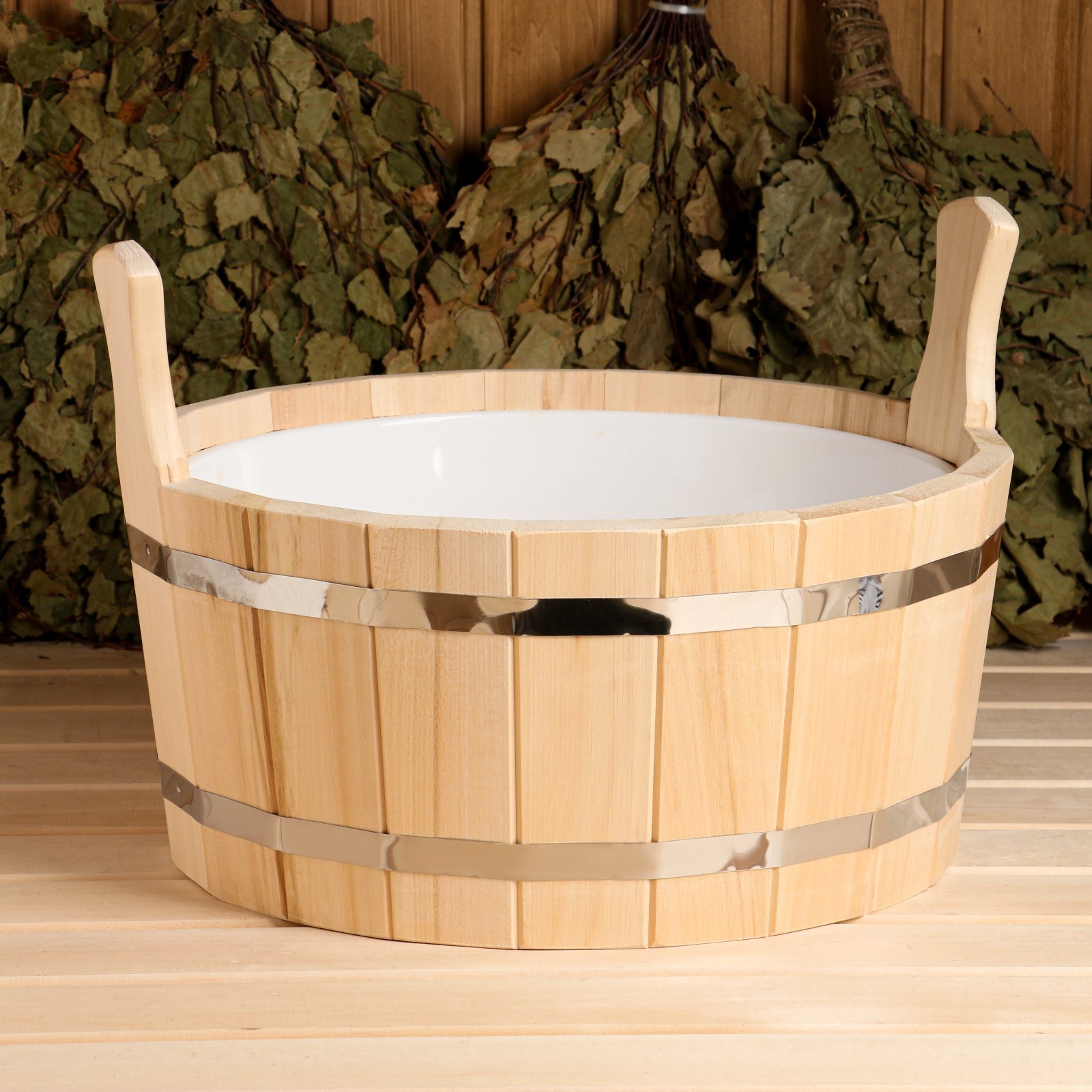 Шайка для бани и сауны, 15 л, липа, пластиковая вставка, «добропаровъ».