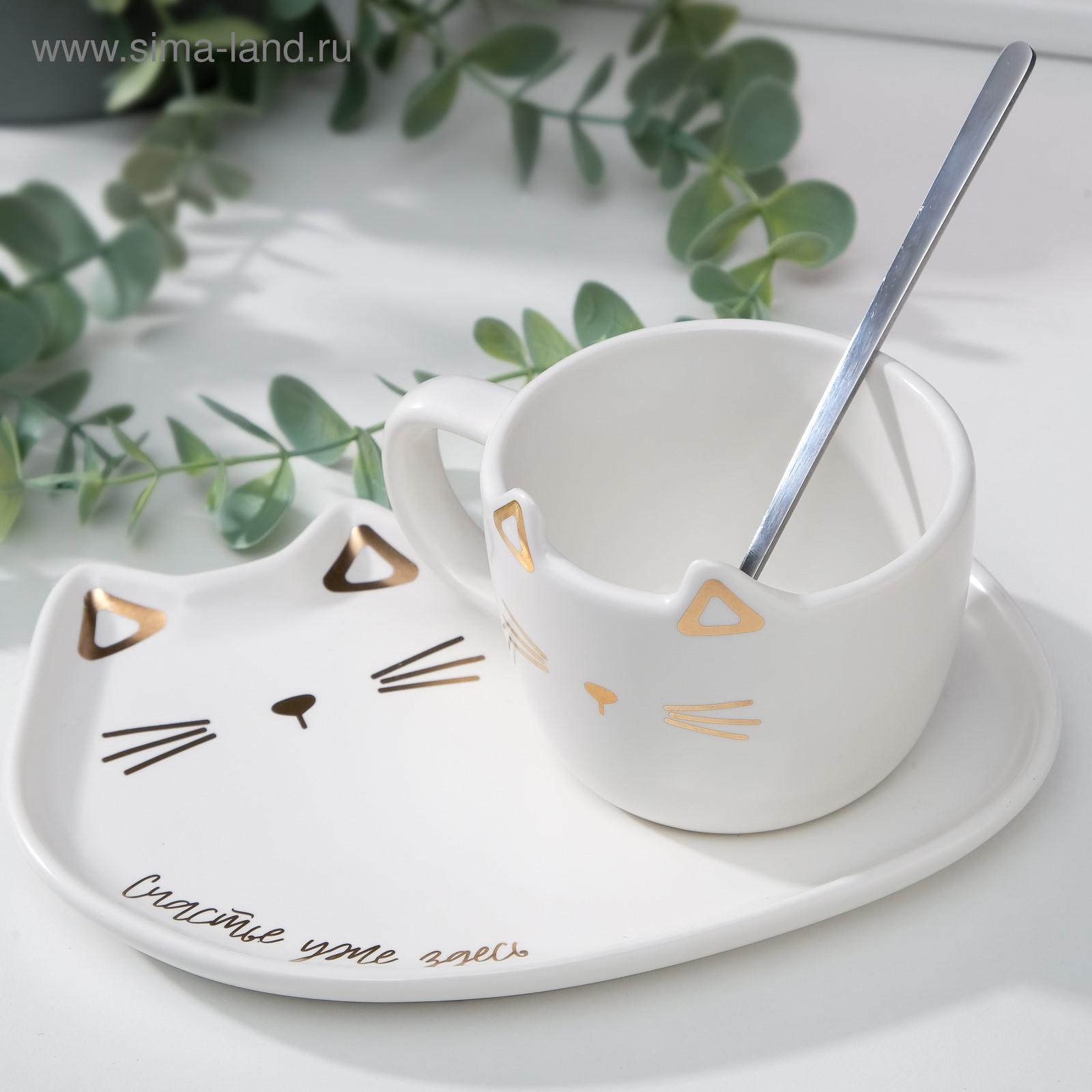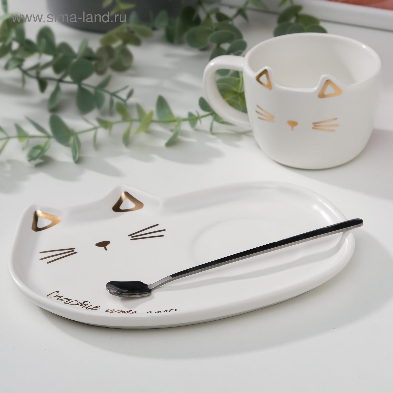 Подарочный набор «счастье уже здесь»: кружка 200 мл, блюдце 18 х 11 см, ложка