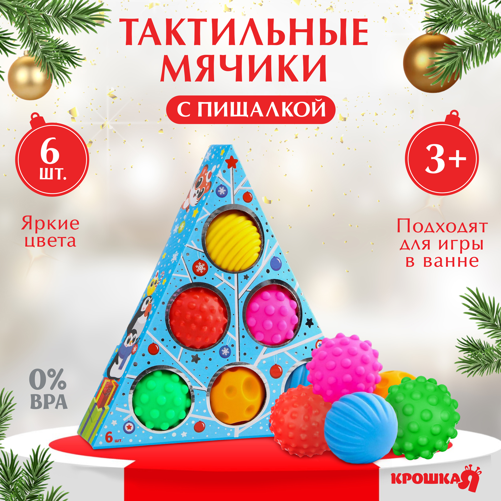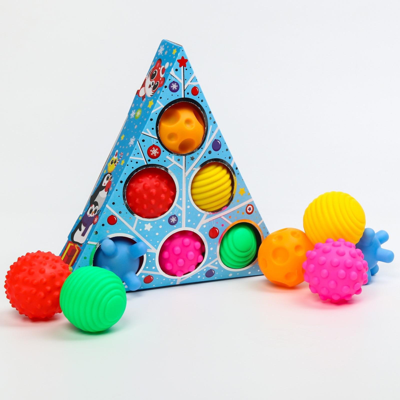 Подарочный набор развивающих мячиков «голубая ёлочка», 6 шт., новогодняя подарочная упаковка, крошка я