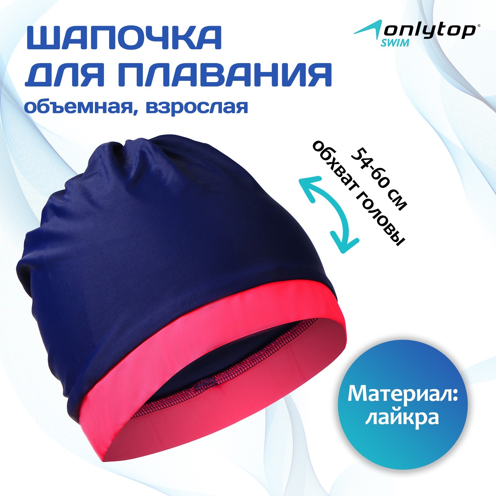 Шапочка для плавания взрослая Onlytop, тканевая, обхват 54-60 см, цвет тёмно-синий/коралл