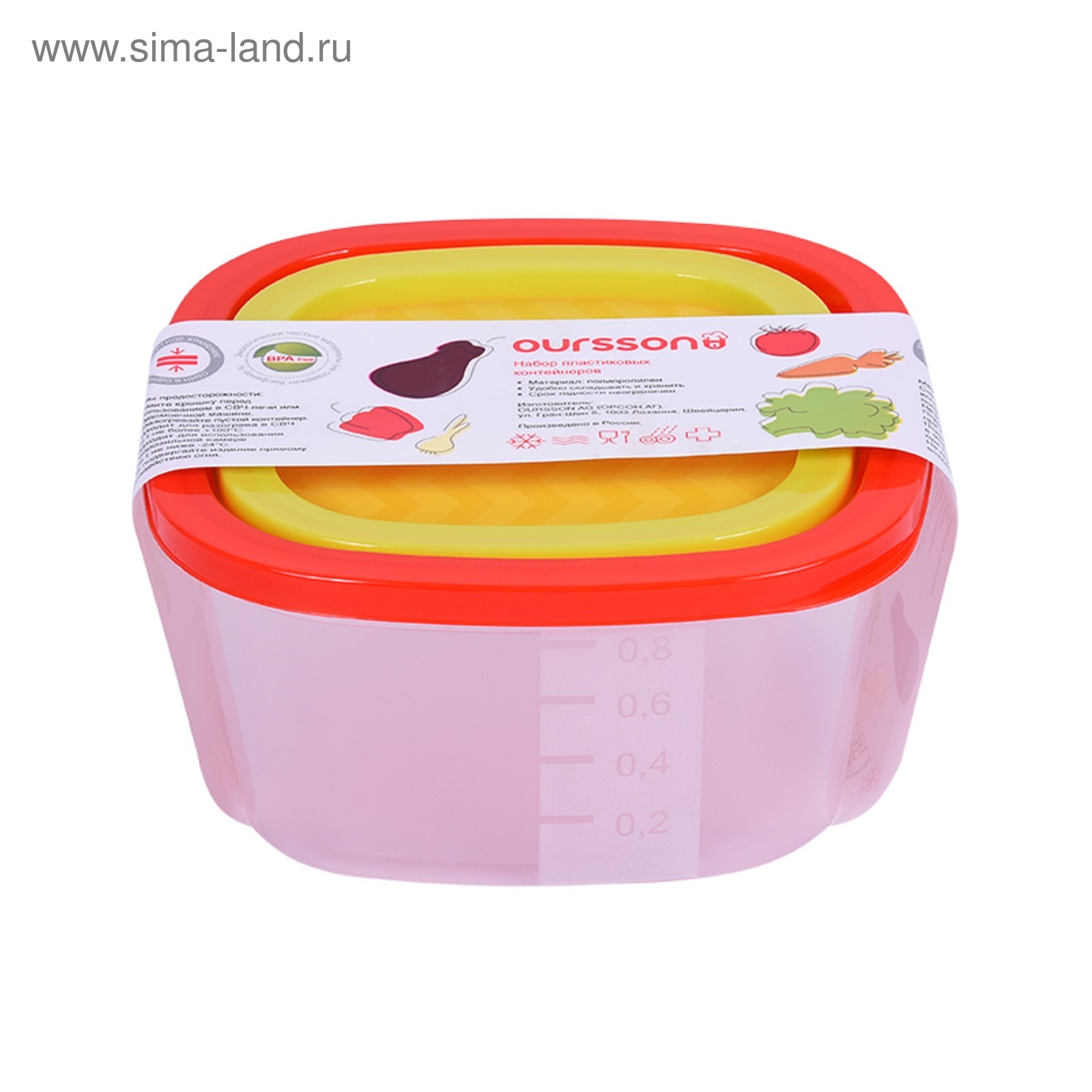 Набор пластиковых контейнеров oursson, 500/900 мл, 2 шт.    Цвет: Жёлтый Цвет: Красный Форма: Прямоугольная Объём, л: 0.5 Объём, л: 0.9 В наборе, шт.: 2 Объём, мл: 500 Объём, мл: 900 Материал крышки: Пластик Материал: Пластик Герметичная крышка: Нет Можно мыть в посудомоечной машине: Да Можно использовать в СВЧ-печи: Да Форма: Прямоугольник  развернуть описание ▼
