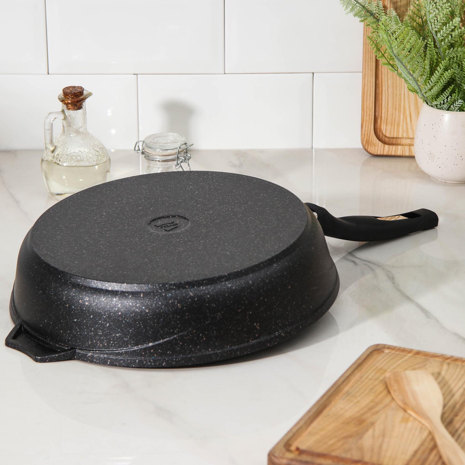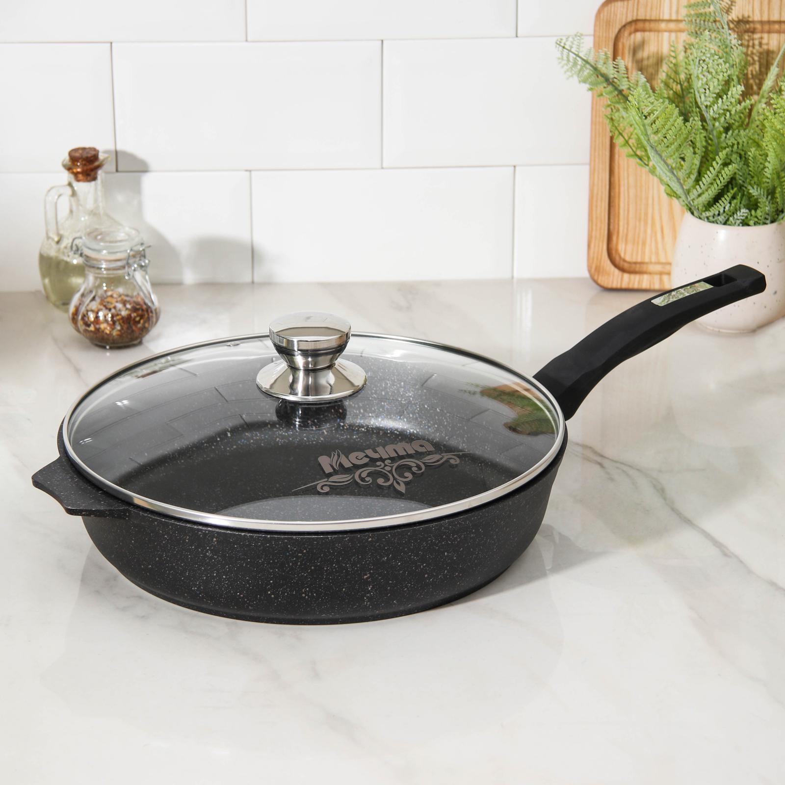 Сковорода «гранит Star», D=30 см, пластиковая ручка, стеклянная крышка, антипригарное покрытие, цвет чёрный