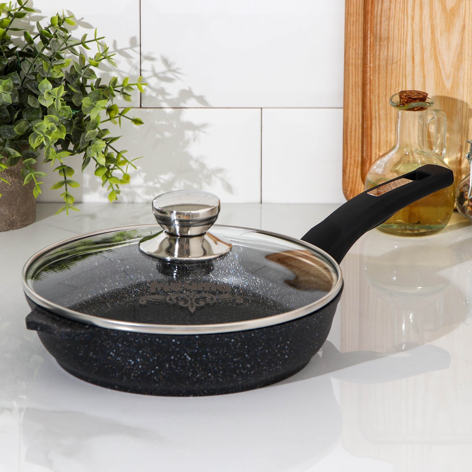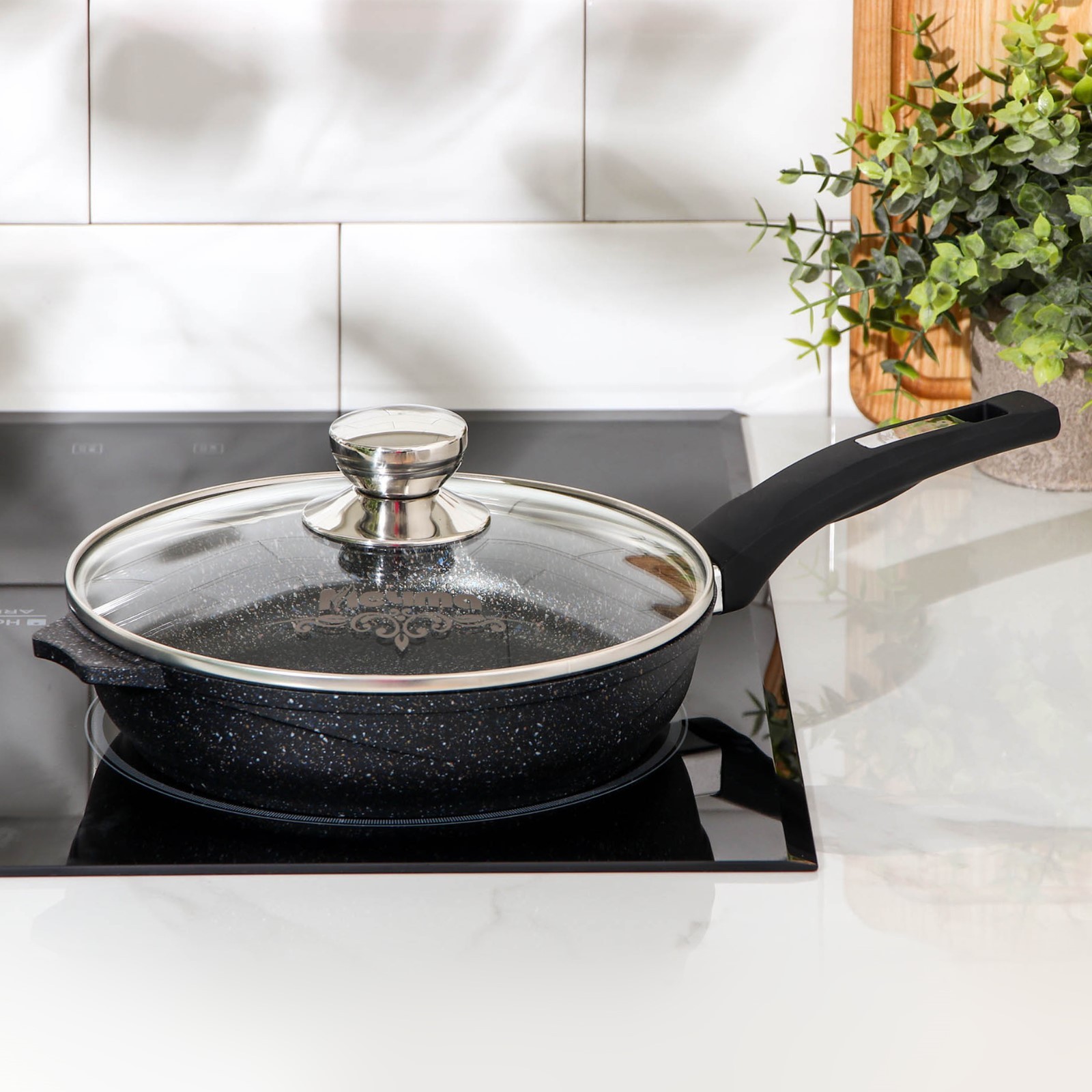 Сковорода «гранит Star», D=22 см, стеклянная крышка, антипригарное покрытие, цвет серый
