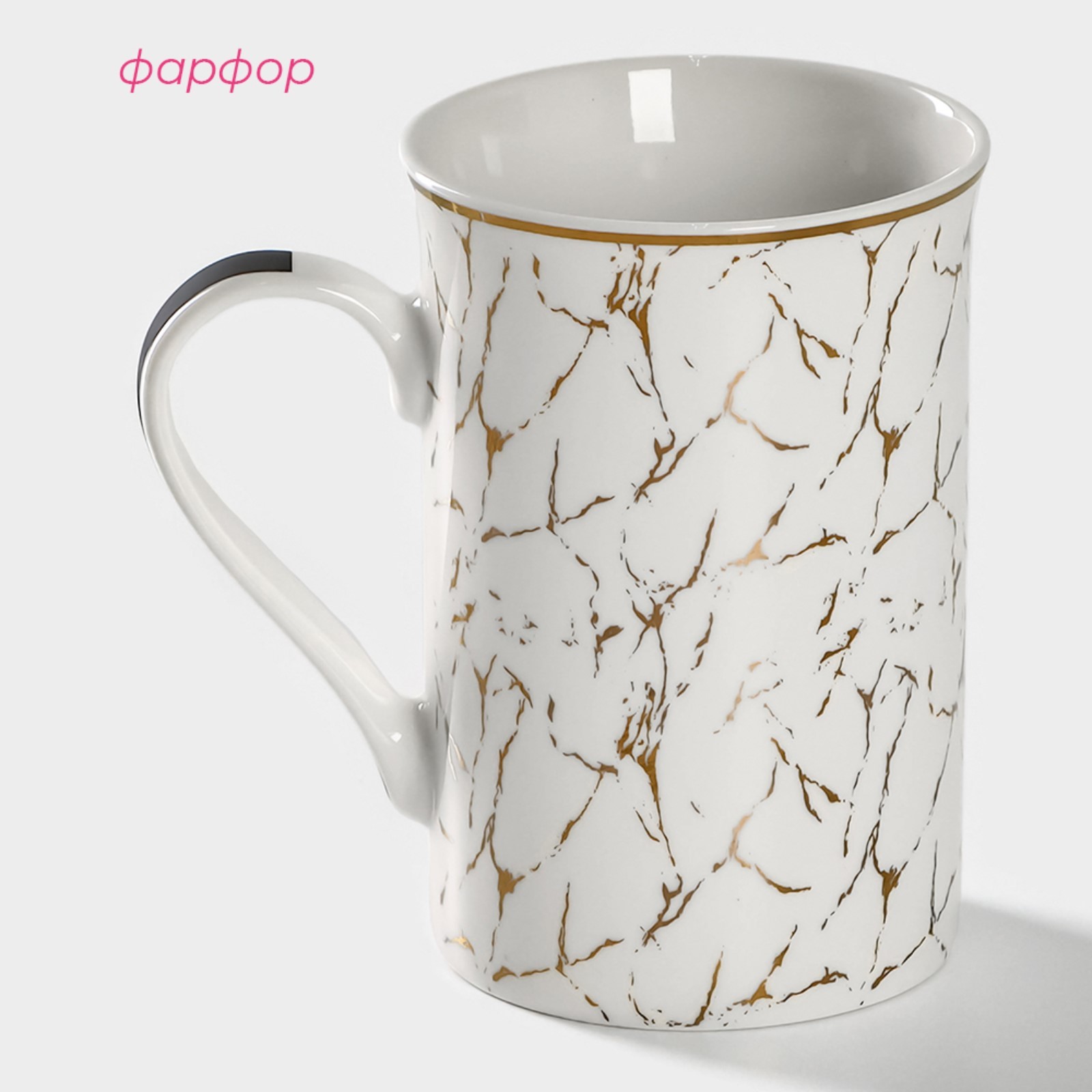 Кружка фарфоровая доляна Gold, 300 мл, цвет белый