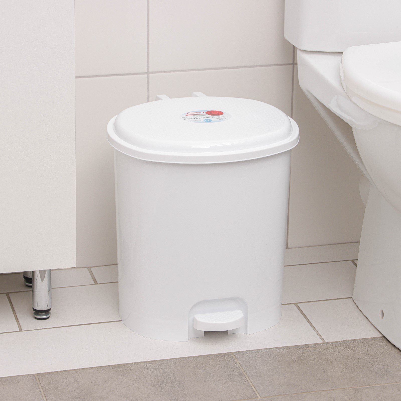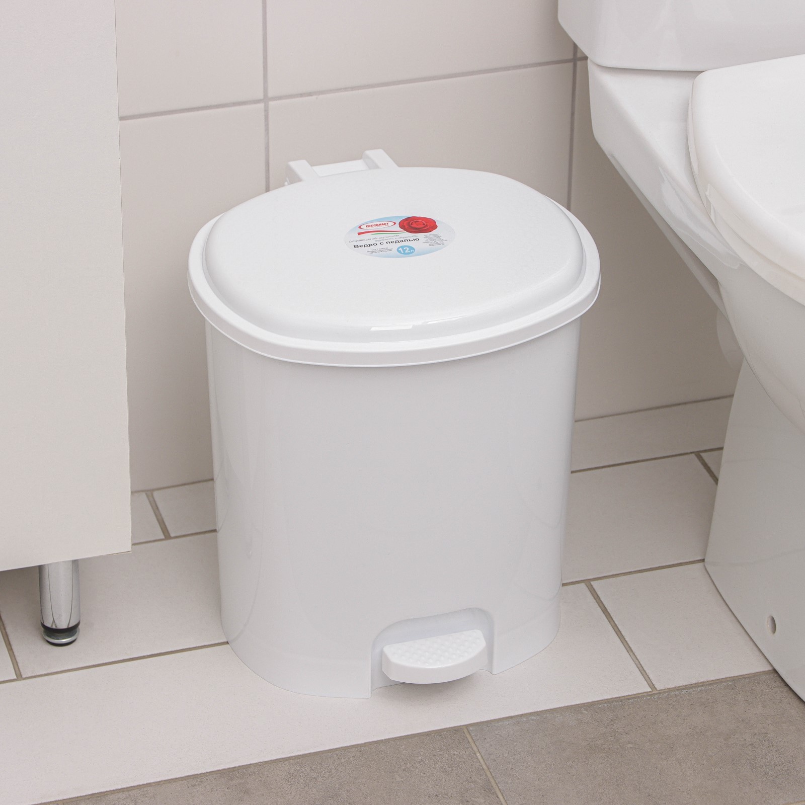 Ведро с педалью, 12 л, цвет белый