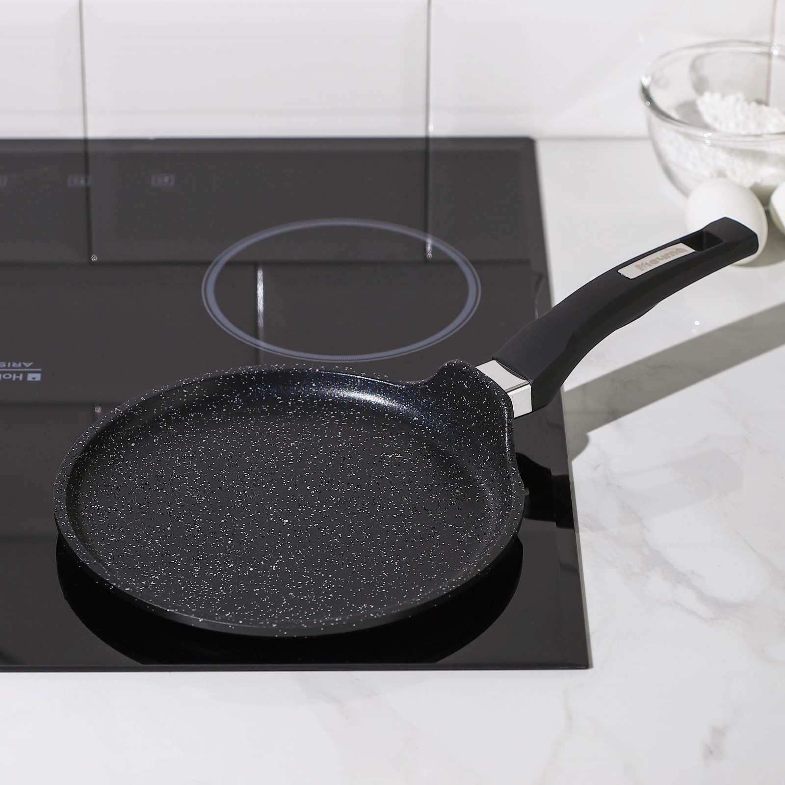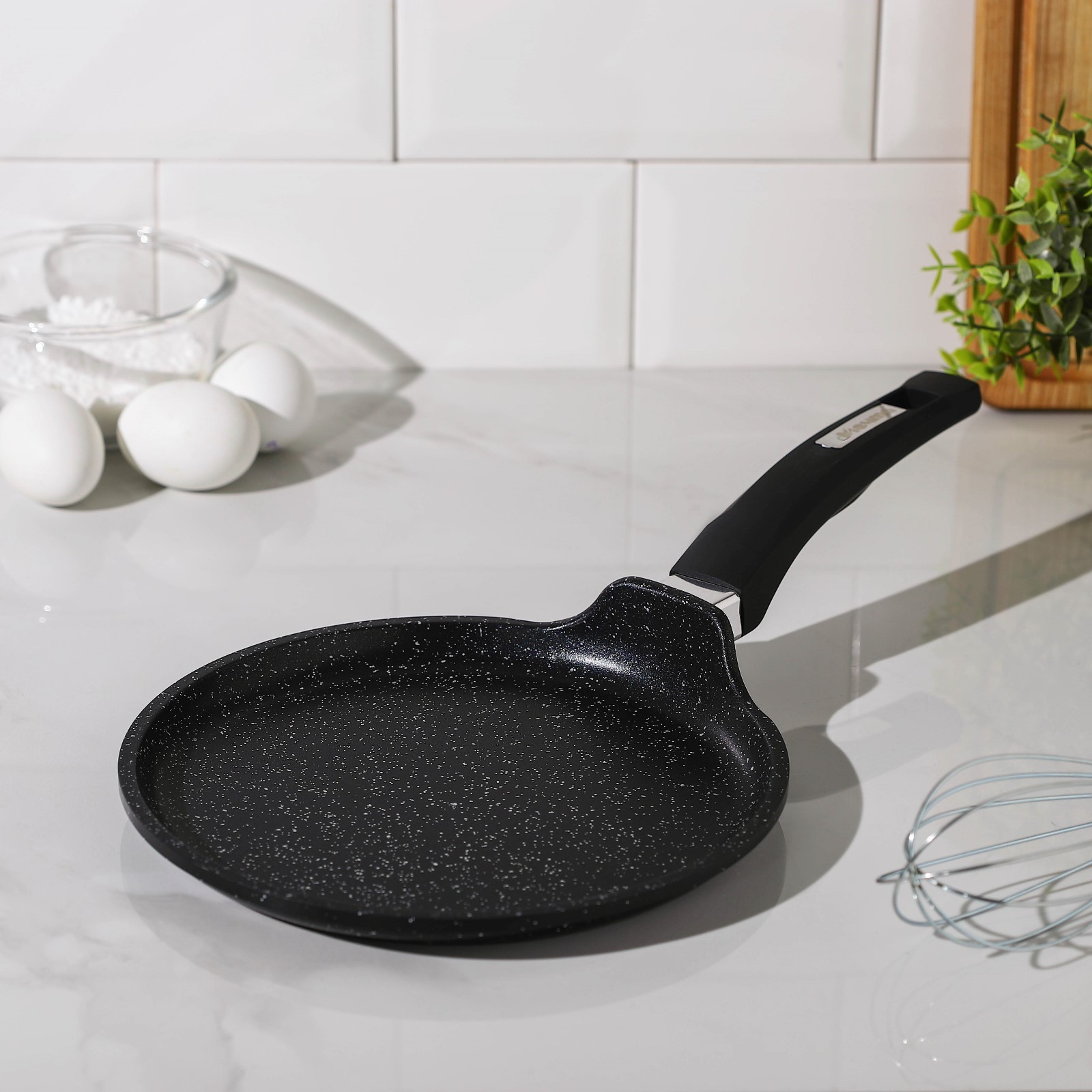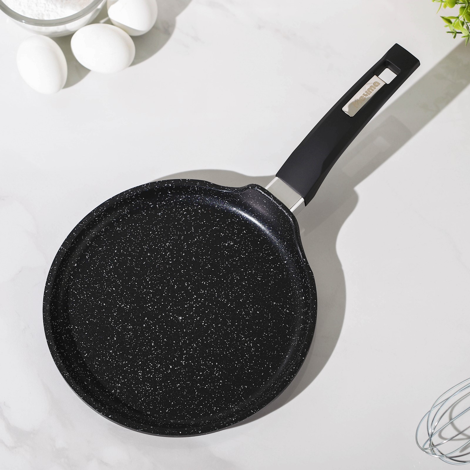 Сковорода блинная «гранит Black», D=22 см, пластиковая ручка, антипригарное покрытие, цвет чёрный