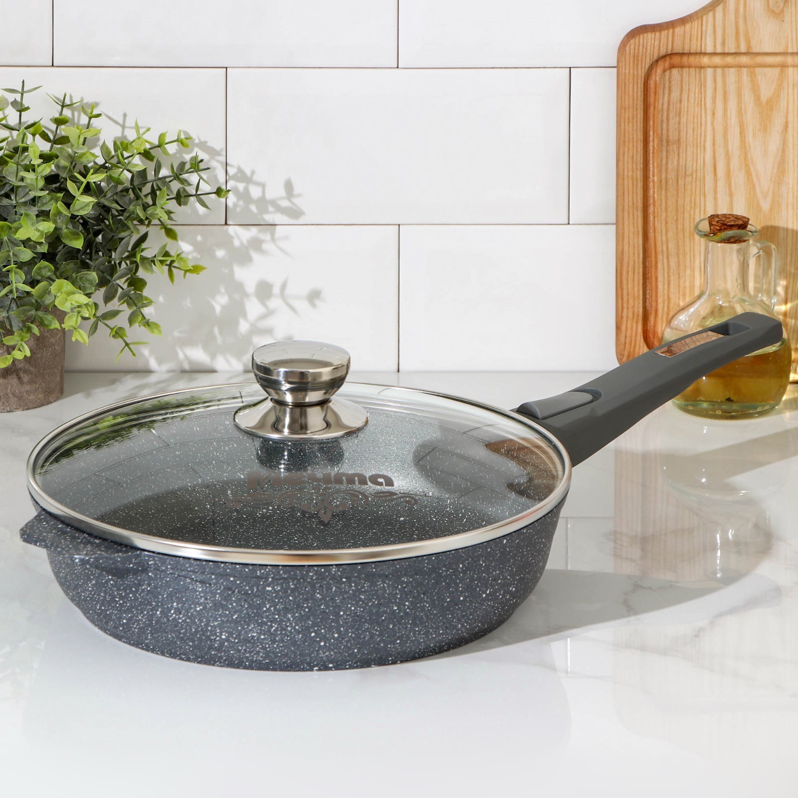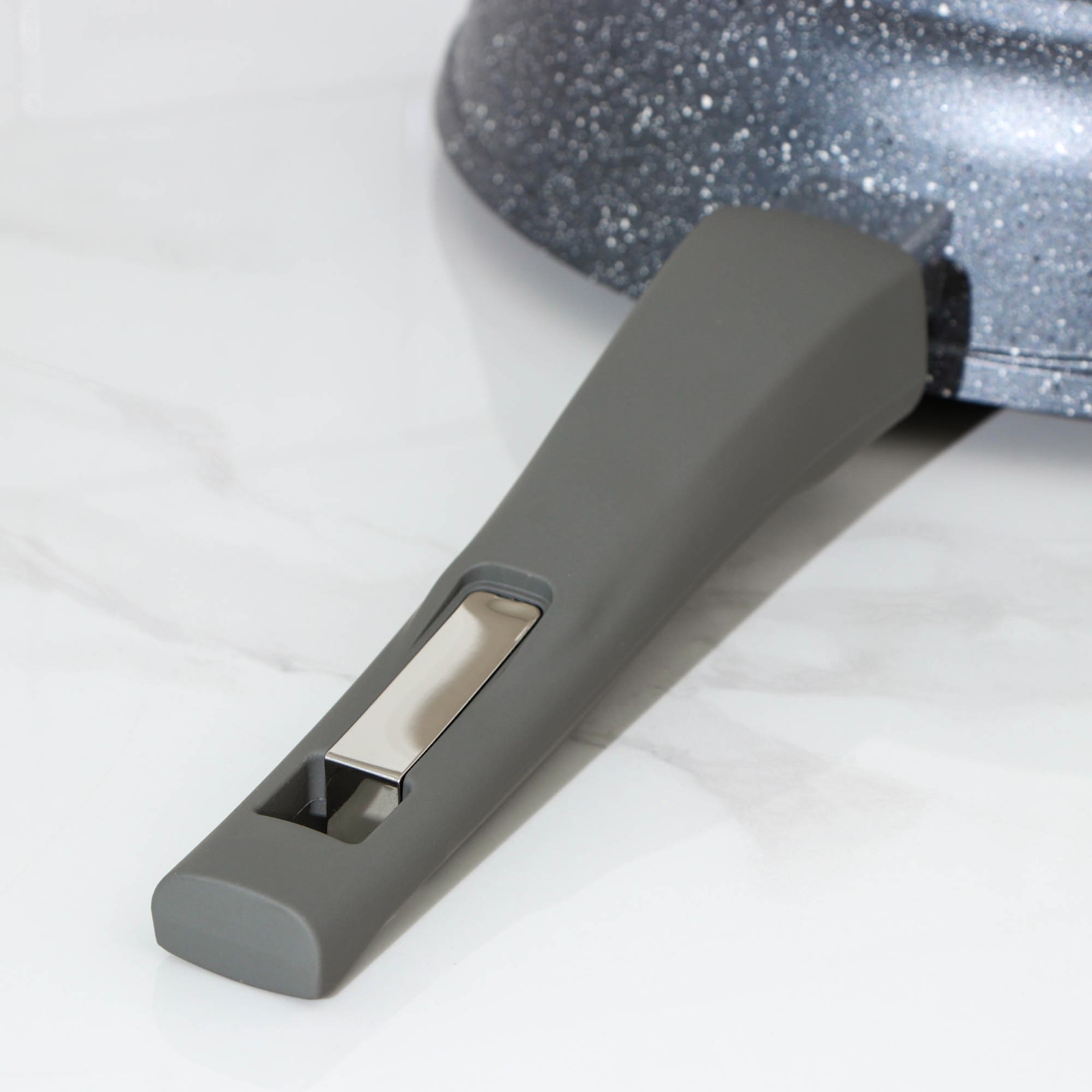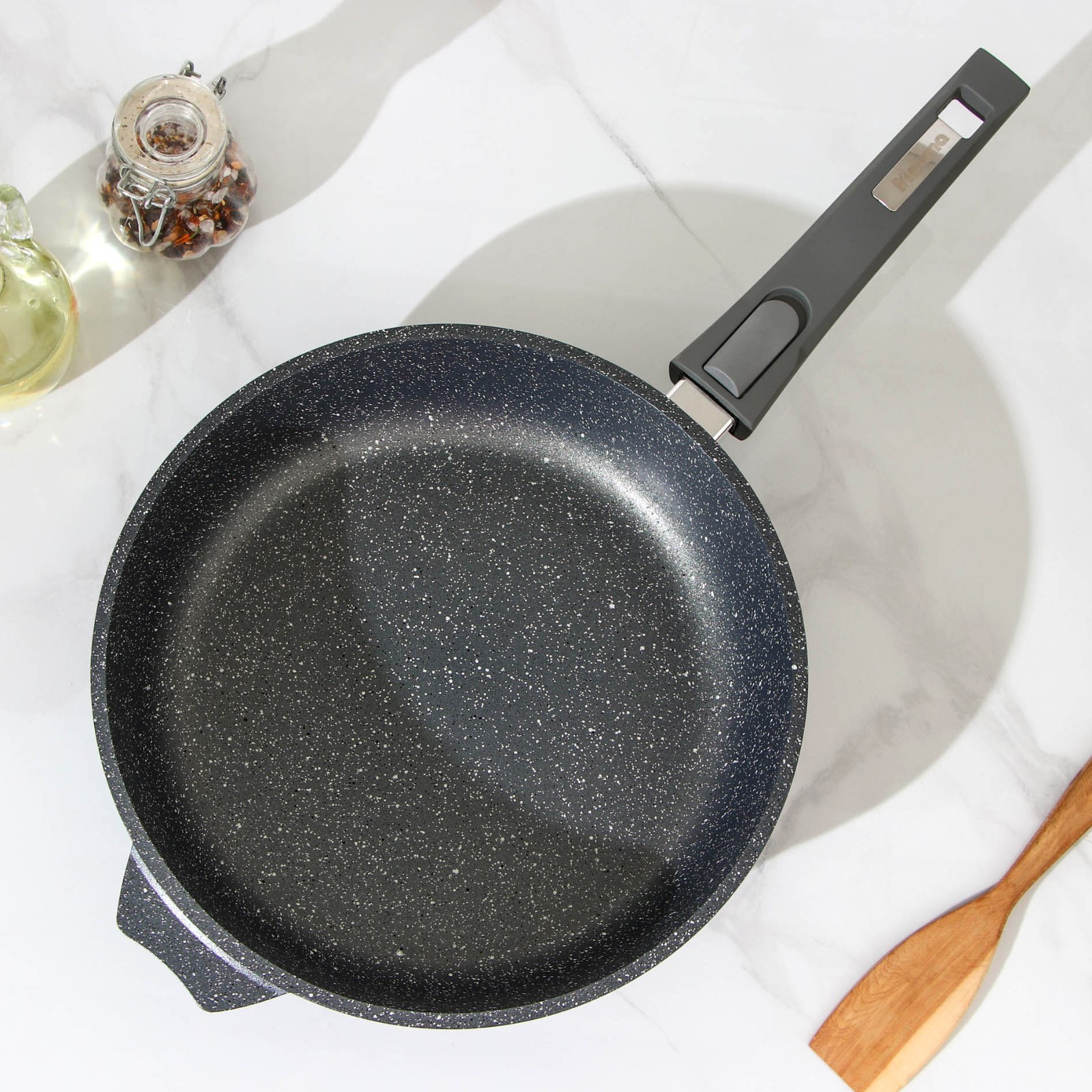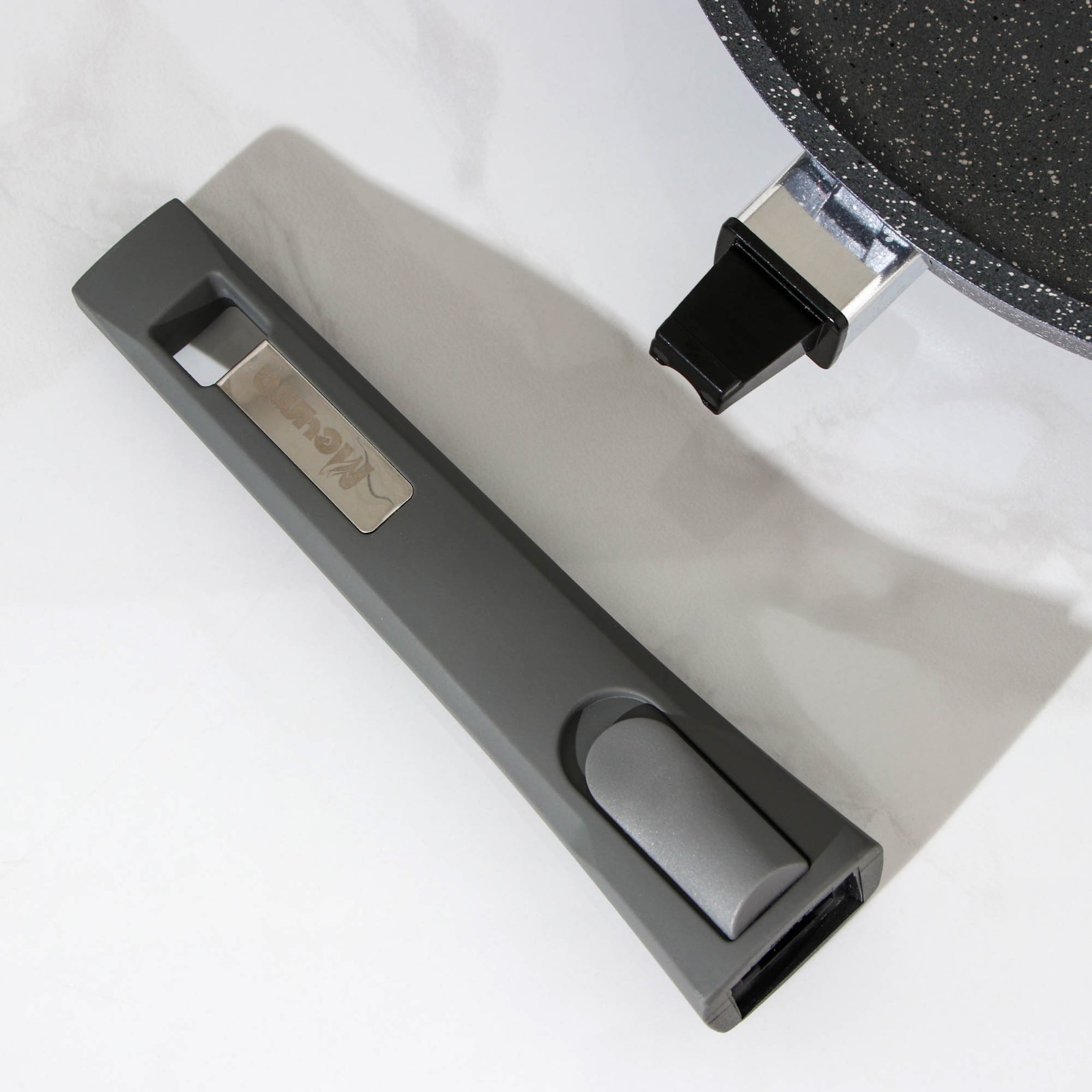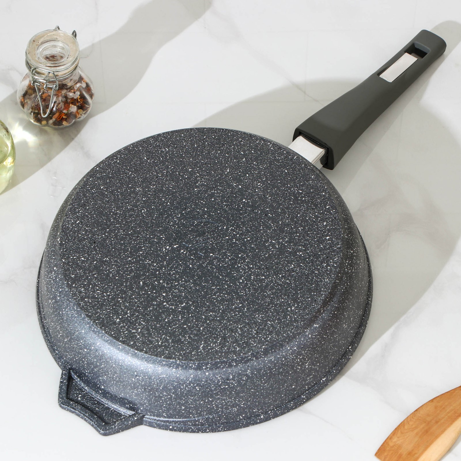 Сковорода «гранит», D=26 см, антипригарное покрытие, съёмная ручка, стеклянная крышка, цвет серый
