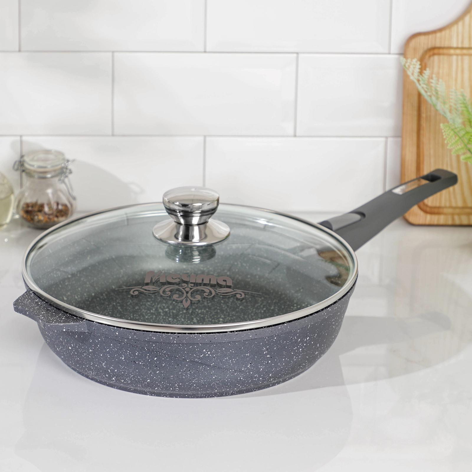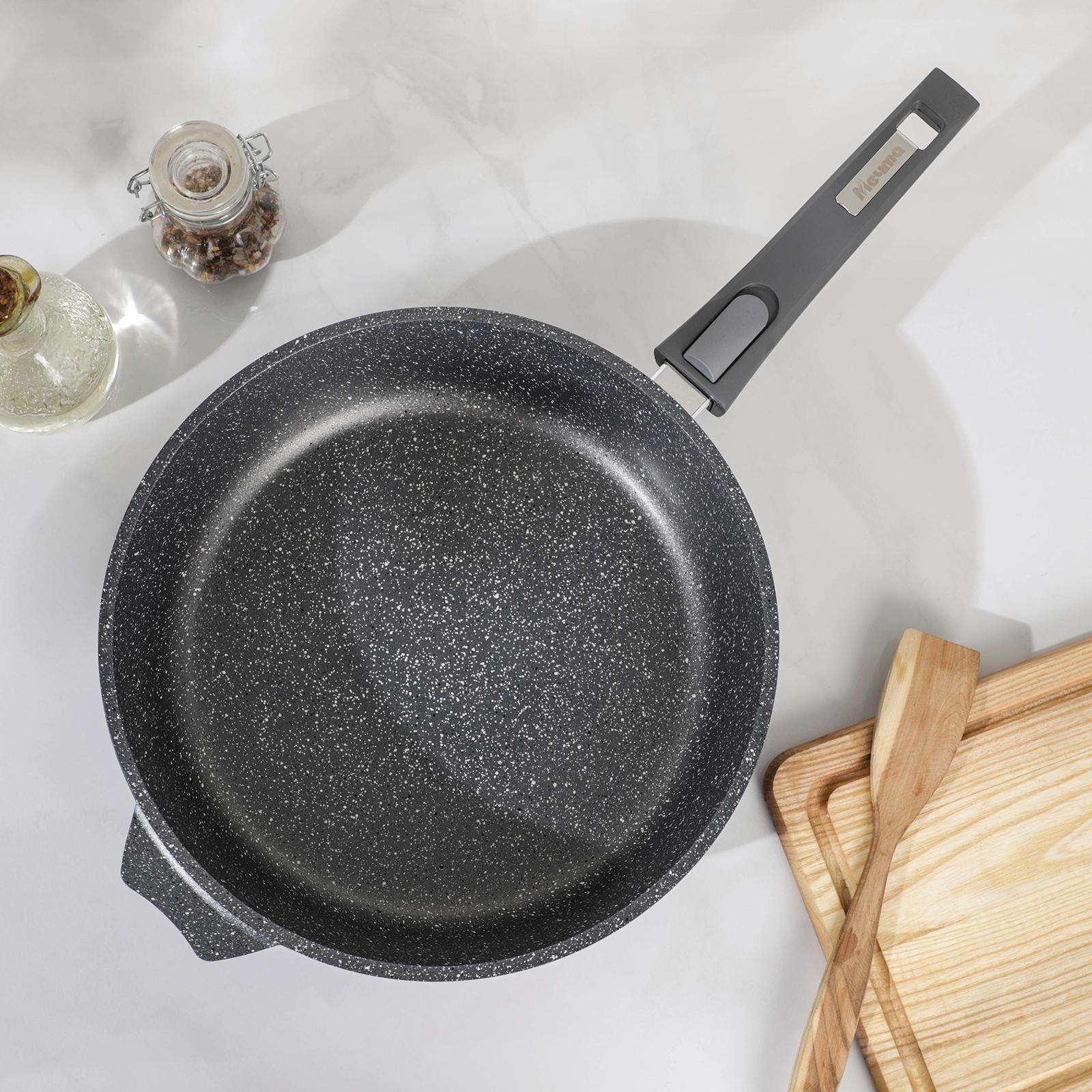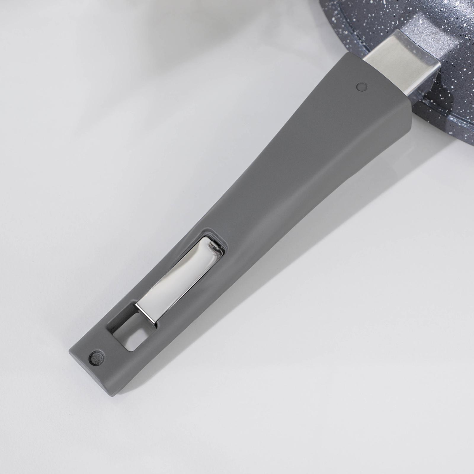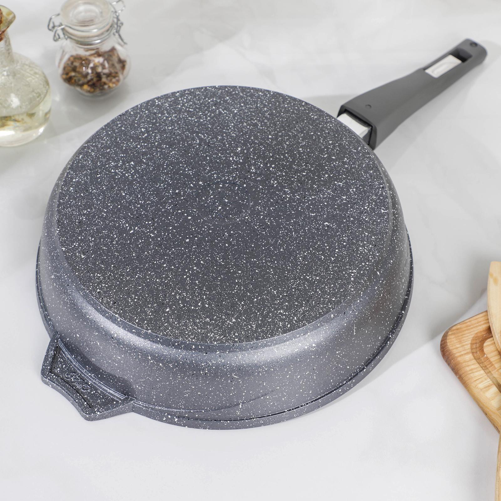 Сковорода «гранит», D=28 см, съёмная ручка, антипригарное покрытие, съёмная ручка, стеклянная крышка, цвет серый