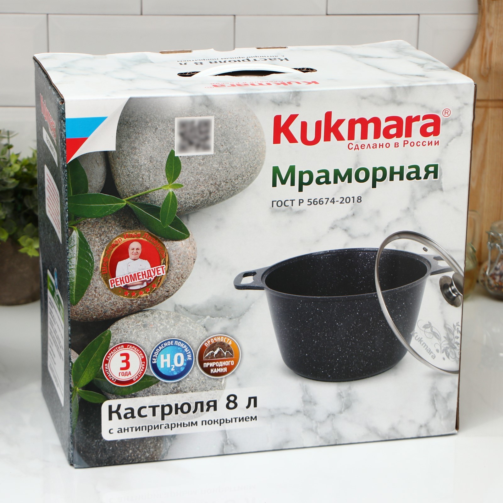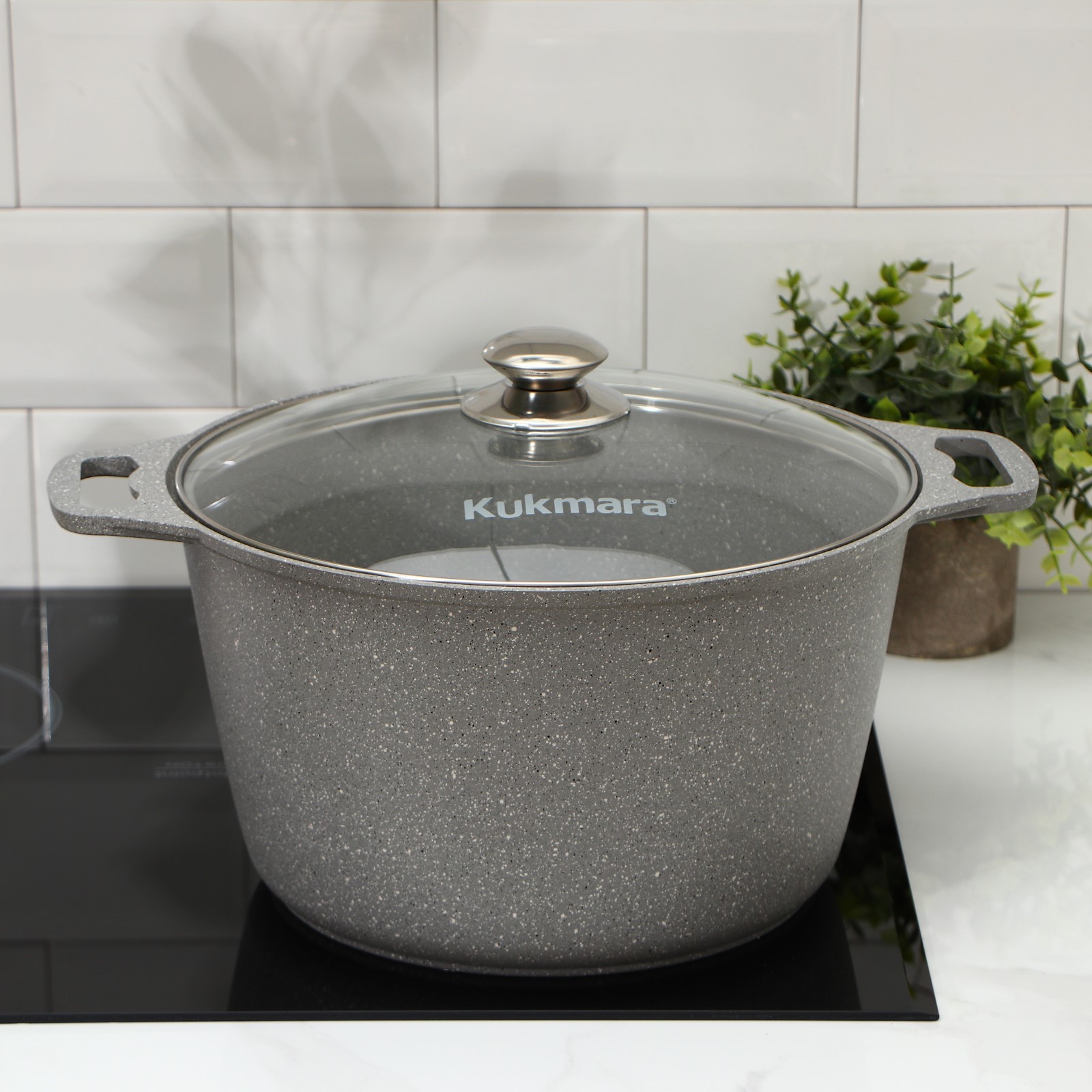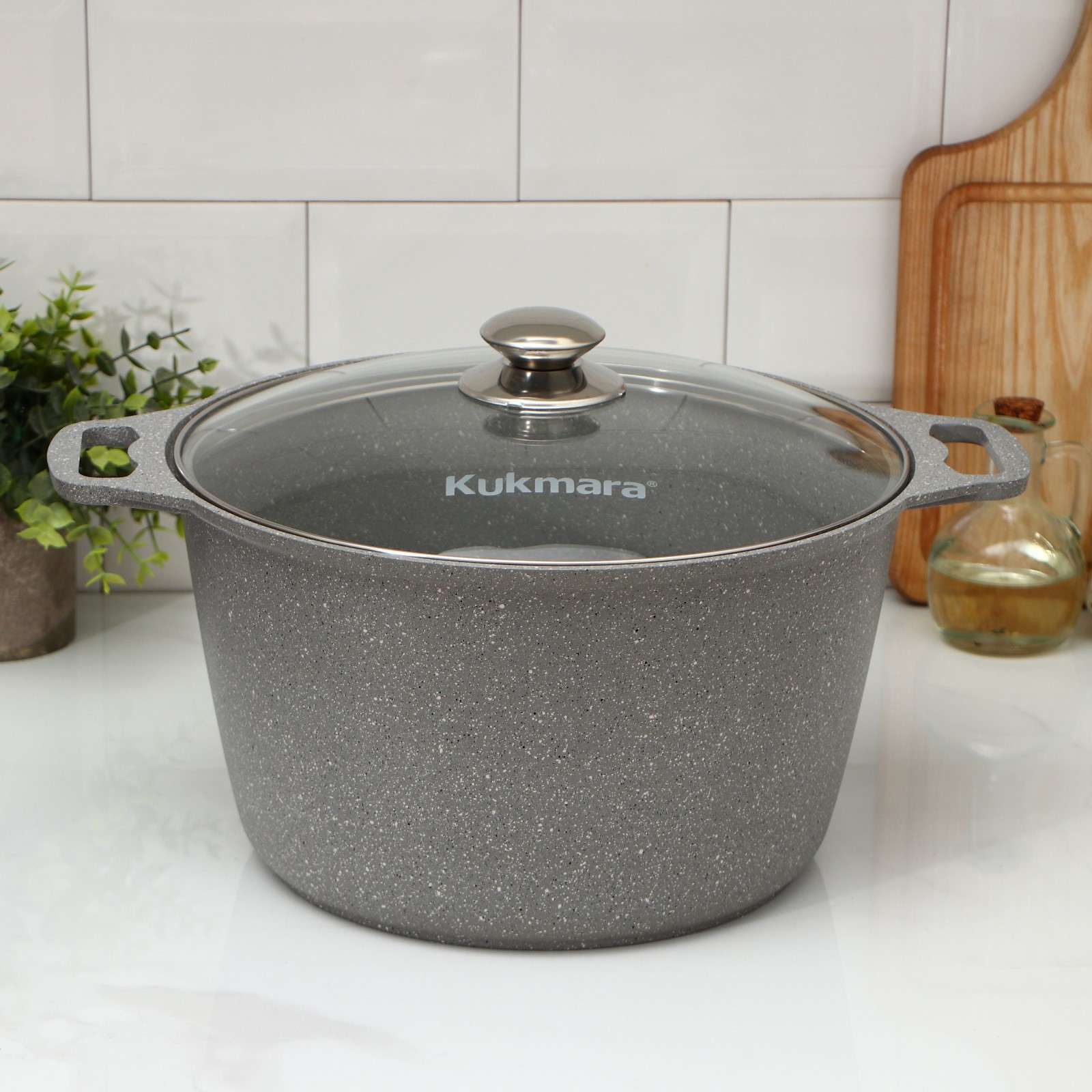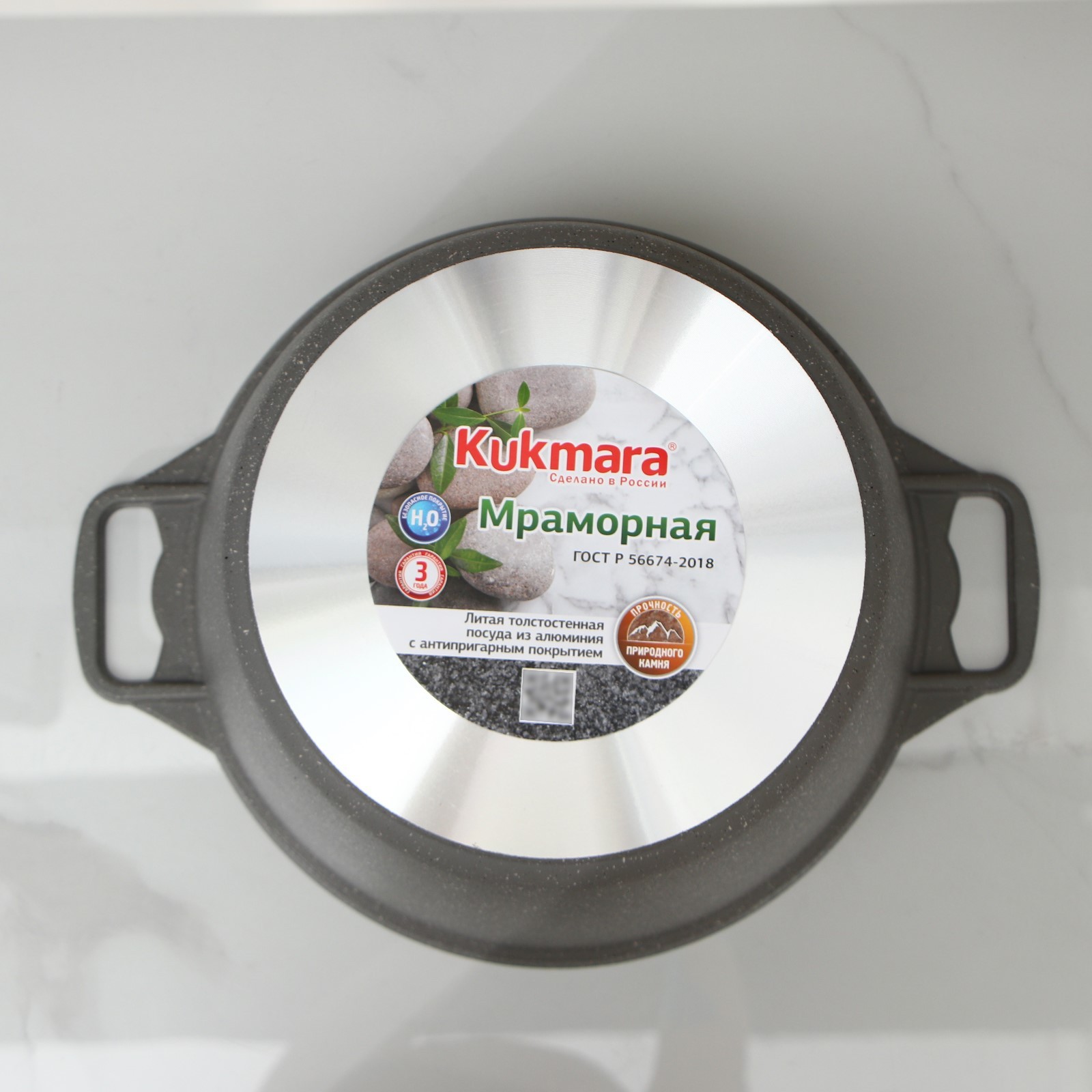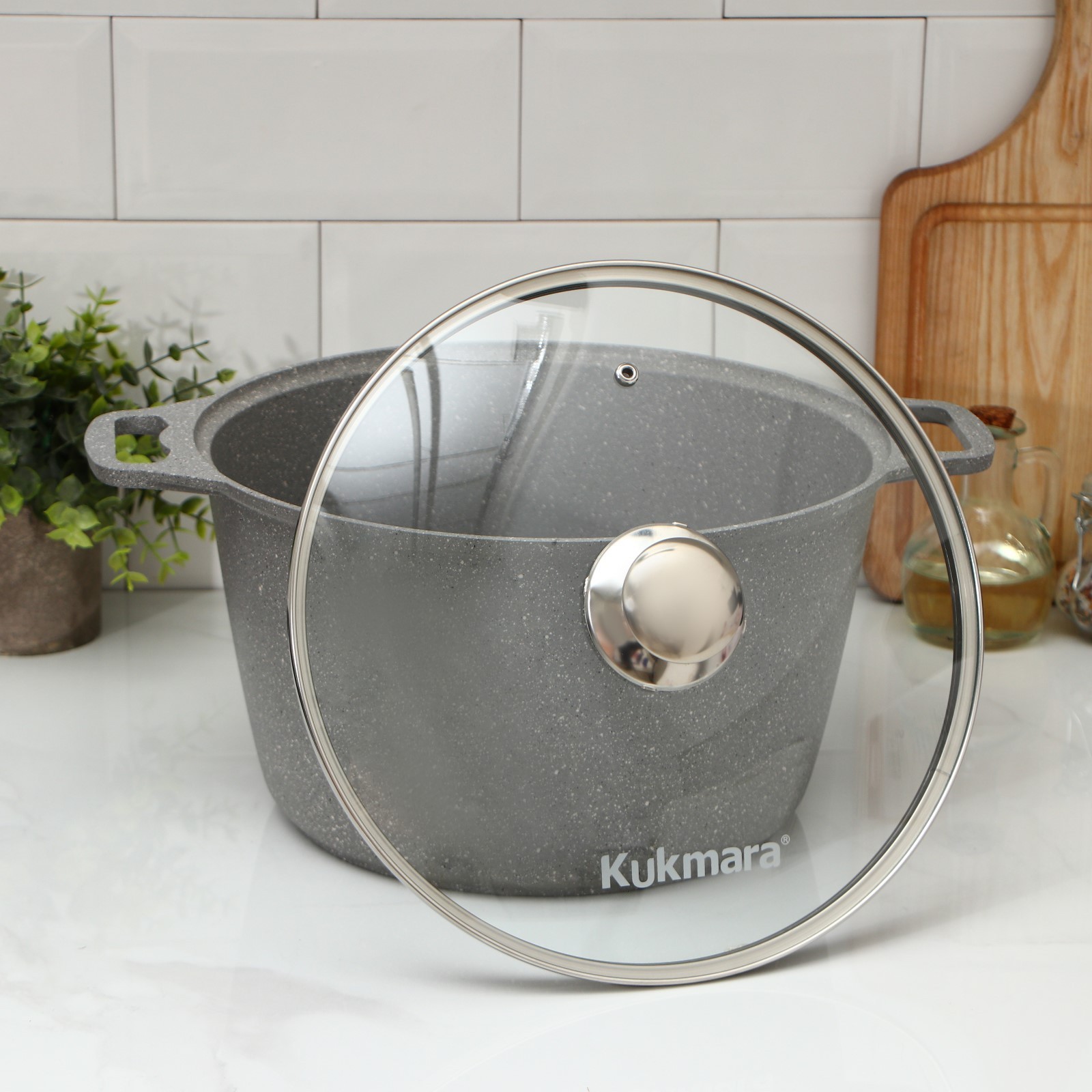 Кастрюля, 8 л, стеклянная крышка, антипригарное покрытие, цвет светлый мрамор