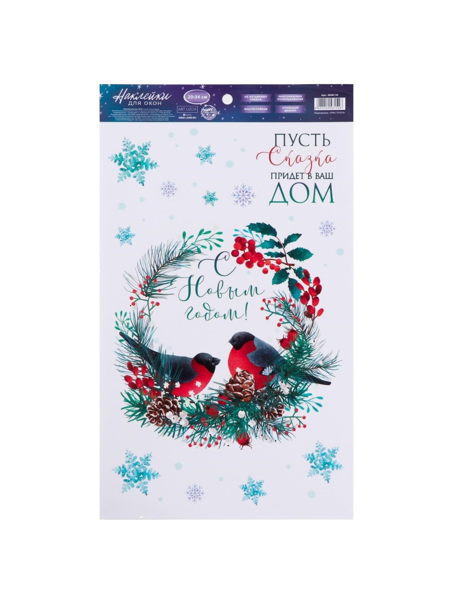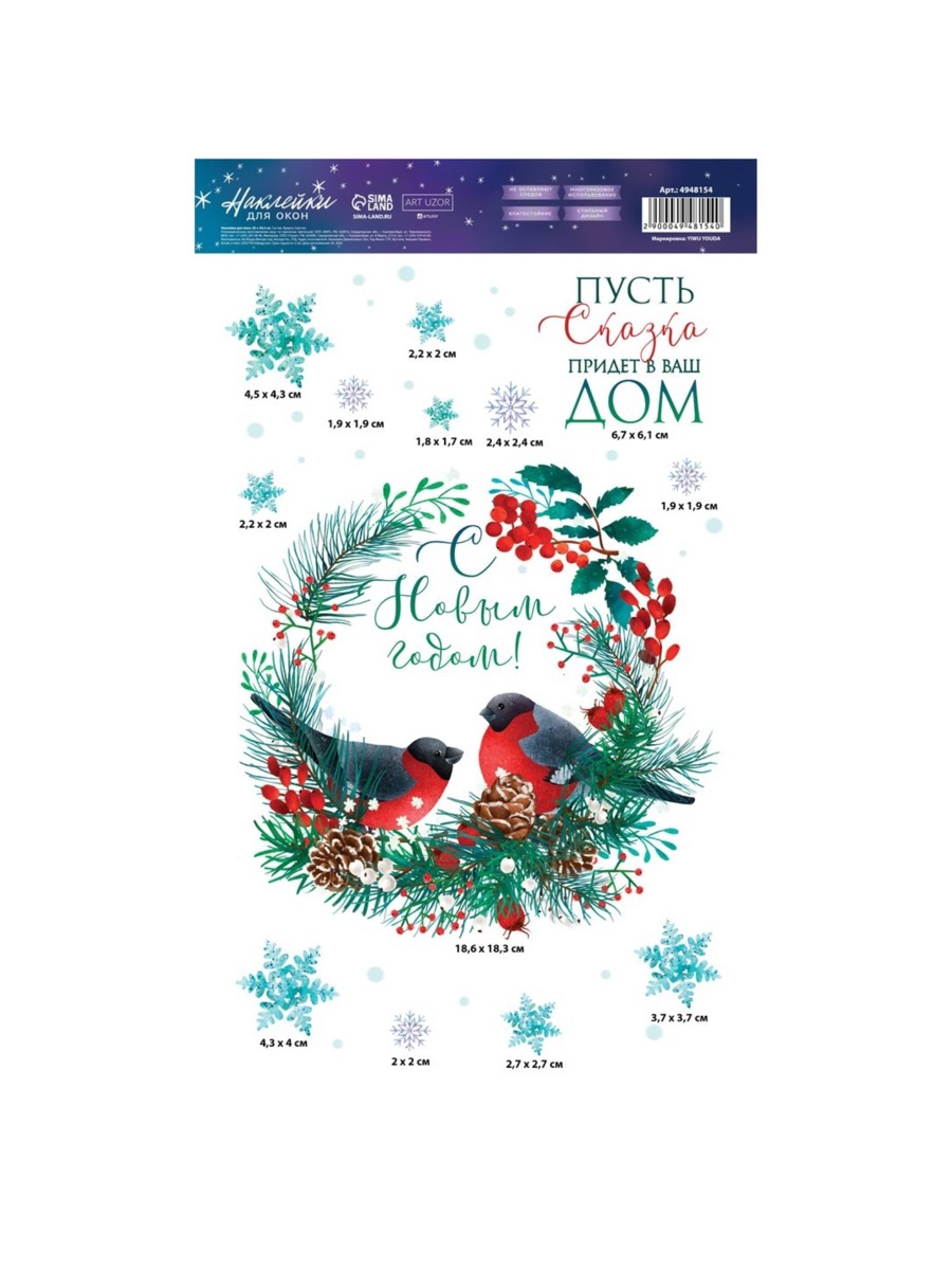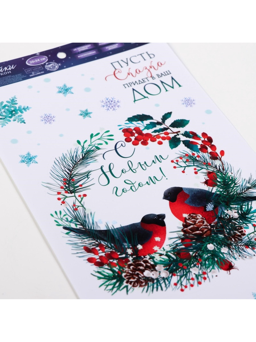 Наклейки на окна многоразовые «с новым годом», снегири на венке, 20 х 34 см. Набор:Нет|Тематика:Новогодняя|Символ года:Нет|Тематика праздника:Новый год|Материал:Винил|Многоразовые:Нет|Вид наклейки:Для окон|Вид наклейки:Водонепроницаемая|Вид наклейки:Многоразовые|Наклейка двухсторонняя:Нет|Стиль:Скандинавский|Страна:Китай  развернуть описание ▼