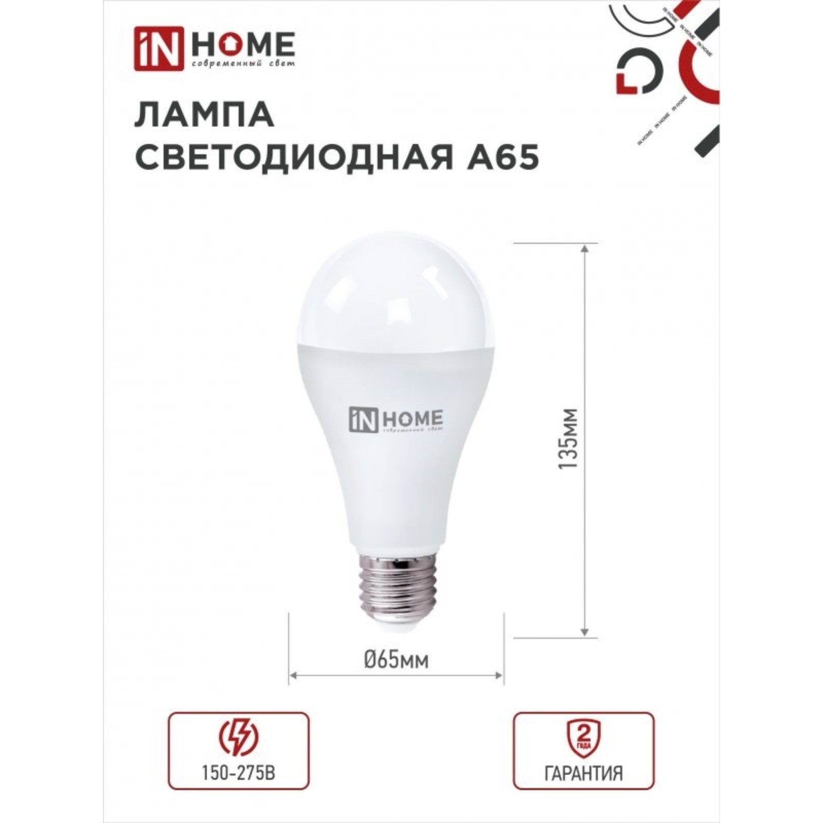 Лампа светодиодная in home led-a65-vc, е27, 25 вт, 230 в, 4000 к, 2250 лм.