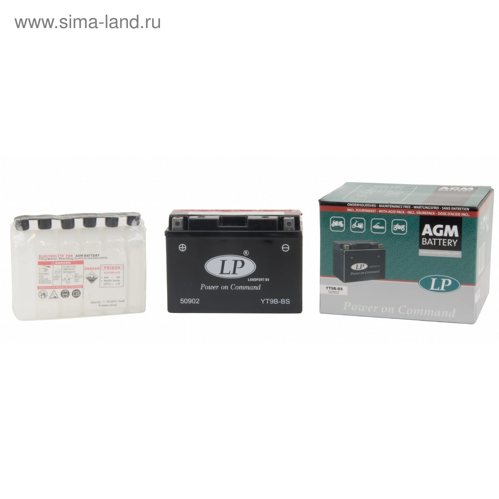 Аккумуляторная батарея Landport Yt9b-bs, 12 в, 8 ач, прямая (+ -)