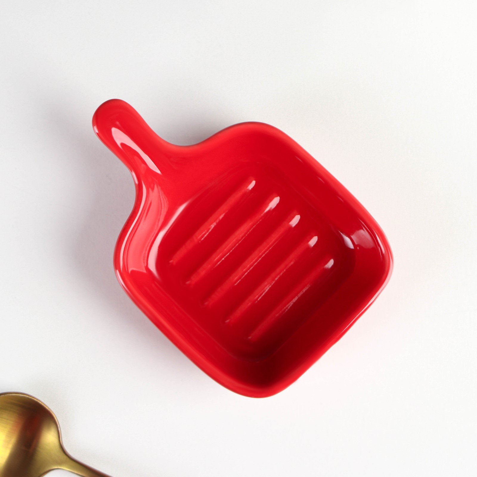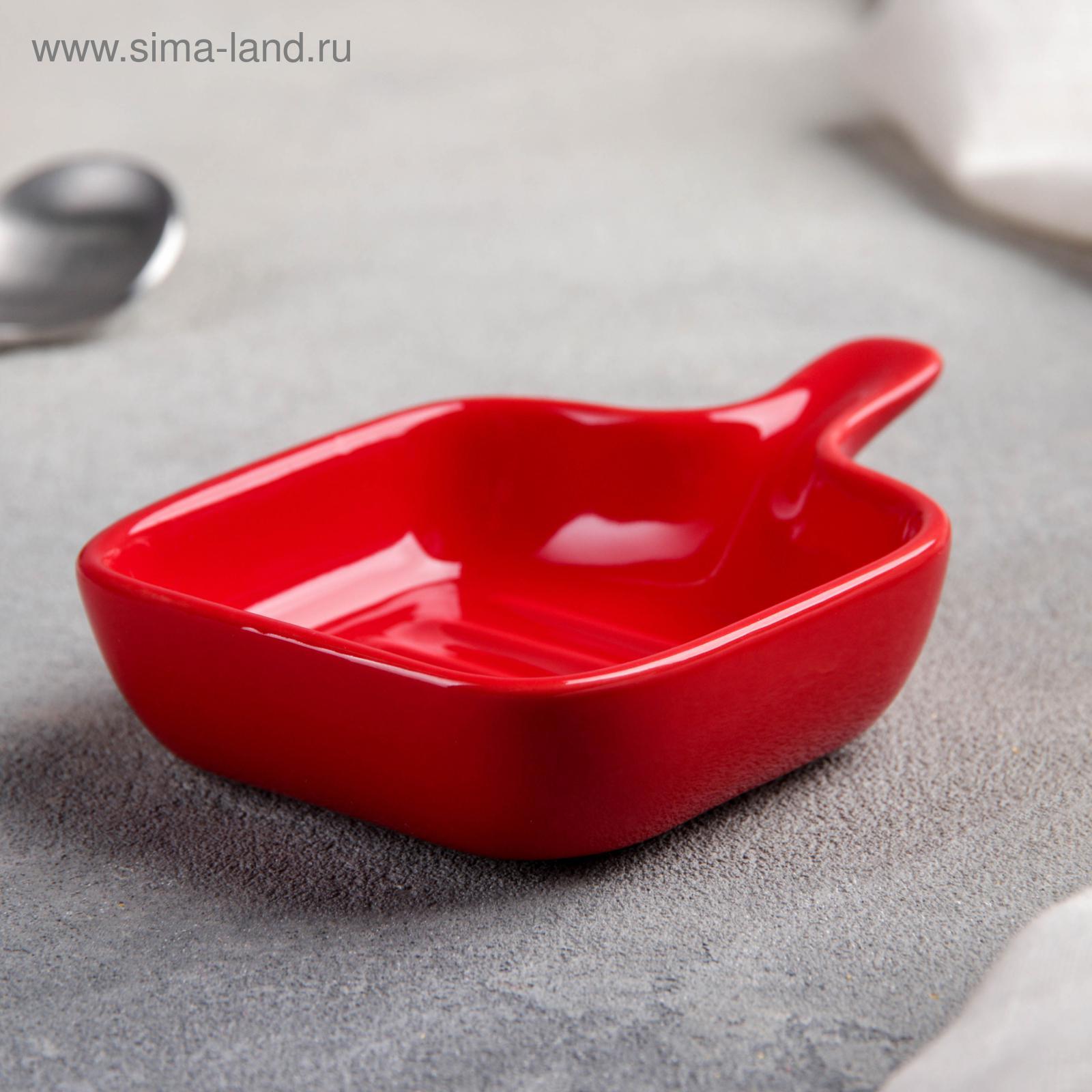 Соусник керамический с ручкой доляна «сковорода», 50 мл, 10,5x7,2 см, цвет красный