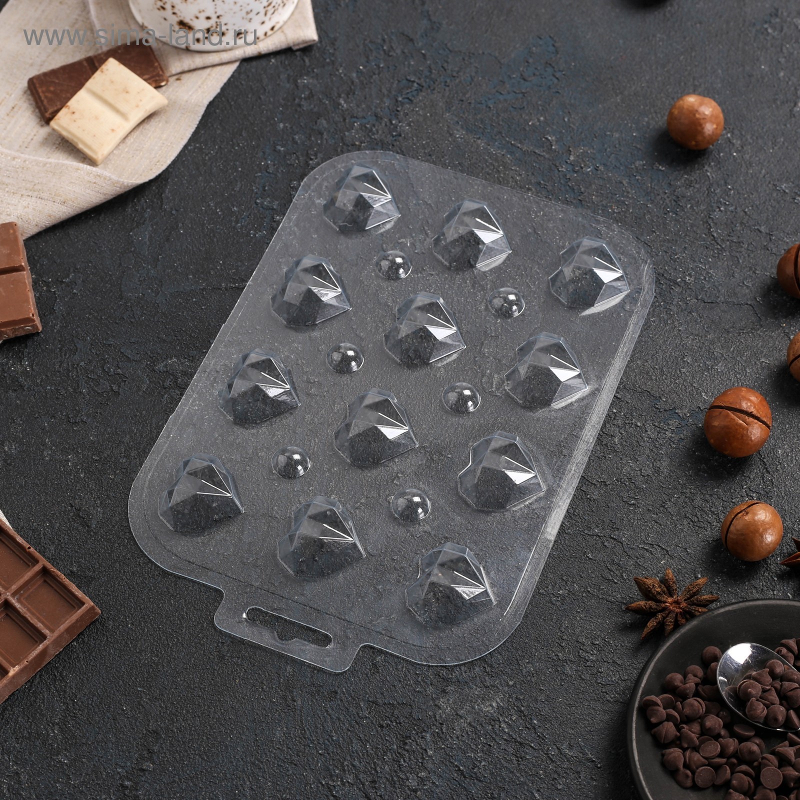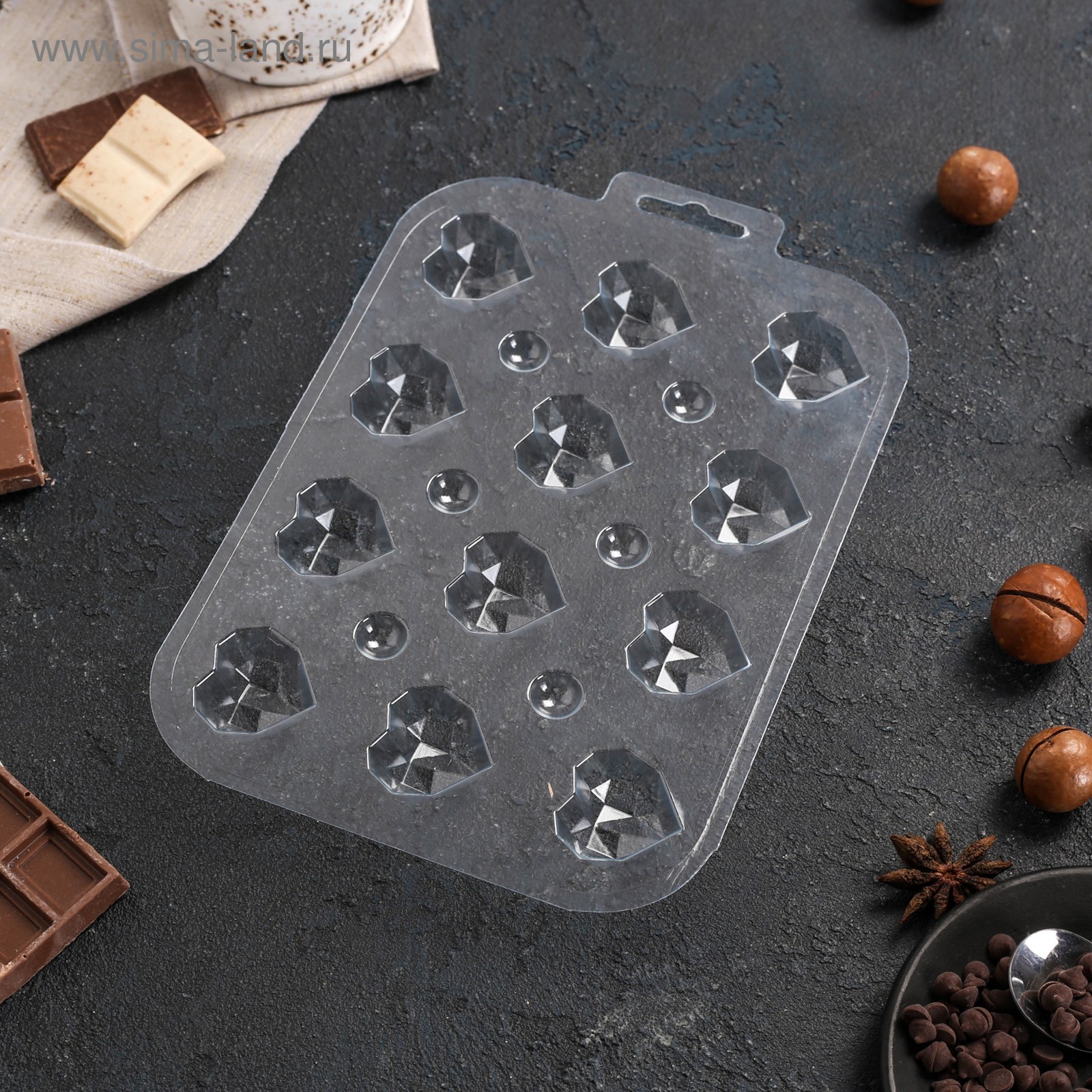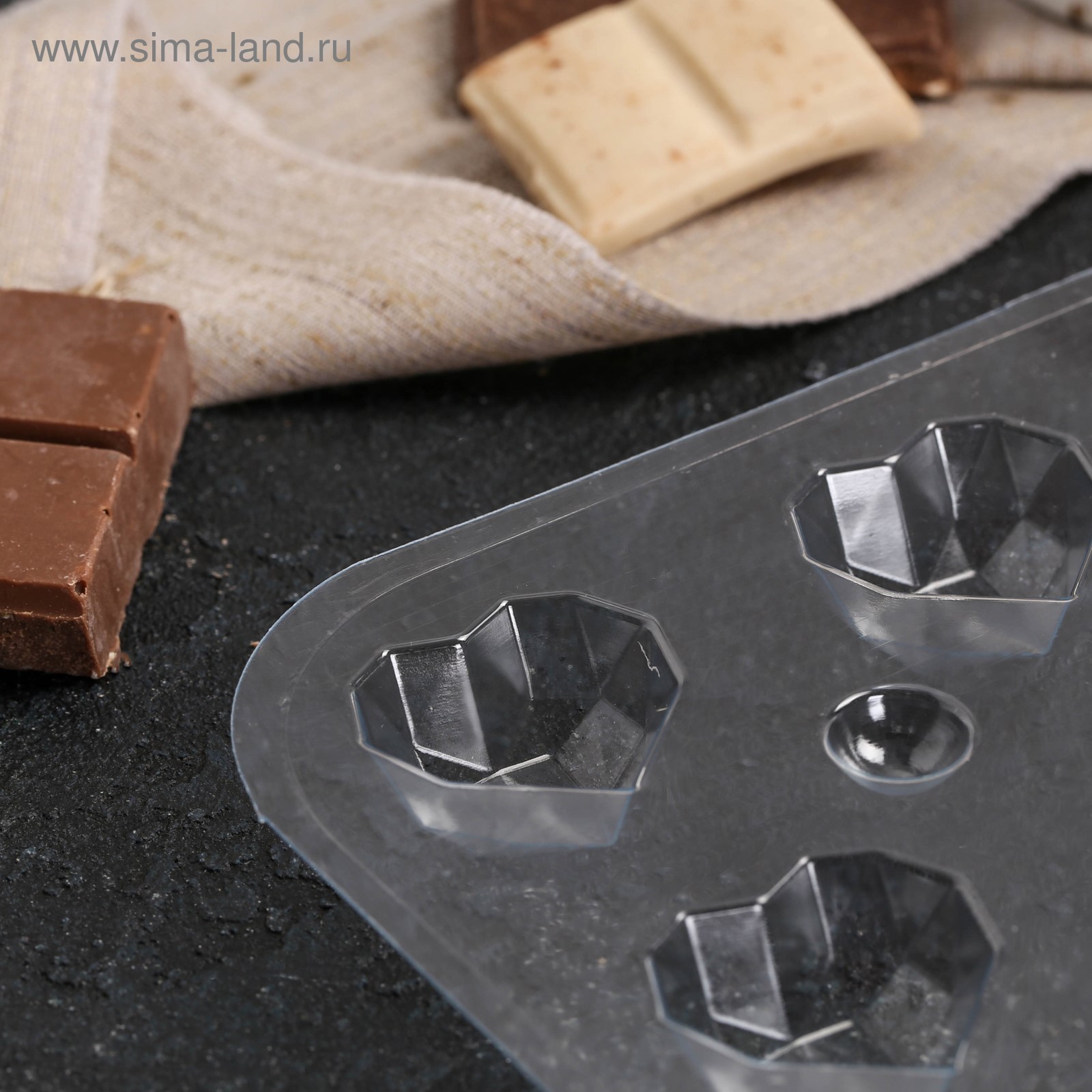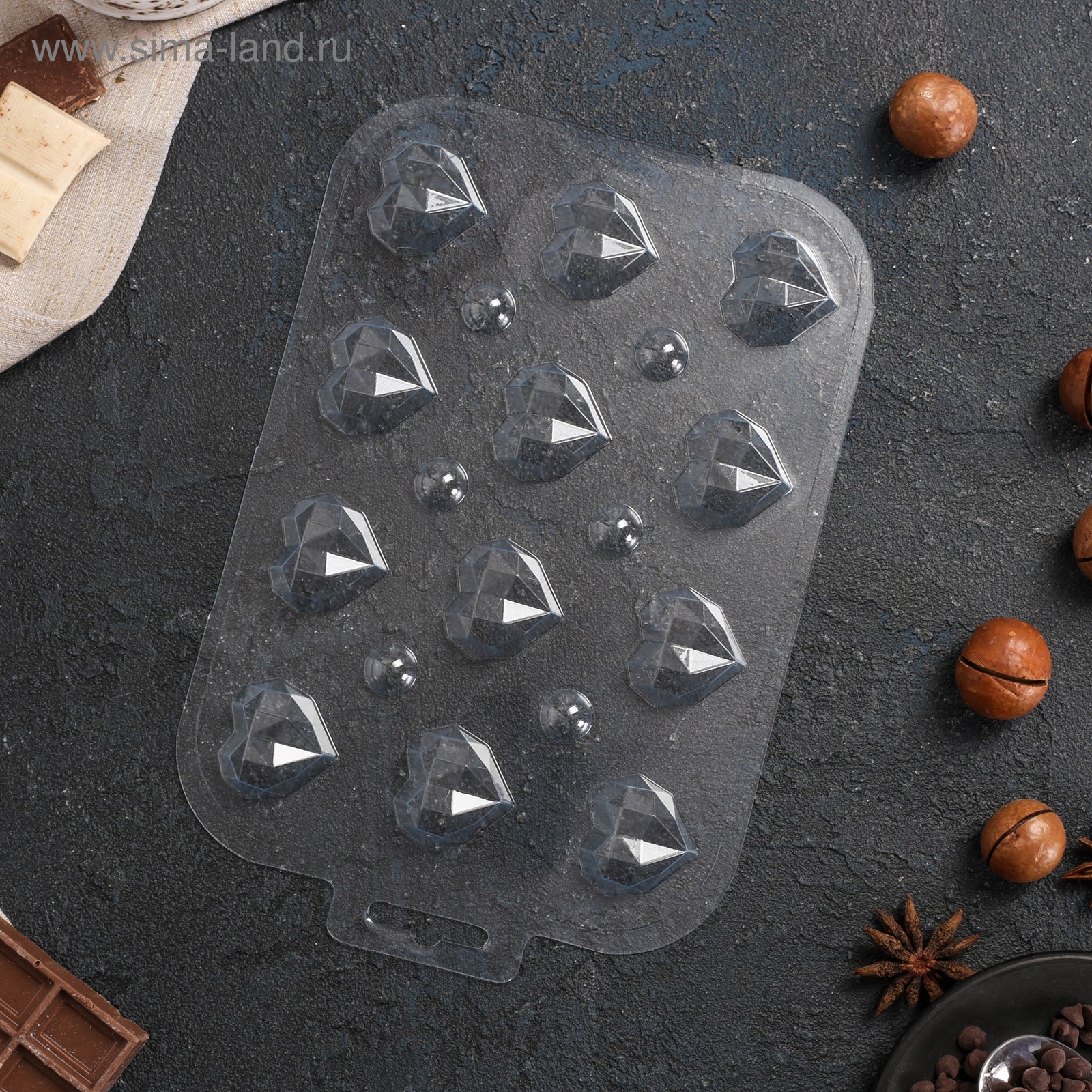 Форма для шоколада и конфет пластиковая «конфеты граненое сердце», цвет прозрачный