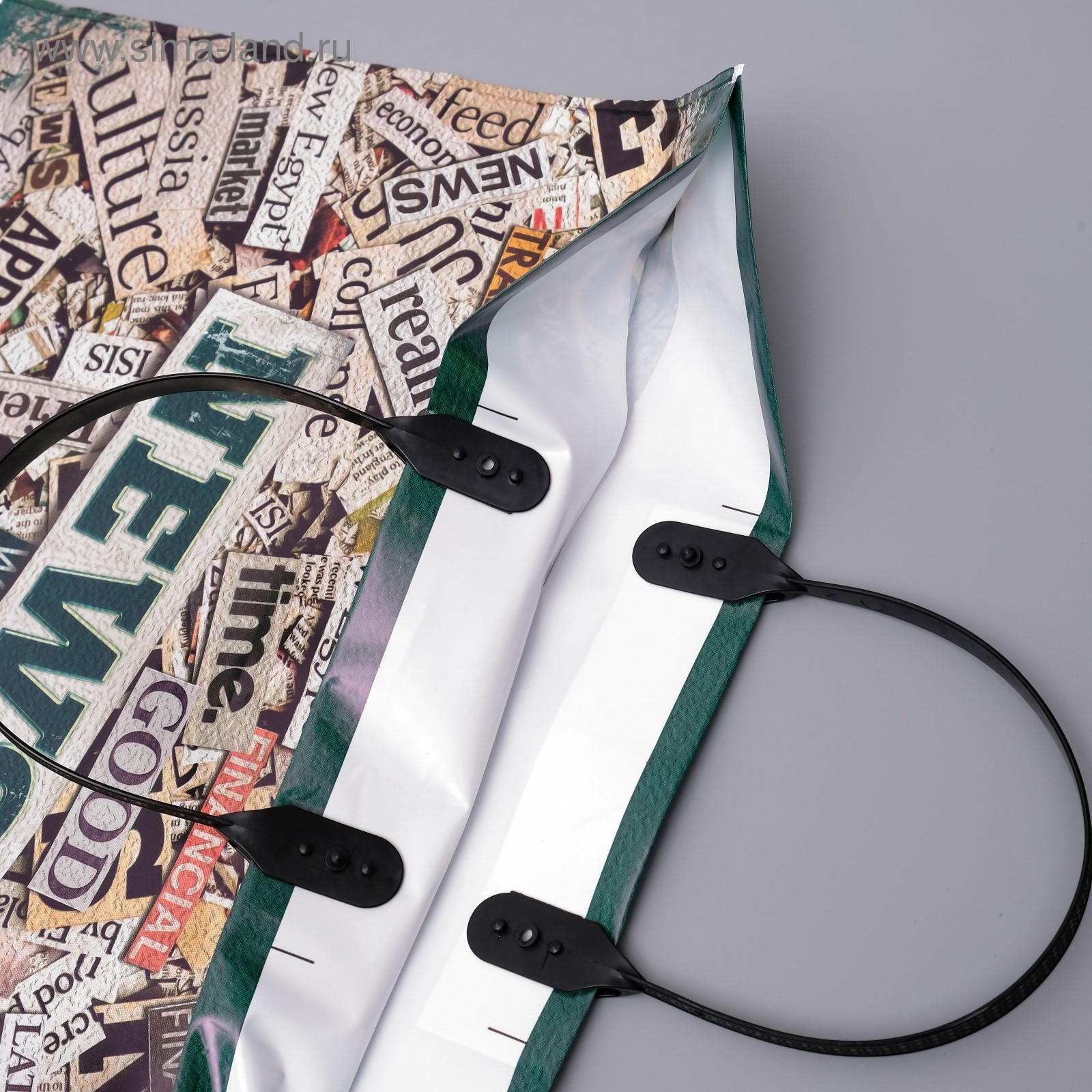 Пакет «новости», полиэтиленовый с пластиковой ручкой, 80 мкм 37 34 см. Стильный акцент для современных подарков! Пакет с газетным принтом и пластиковой ручкой сочетает винтажный шарм и практичную функциональность. Необычный дизайн и качественные материалы делают его выбором для креативных презентов. Оптимальная плотность 80 мкм: Сохраняет форму при нагрузке до 8 кг. Двойная система складок увеличивает объем и обеспечивает устойчивость.Универсальный размер 37 34 см: Подходит для упаковки книг, парфюмерии и предметов среднего размера. Пластиковая ручка удобна для переноски.Винтажный газетный дизайн: Зеленый фон с типографскими элементами создает атмосферу ретро-стиля. Ламинация подчеркивает детали и защищает оформление.Креативное применение: Идеален для подарков творческим людям, любителям винтажа и нестандартных решений. Универсальная тематика подходит для любого повода.Индивидуальность в деталях: Пакет изготовлен из плотного ПВД, что гарантирует сохранность содержимого. Газетный принт и зеленый цвет создают интеллектуальный образ, а практичная конструкция делает его подходящим для регулярного использования. Такой пакет становится выражением индивидуального стиля дарителя. Цвет:Зелёный|Для кого:Для женщины|Для кого:Унисекс|Размер, см:34 х 37|Рекомендуемая нагрузка, кг:8|Толщина, мкм:80|Тематика:Винтаж|Тематика:Надписи, цифры, буквы|Рисунок:Да|Символ года:Нет|Тематика праздника:Универсальная тематика|Материал:ПВД|Отделка пакета:Декор|Отделка пакета:Ламинация|Расширение:Боковая складка|Расширение:Донная складка|Вид ручки:Пластиковая|Особенности:Под парфюмерию|Особенности:Креативный|Особенности:С широким дном|Страна:Россия  развернуть описание ▼