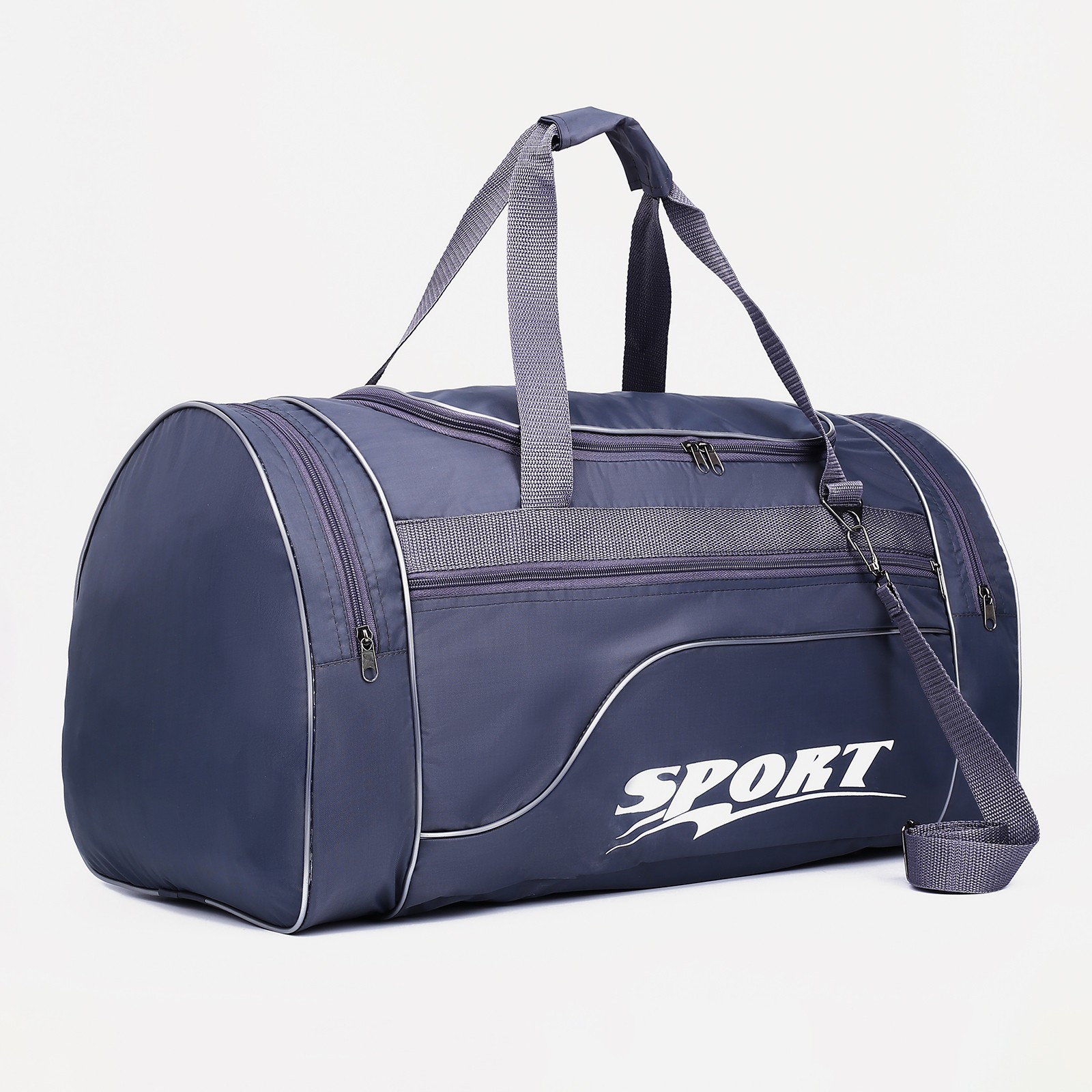 Сумка спортивная на молнии, 3 наружных кармана, длинный ремень, большой размер, цвет серый