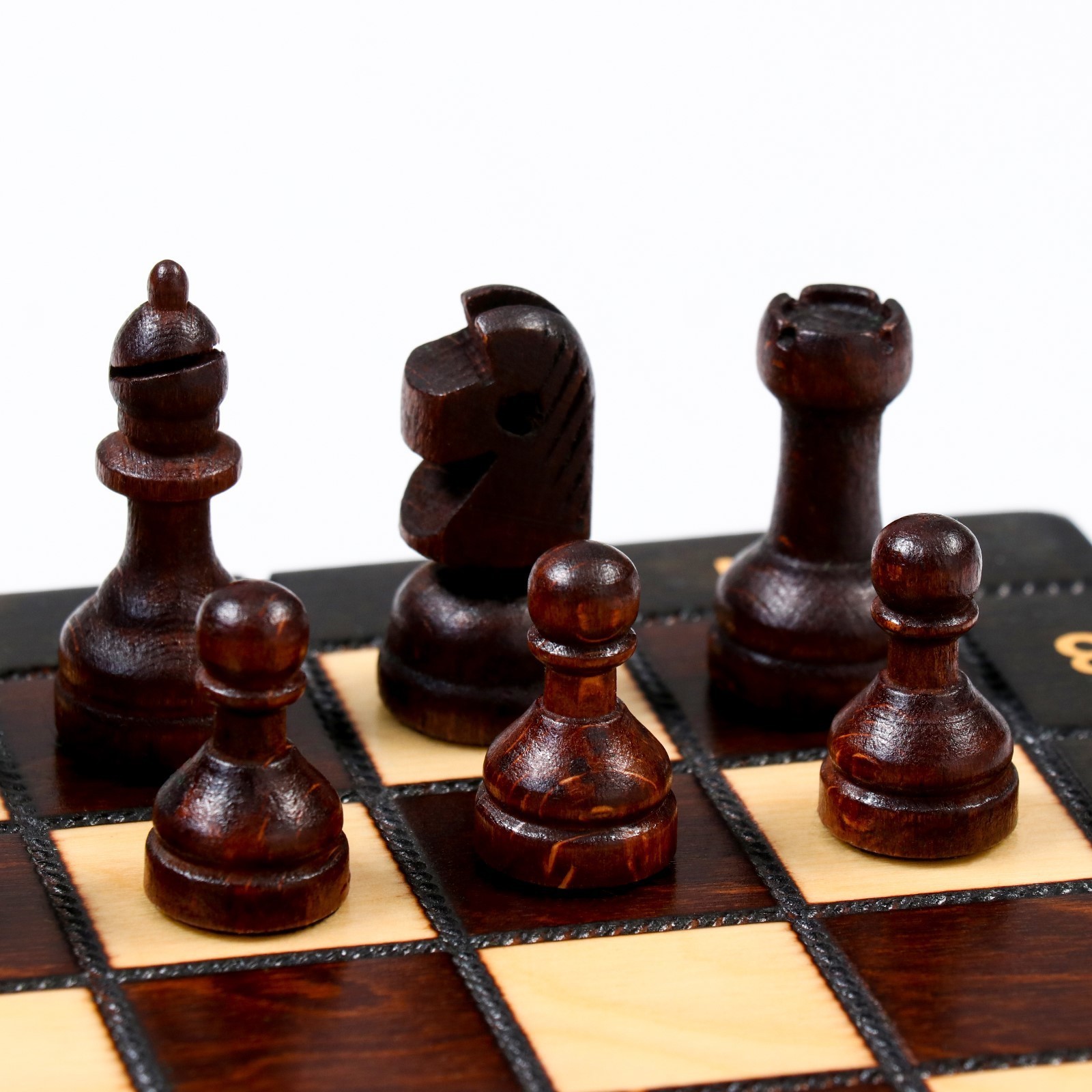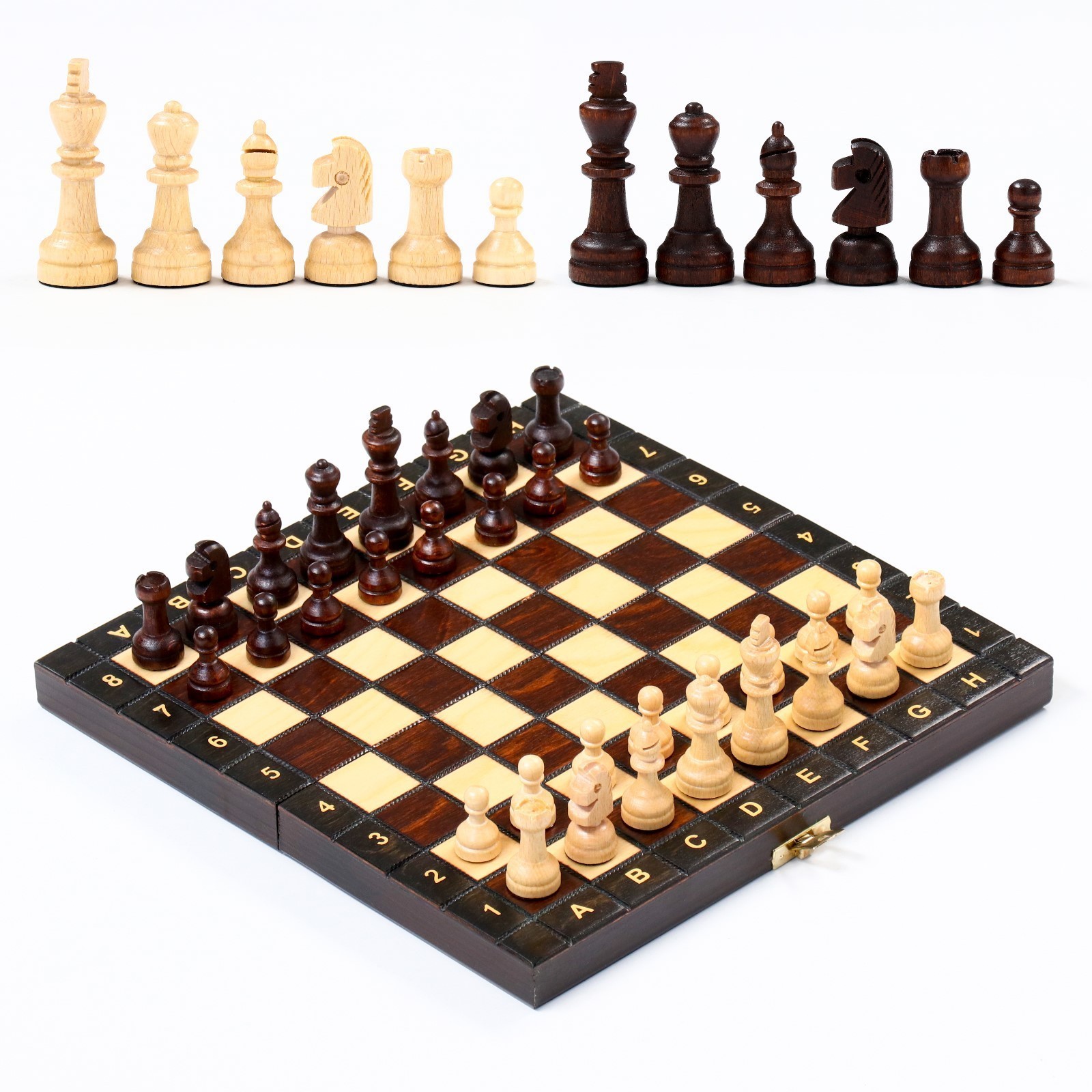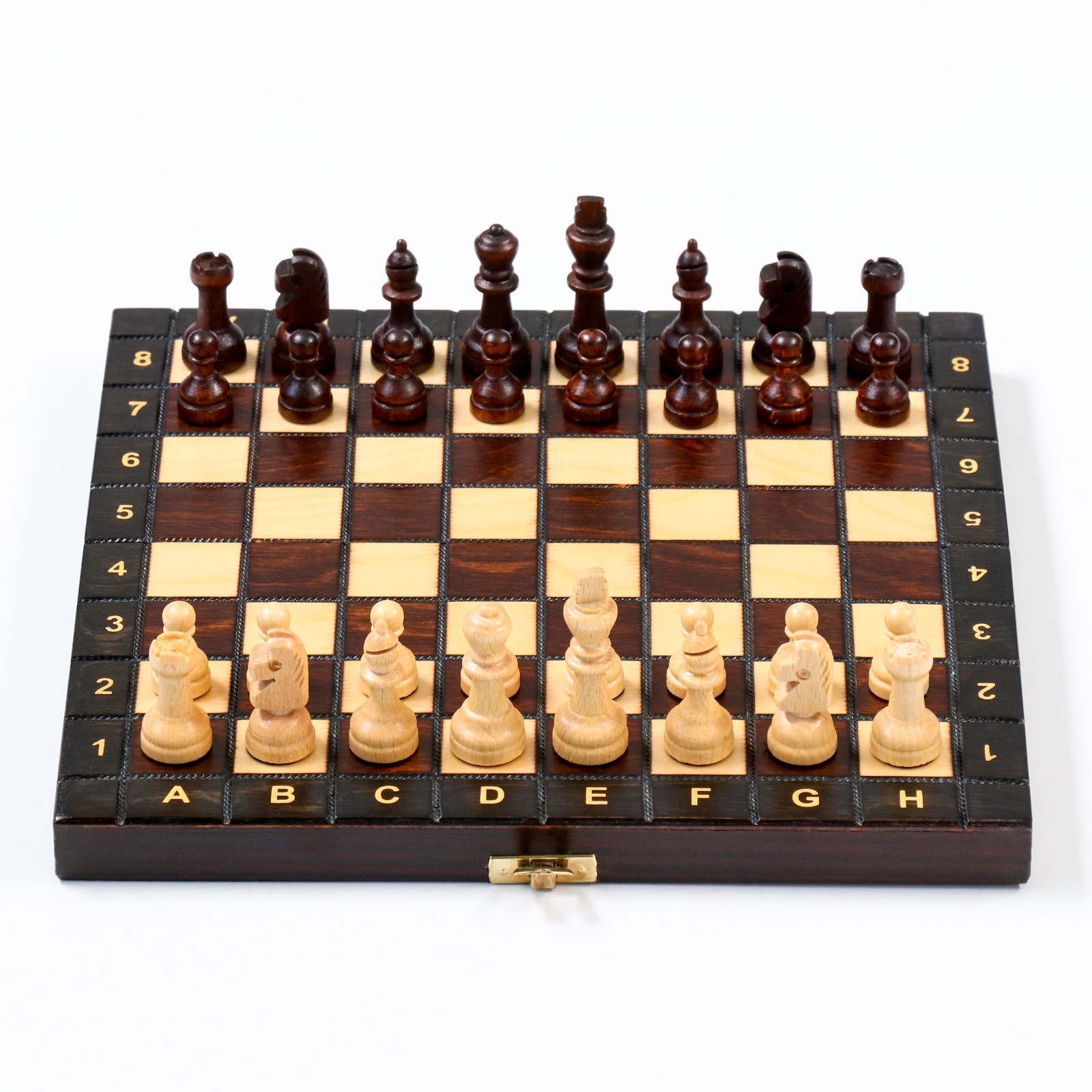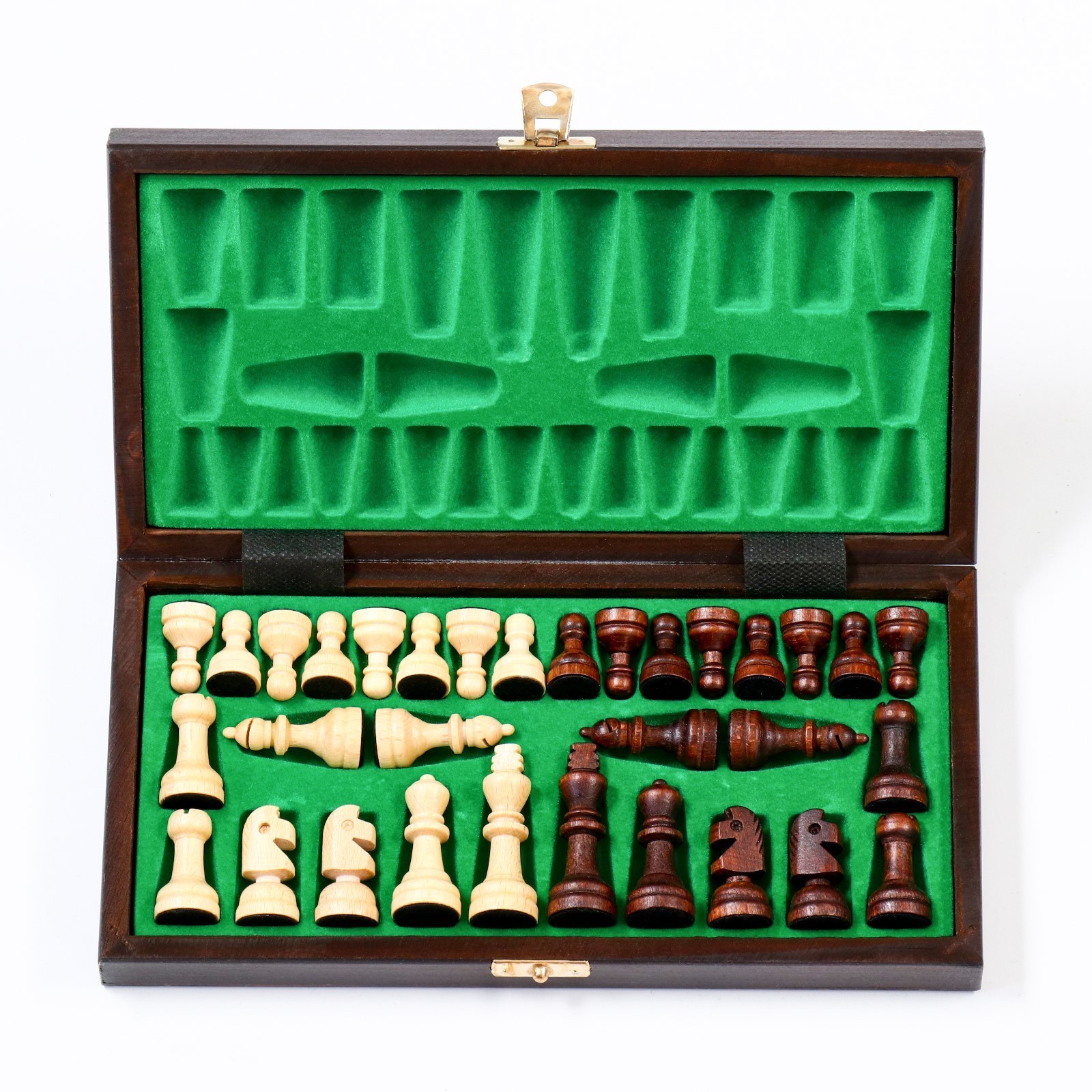 Шахматы польские деревянные большие madon, 27 х 27 см, король h-6 см, пешка h-2.5 см. Отличительными особенностями шахмат из Польши являются оригинальный классический дизайн шахматной доски с инкрустацией, элементами резьбы и выжига, а также европейский дизайн фигур. Благодаря данной игре, вы сможете с интересом проводить свободное время и устраивать настоящие турниры. Наличие бархата зеленого цвета добавляет изыска изделию, а для удобного хранения шахматных фигур предусмотрены специальные отсеки, что обусловливает минимум передвижения при переноске. Шахматы подходят как для детей, так и для взрослых, и станут прекрасным подарком для шахматиста или просто любителя настольных игр. Особого внимания в этой модели шахмат "Школьные" заслуживает дизайн игровой доски. Оригинальный и современный, он поражает тщательной проработкой каждой мельчайшей детали. Доска настолько красиво и качественно сделана, что этот набор шахмат - один из лучших вариантов подарка любителю традиционных настольных игр. Фигуры выполнены в классическом дизайне. Держится доска на качественных алюминиевых петлях. Размер, см: 27 х 27 Материал: Дерево Вид: Шахматы (доска + фигуры) Особенности: Подарочные Особенности: Ручная работа Материал шашек, шахмат: Дерево Материал игральной доски: Дерево  развернуть описание ▼