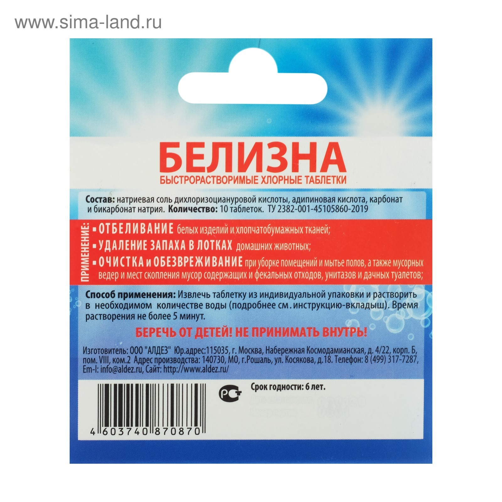 Белизна "новое поколение", быстрорастворимая хлорная таблетка 10 шт