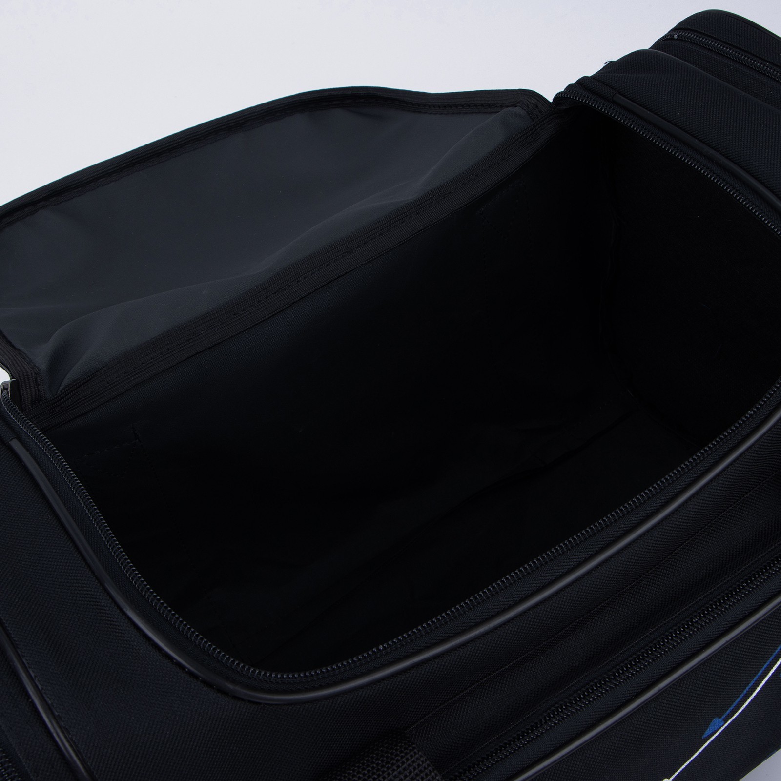 Сумка дорожная на молнии, 3 наружных кармана, длинный ремень, цвет чёрный/синий
