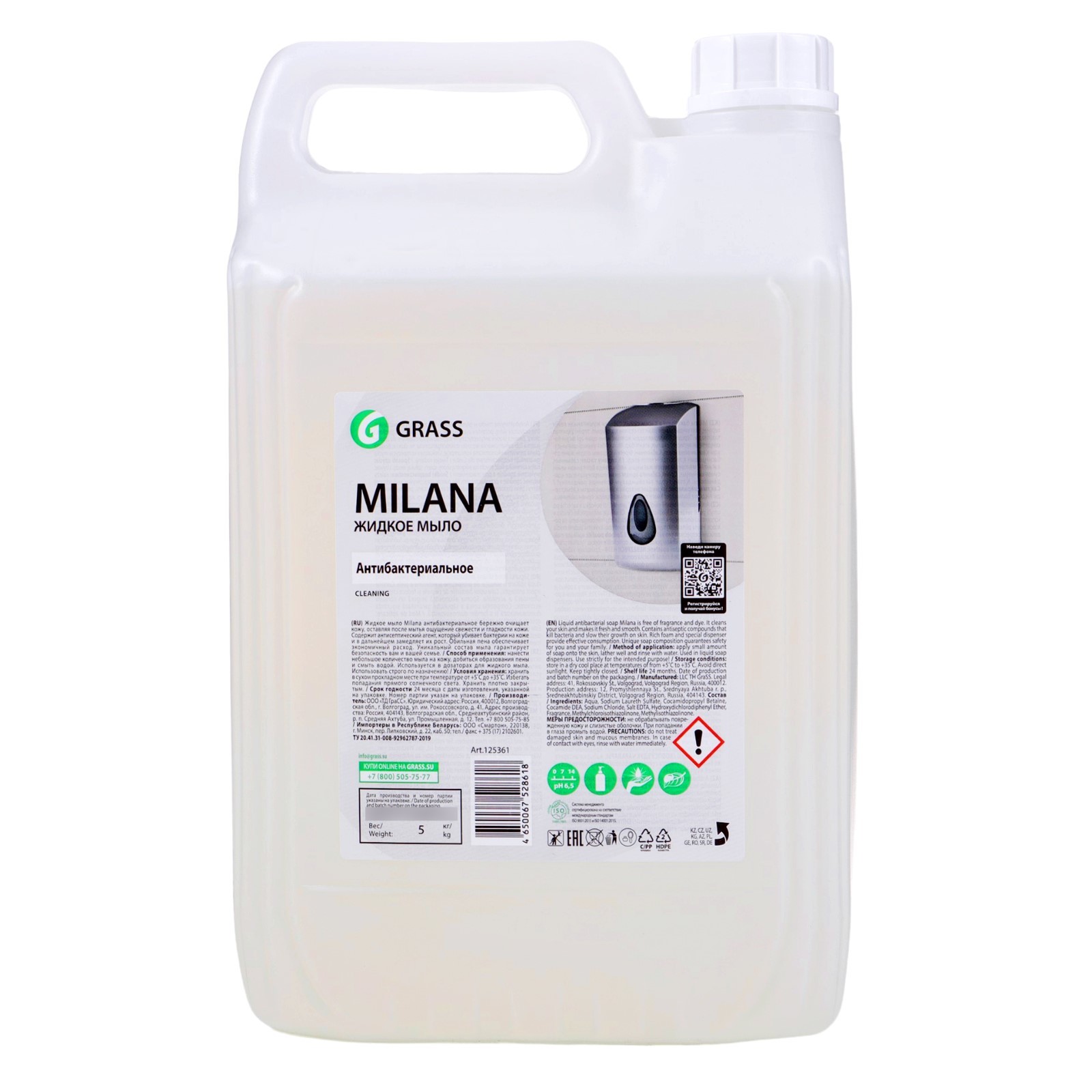 Жидкое мыло grass milana "антибактериальное", 5 л. Жидкое мыло «Milana антибактериальное»  бережно очищает кожу, оставляя после мытья ощущение свежести и гладкости кожи. Содержит антисептический агент, который убивает бактерии на коже и в дальнейшем замедляет их рост. Обильная пена обеспечивают экономичный расход. Профессиональное средство, не содержит красителей и ароматизаторов.