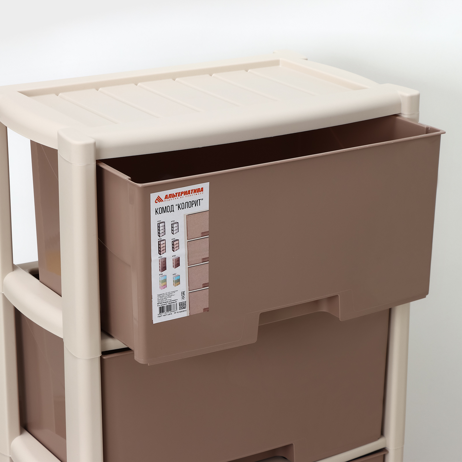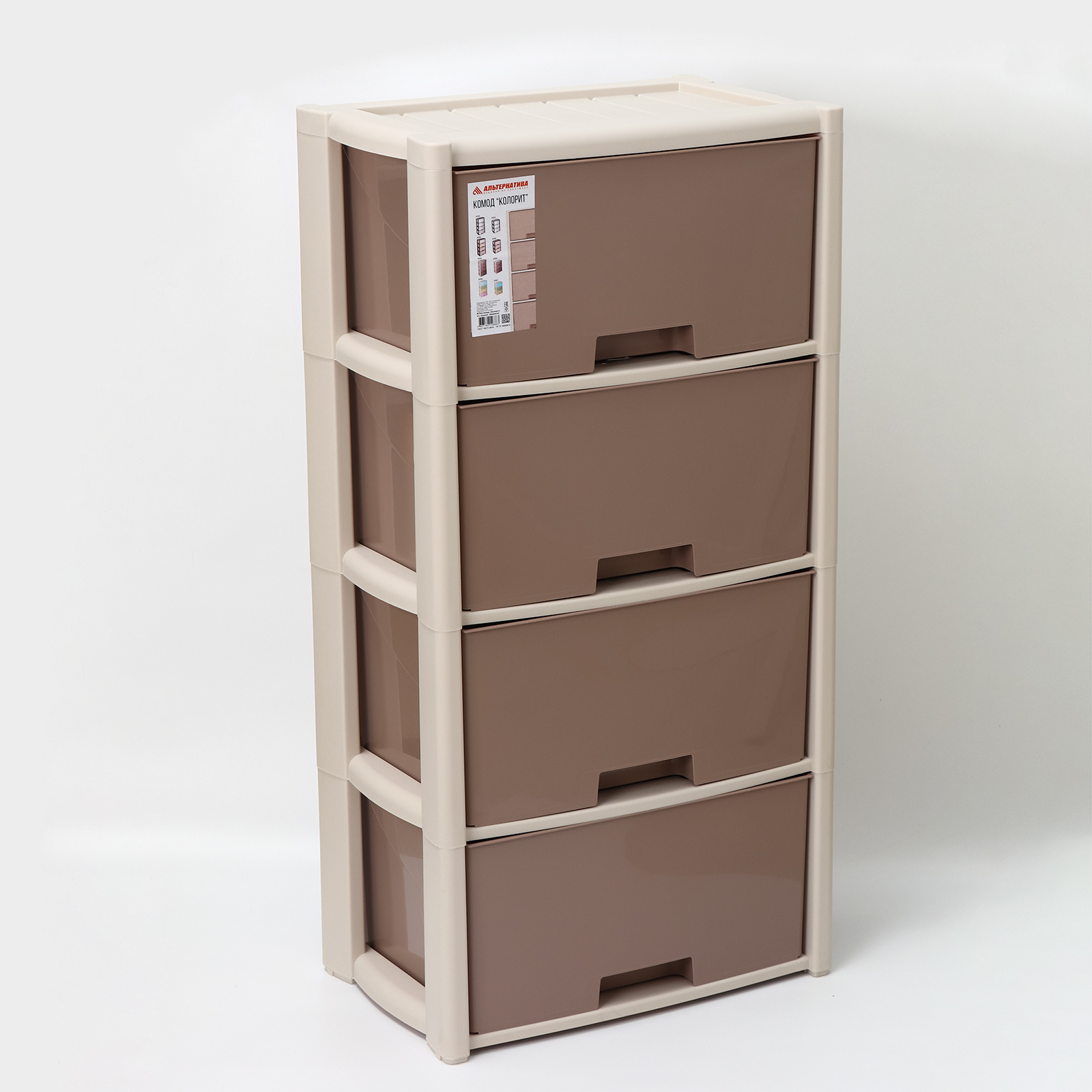 Комод 4-х секционный «колорит», цвет микс. С помощью практичного пластикового комода вы правильно организуете хранение вещей. Изделие имеет жёсткую конструкцию за счёт цельных боковых стенок. Отсутствие острых углов делает его безопасным для ребёнка. Комод изготовлен из экологически чистого материала, не содержит вредных веществ. Преимущества: высокопрочный пластик;простая и быстрая сборка;ящики легко достать и вставить обратно;простота в уходе;подходит для детской комнаты, ванной, коридора;стильный дизайн. Цвет: МИКС Ширина, мм: 475 Глубина, мм: 300 Высота, мм: 940 parts count: 0 Количество секций: 4 Материал: Пластик Температурное ограничение: Нет Поставляется в разобранном виде: Да  развернуть описание ▼