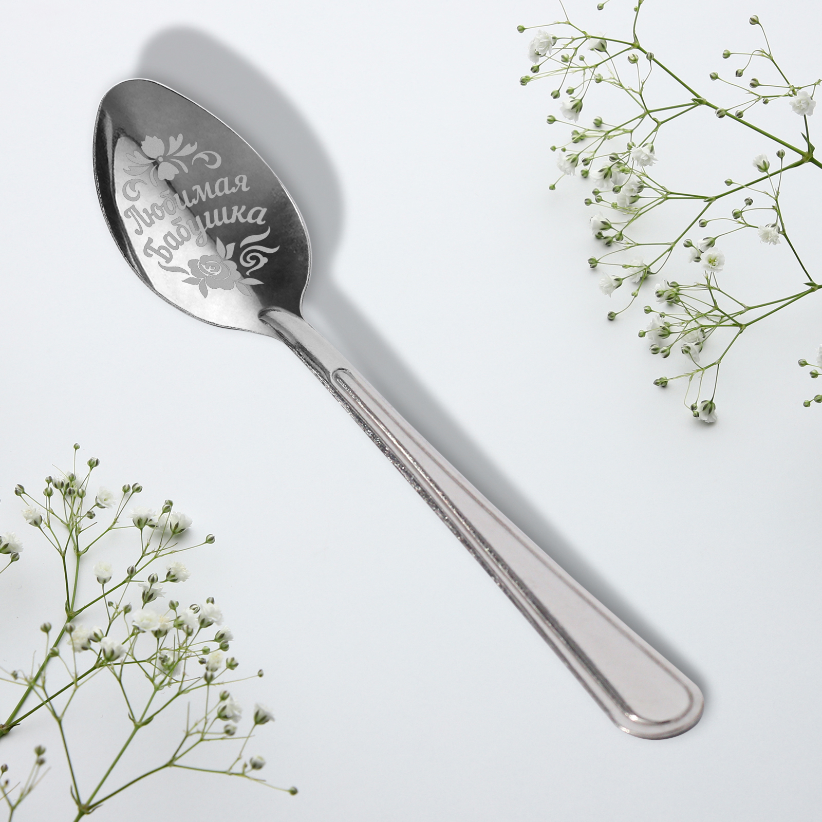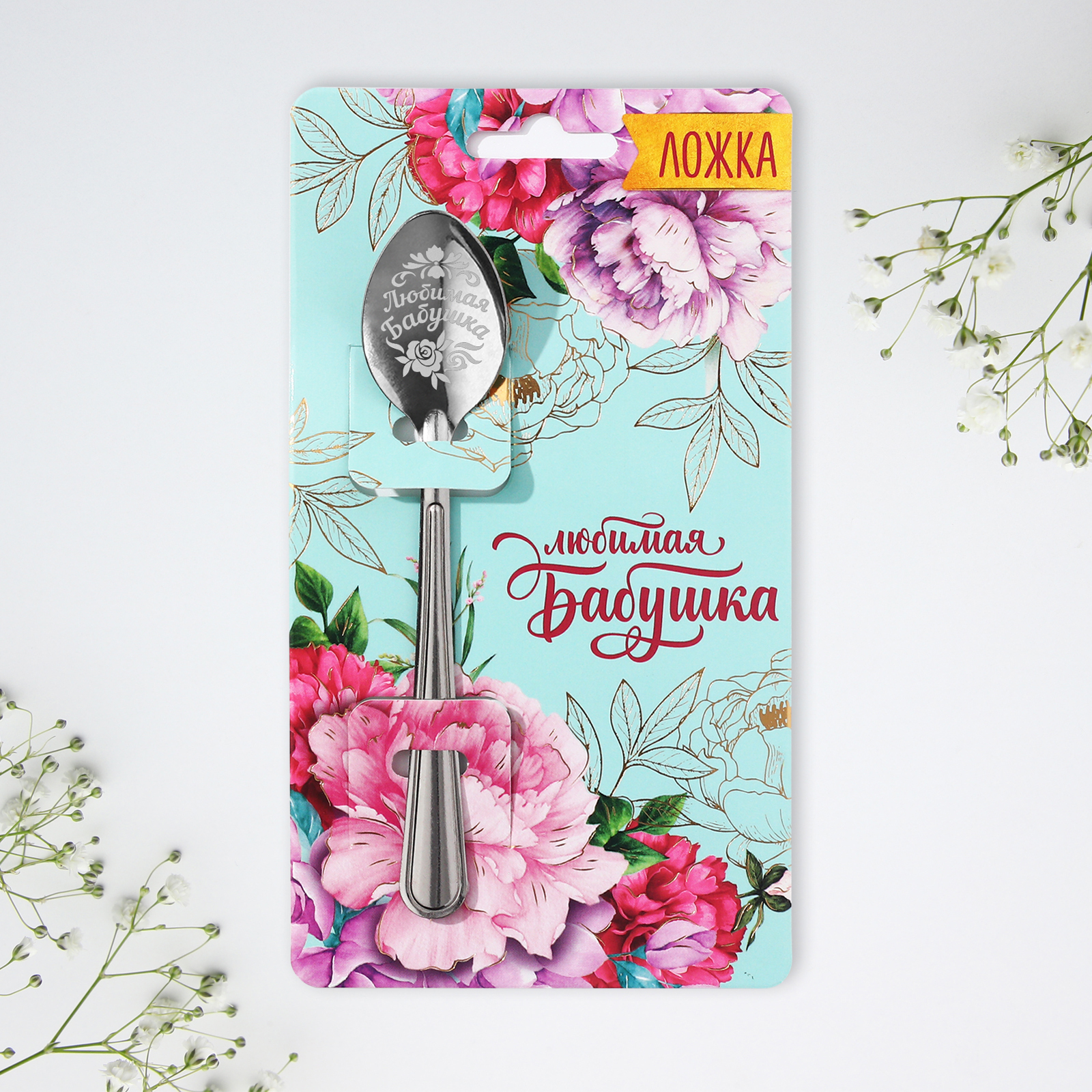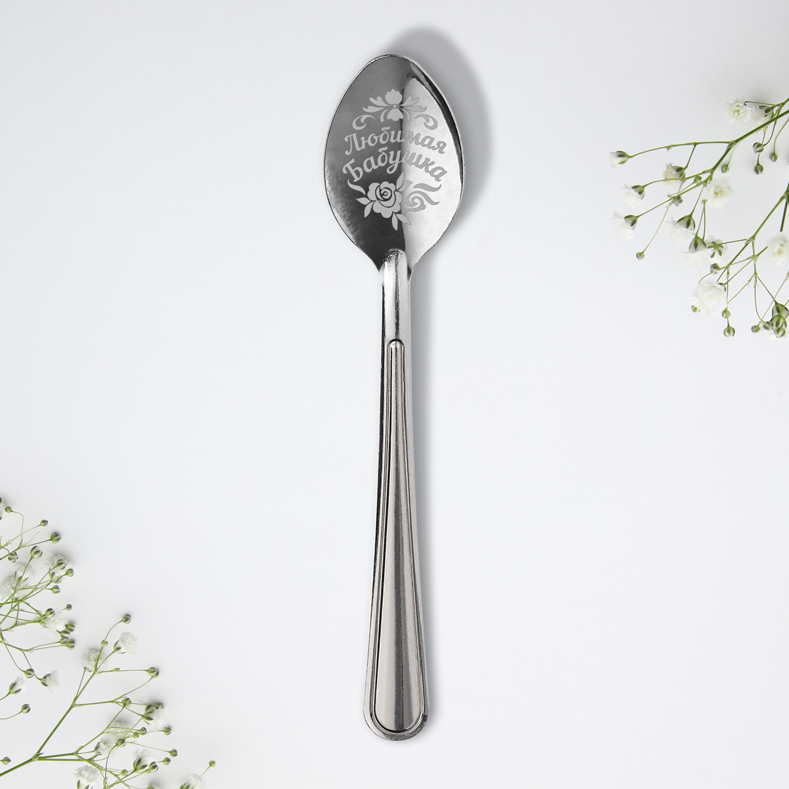 Ложка чайная с гравировкой «любимая бабушка», на подарочной открытке, 3 х 14 см.