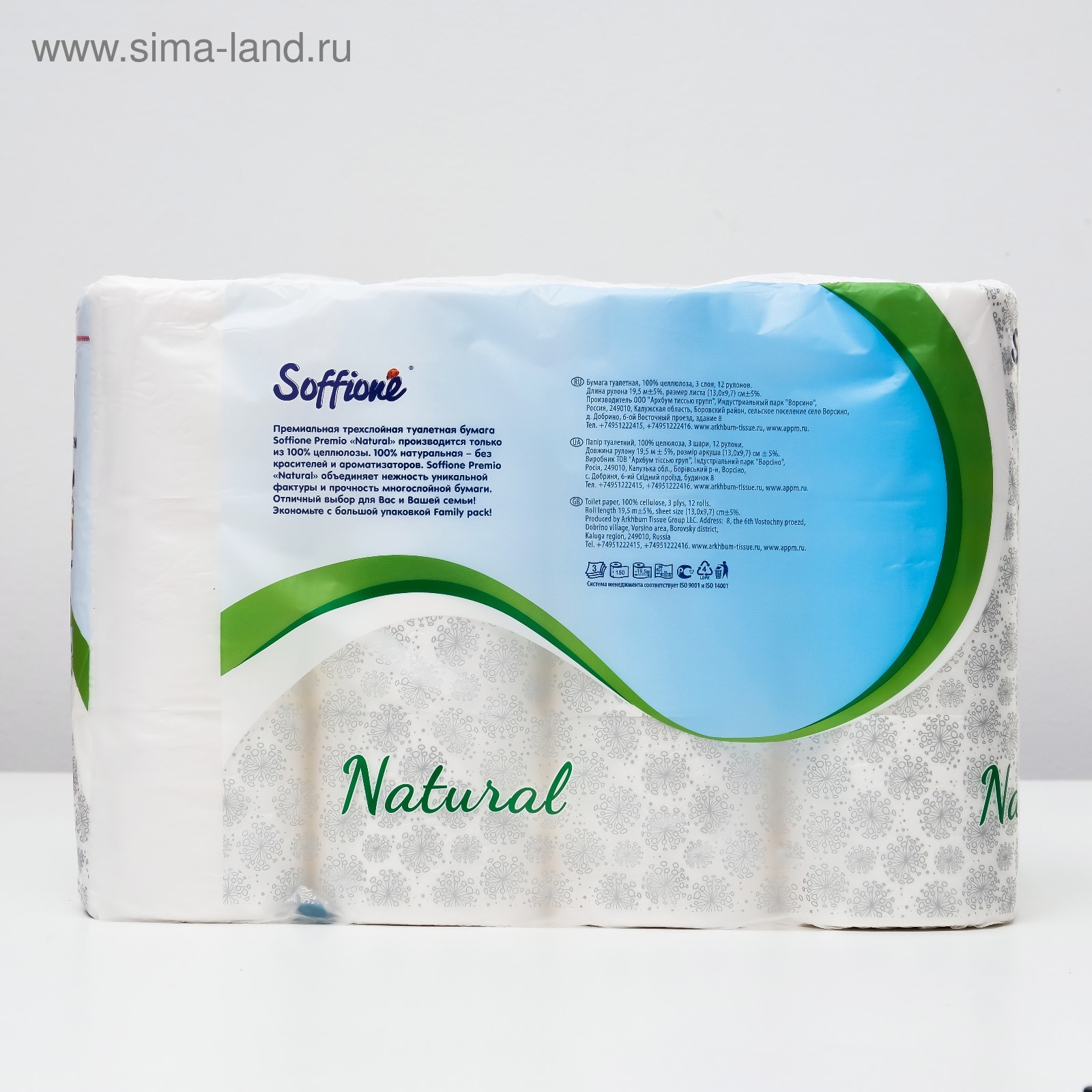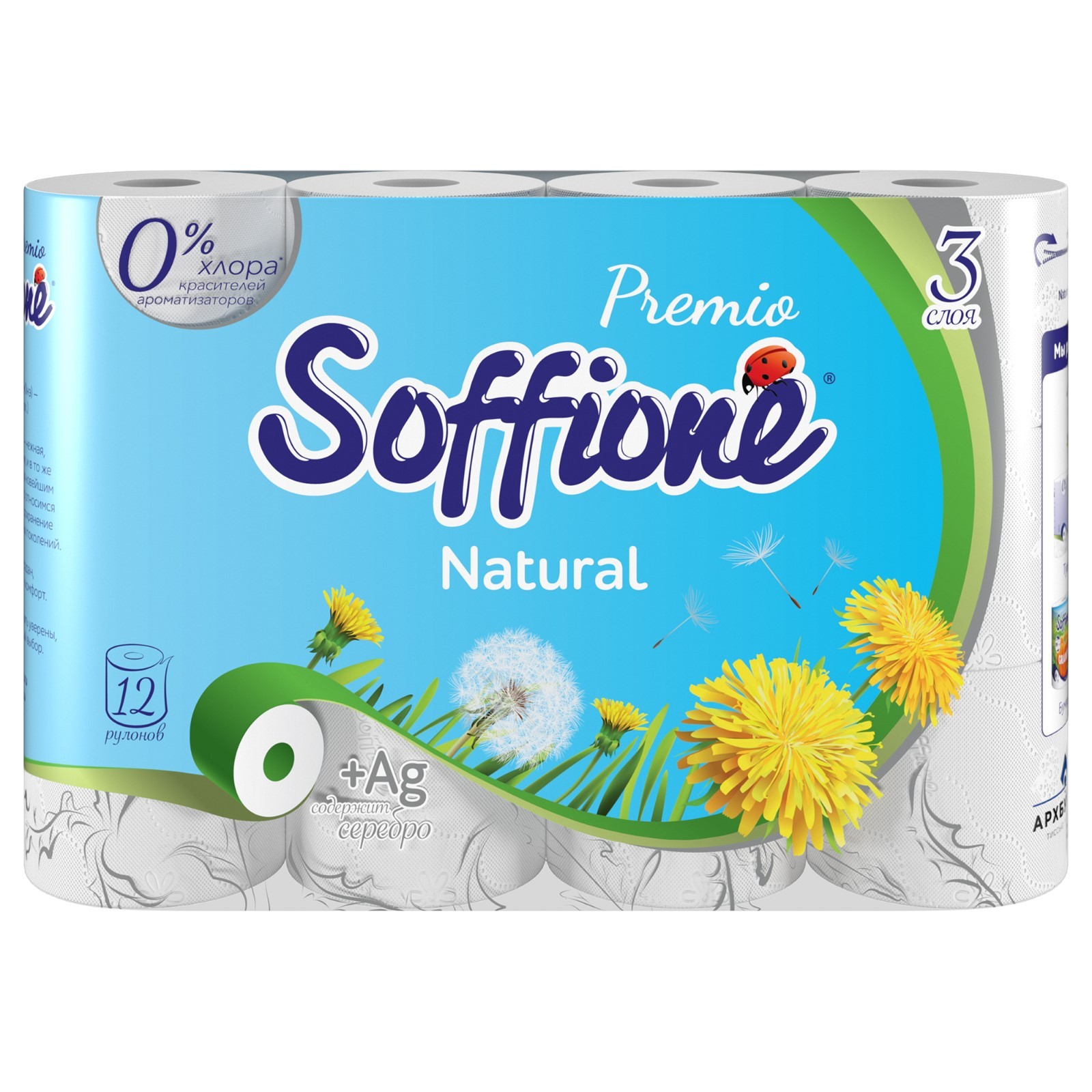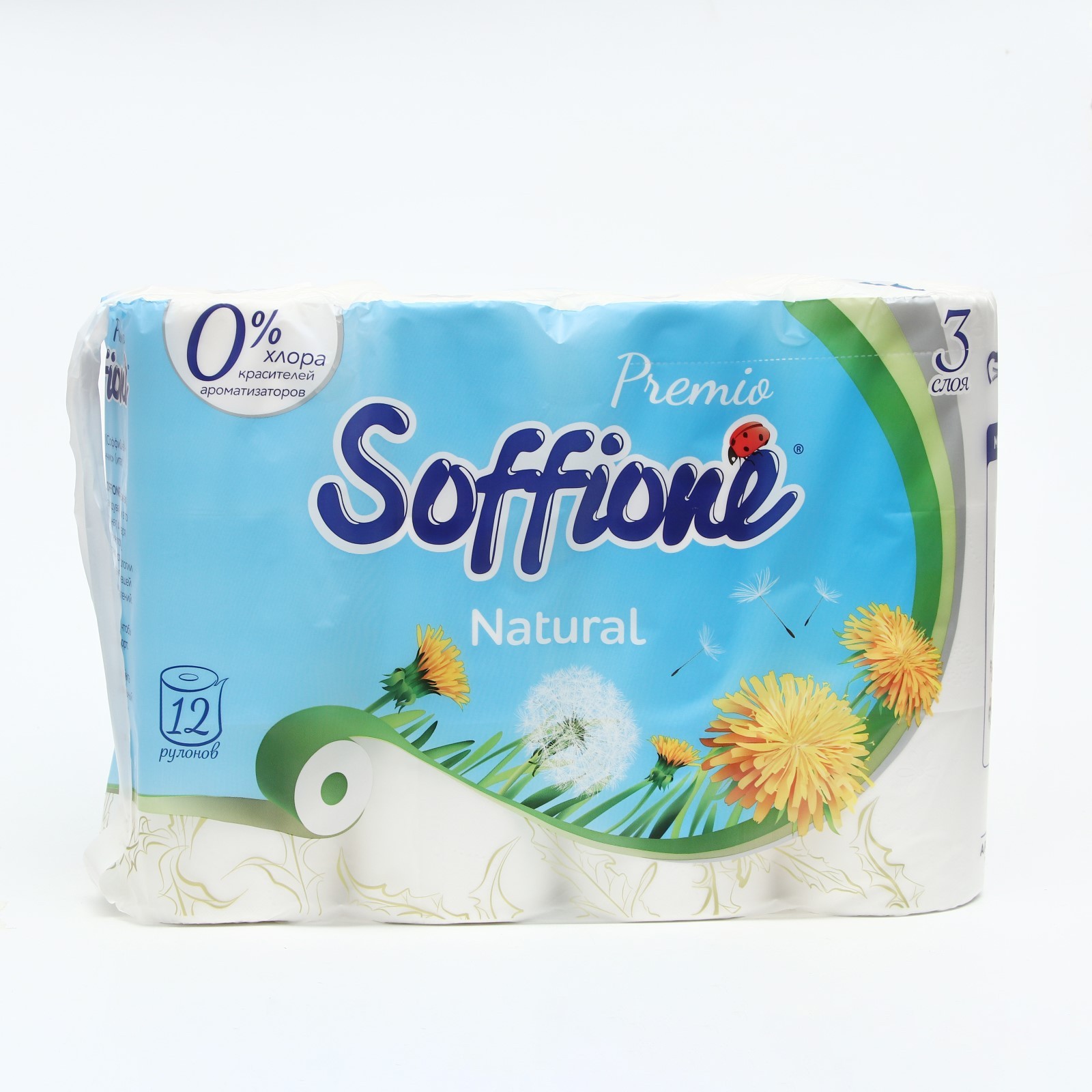 Туалетная бумага Soffione Premio «natural», 3 слоя, 12 рулонов