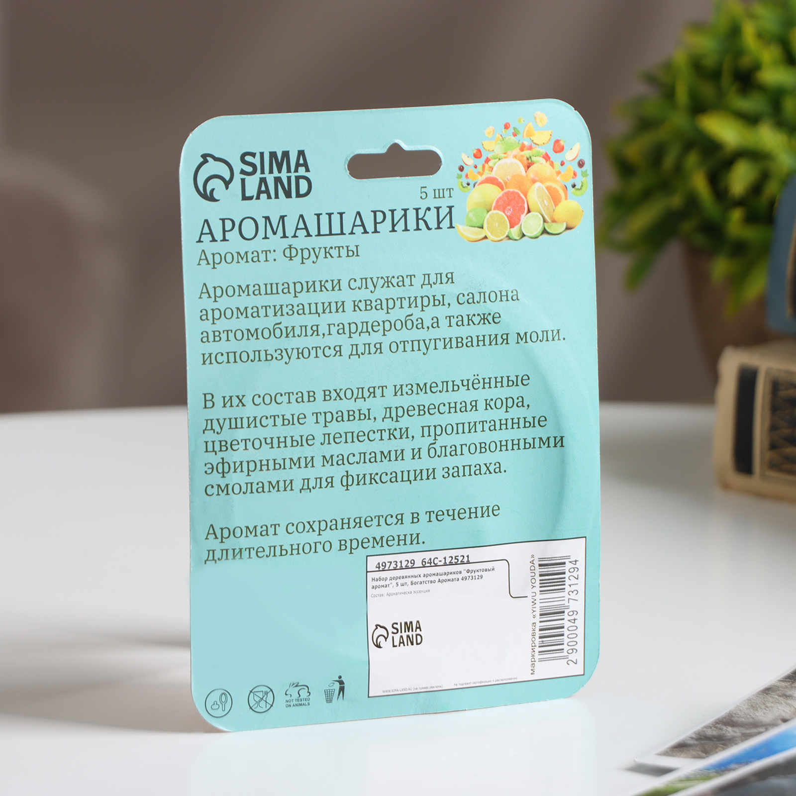 Набор деревянных аромашариков "фруктовый аромат", 5 шт, богатство аромата. Аромасаше - простой способ заставить окружающие нас вещи и помещение отлично пахнуть. Ранее саше было непременным атрибутом в доме каждой леди, а сейчас это доступная роскошь, которая создаст комфортные условия для отдыха, расслабления или же, наоборот, для активной и плодотворной работы. Свойства аромата: сухой, сладкий, легкий;успокаивает, помогает при бессоннице, беспокойстве и раздражительности;оказывает болеутоляющее воздействие;обладает омолаживающим действием. parts count: 0 Вид ароматизатора: Деревянный Аромат: Фруктовый микс  развернуть описание ▼
