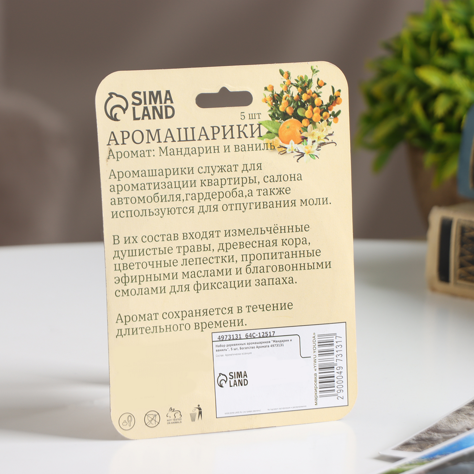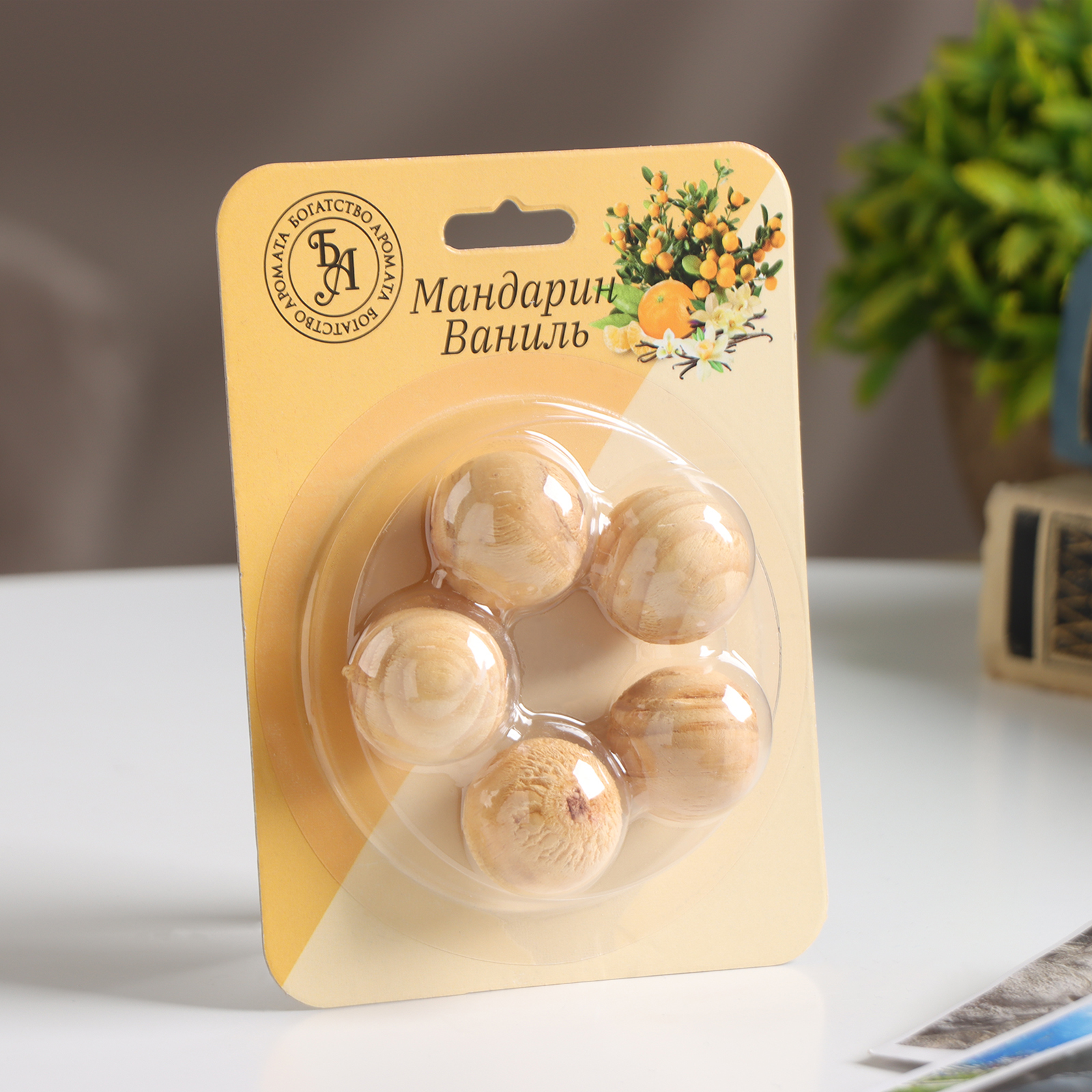 Набор деревянных аромашариков "мандарин и ваниль", 5 шт, богатство аромата
