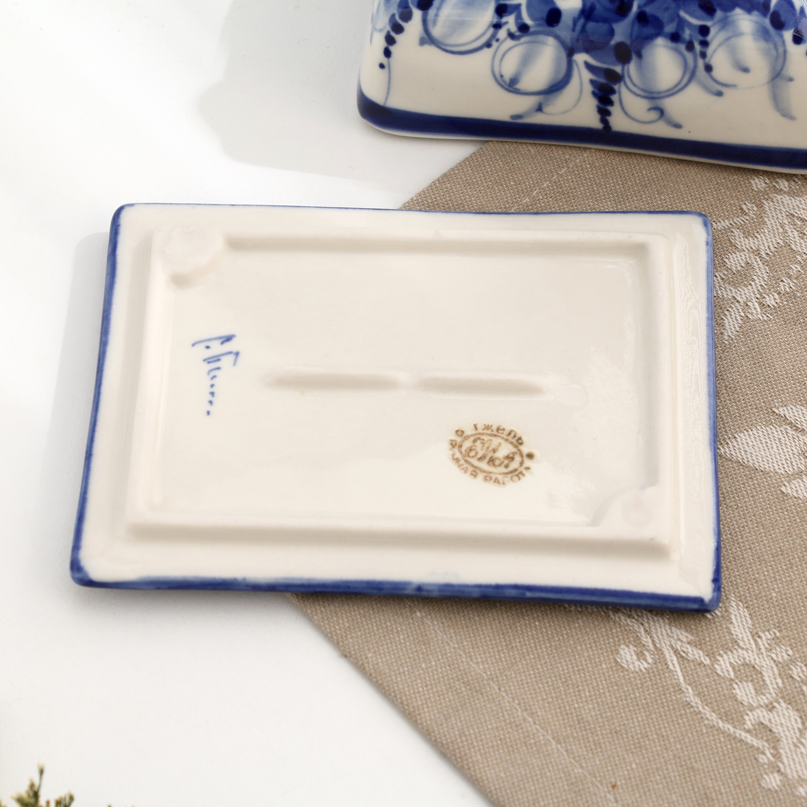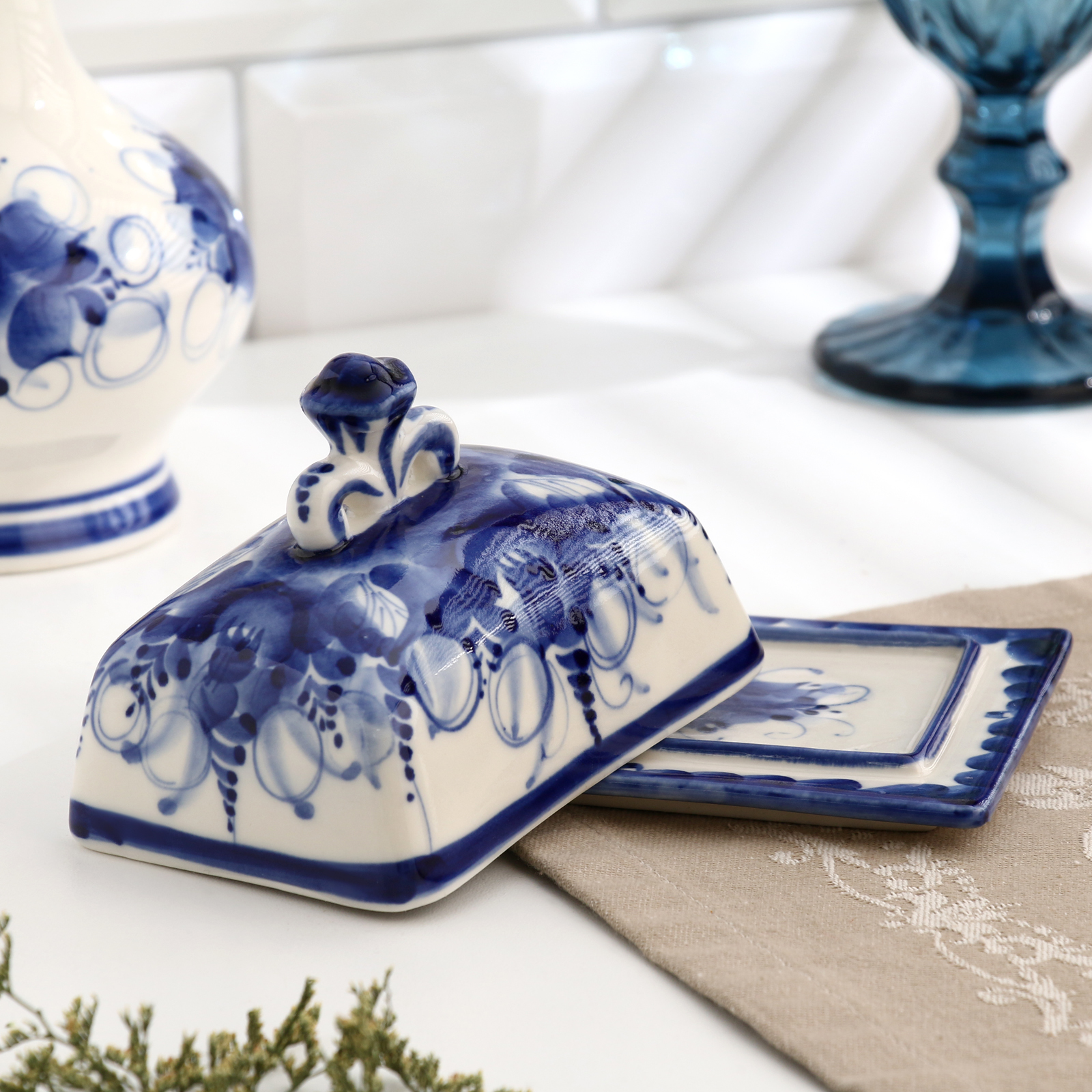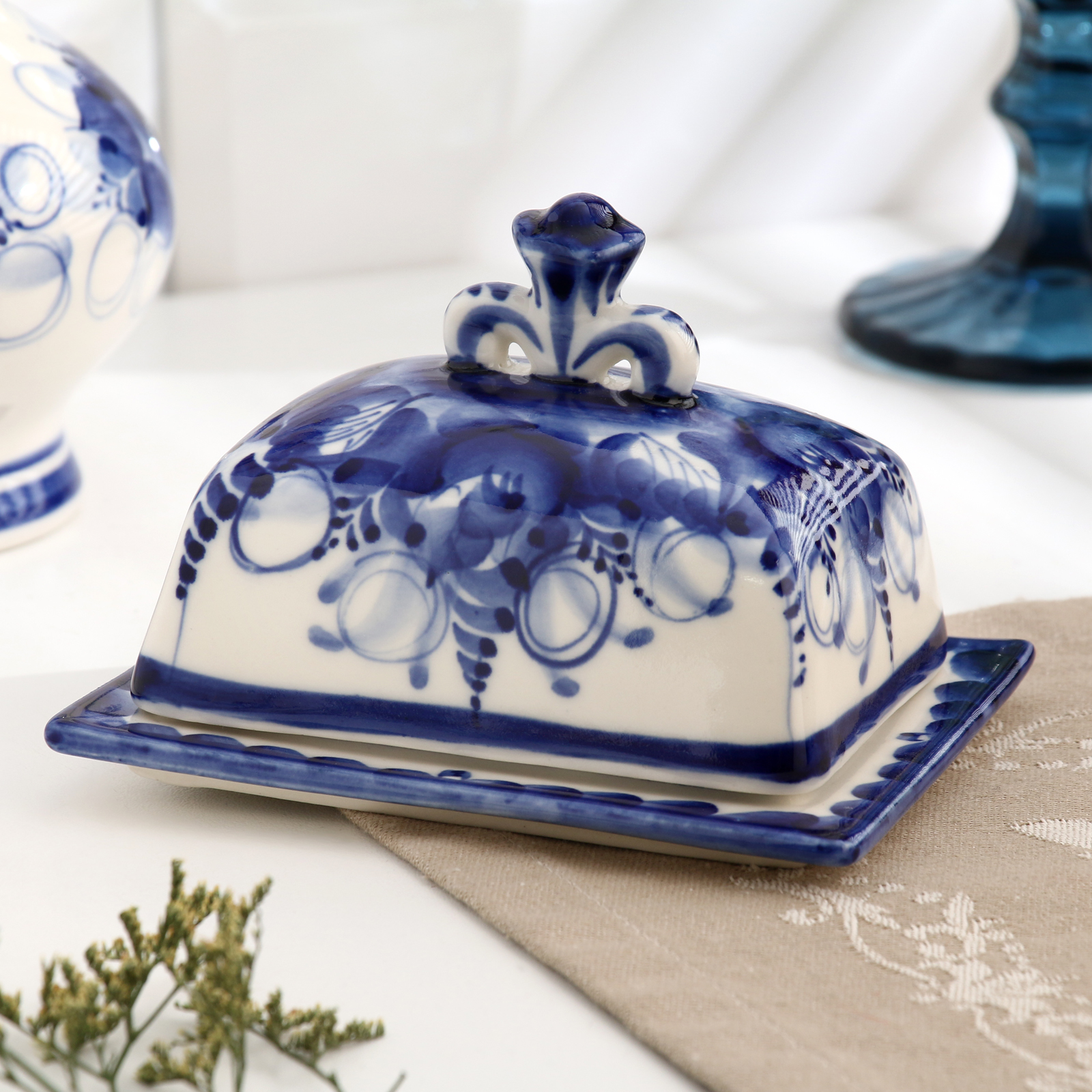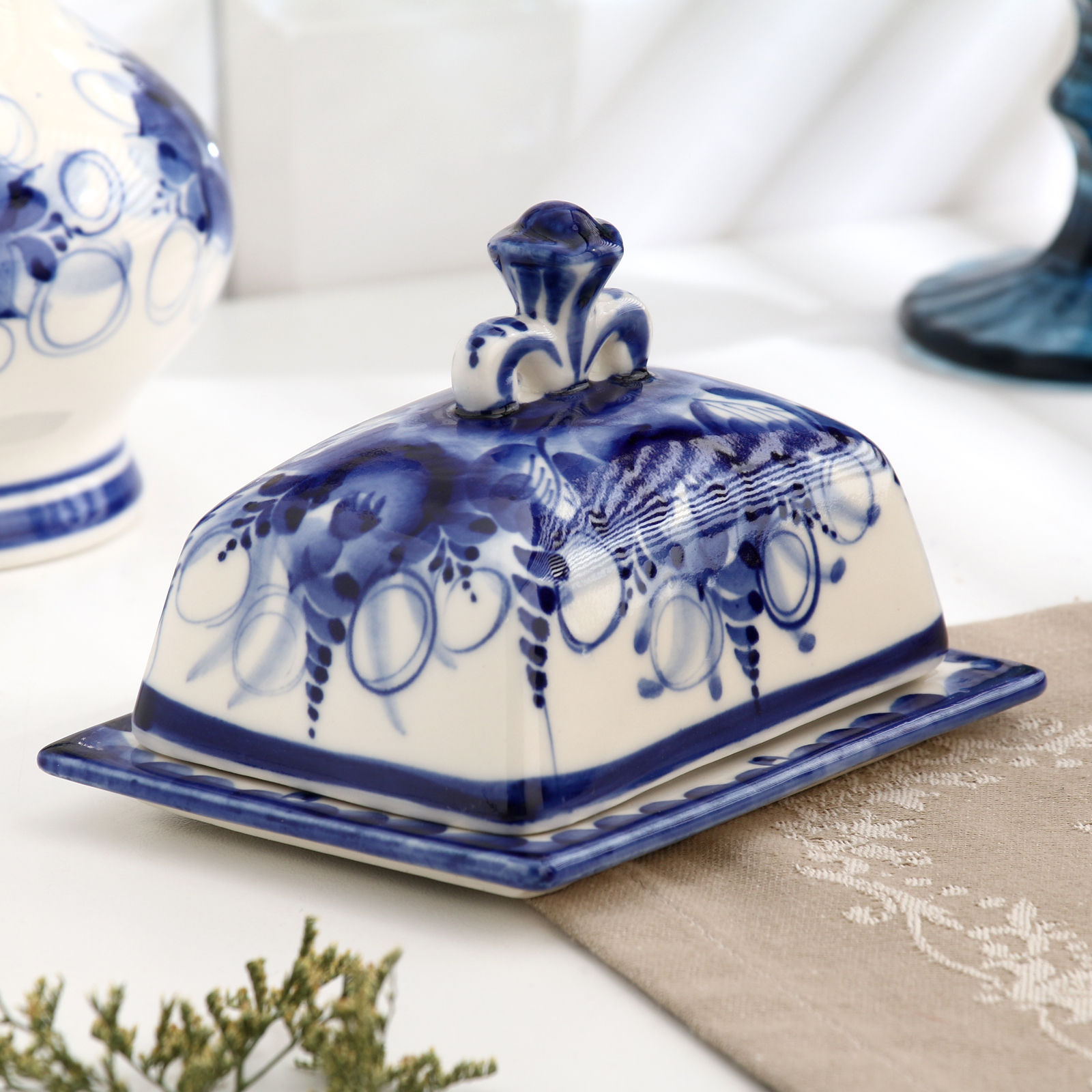 Маслёнка "малоежка", гжель, фарфор, 13х10 см