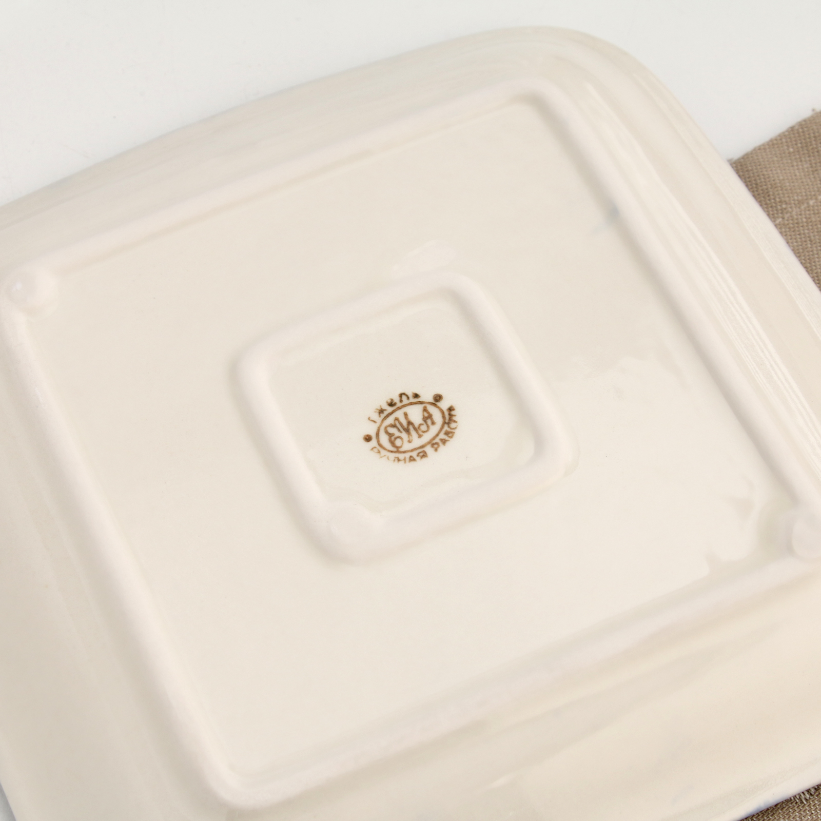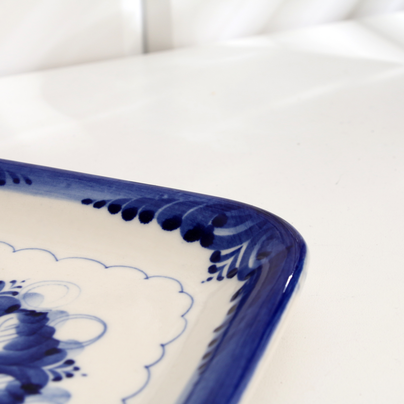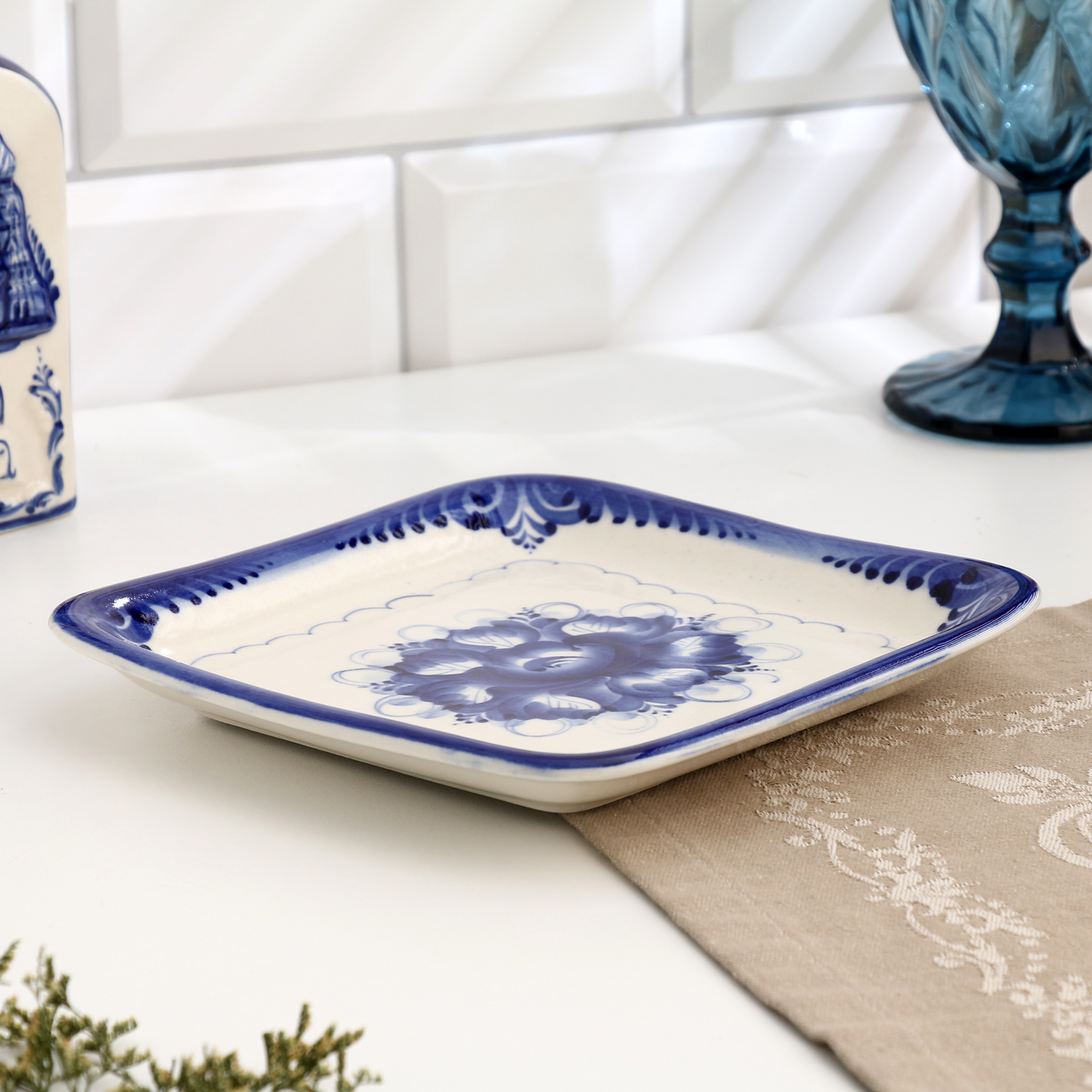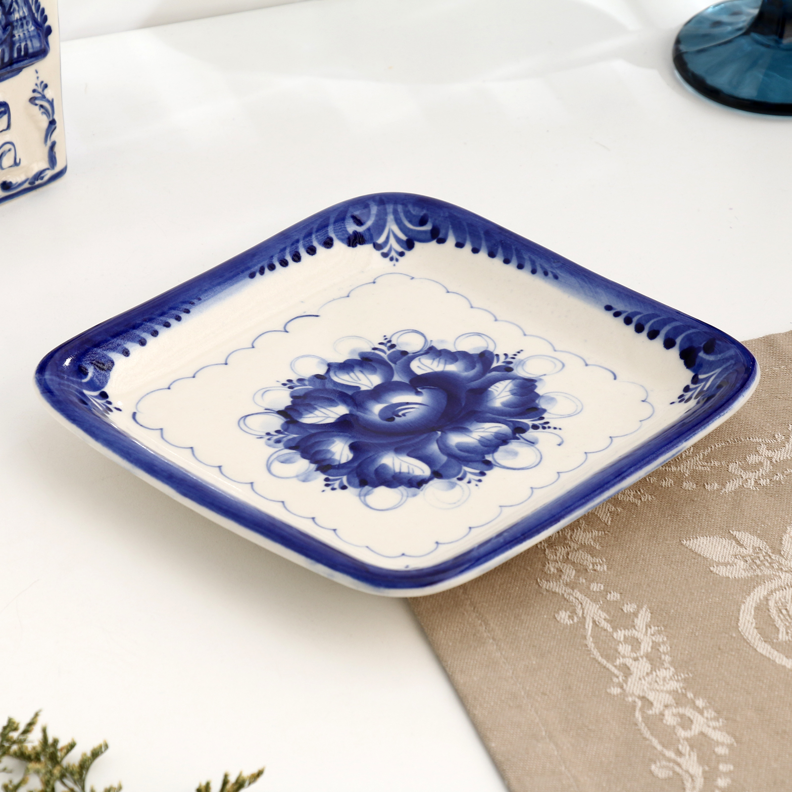 Блюдо "квадратное", гжель, фарфор, 18х18 см