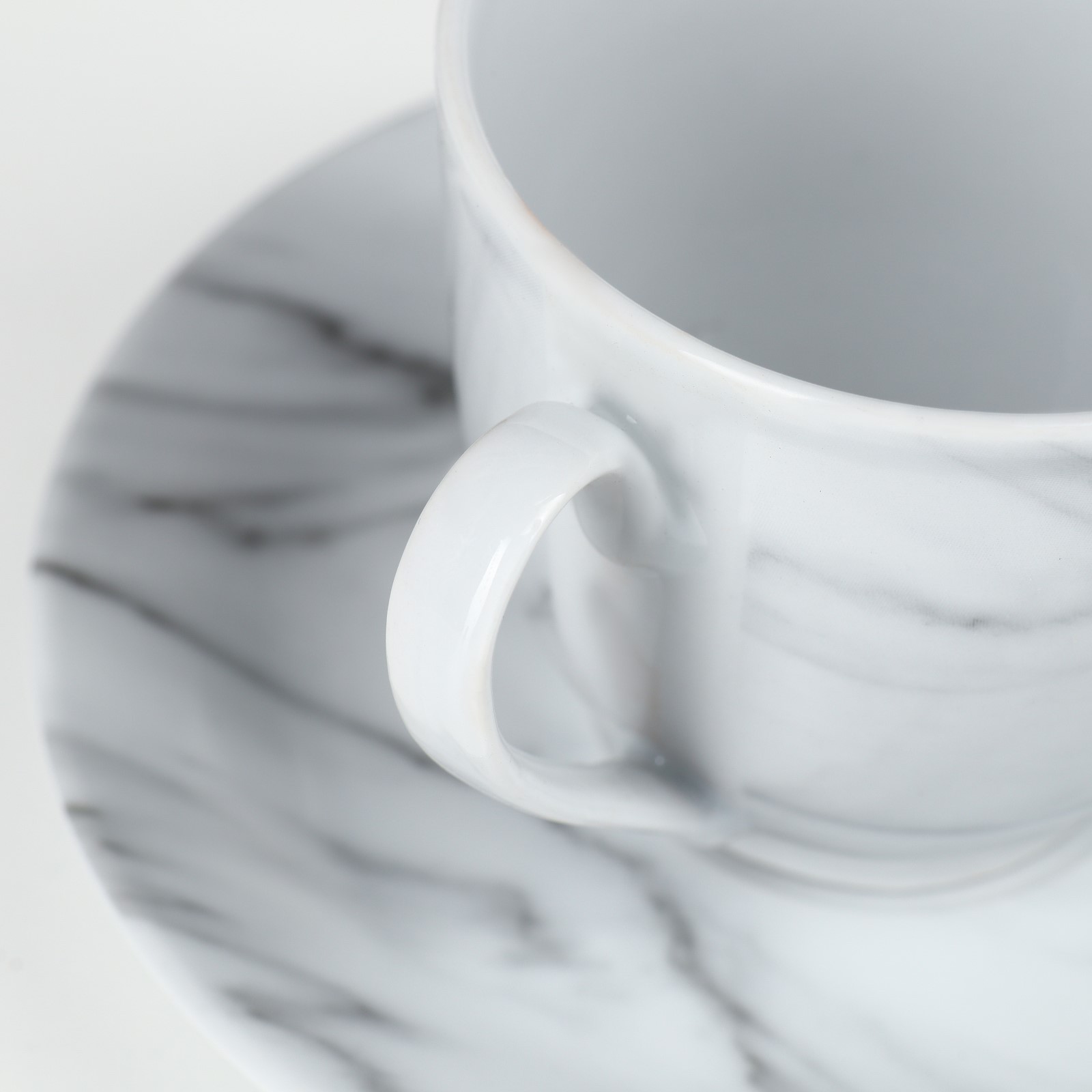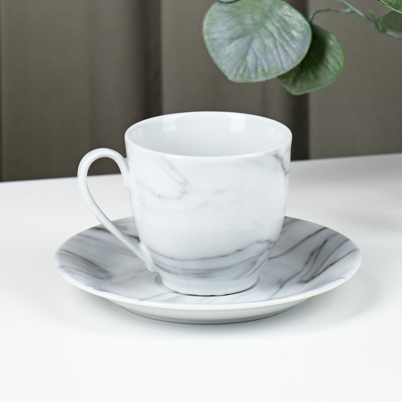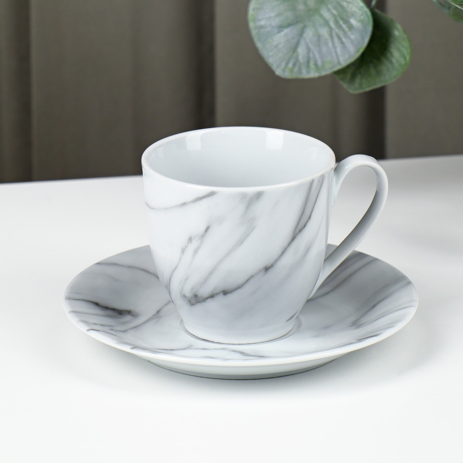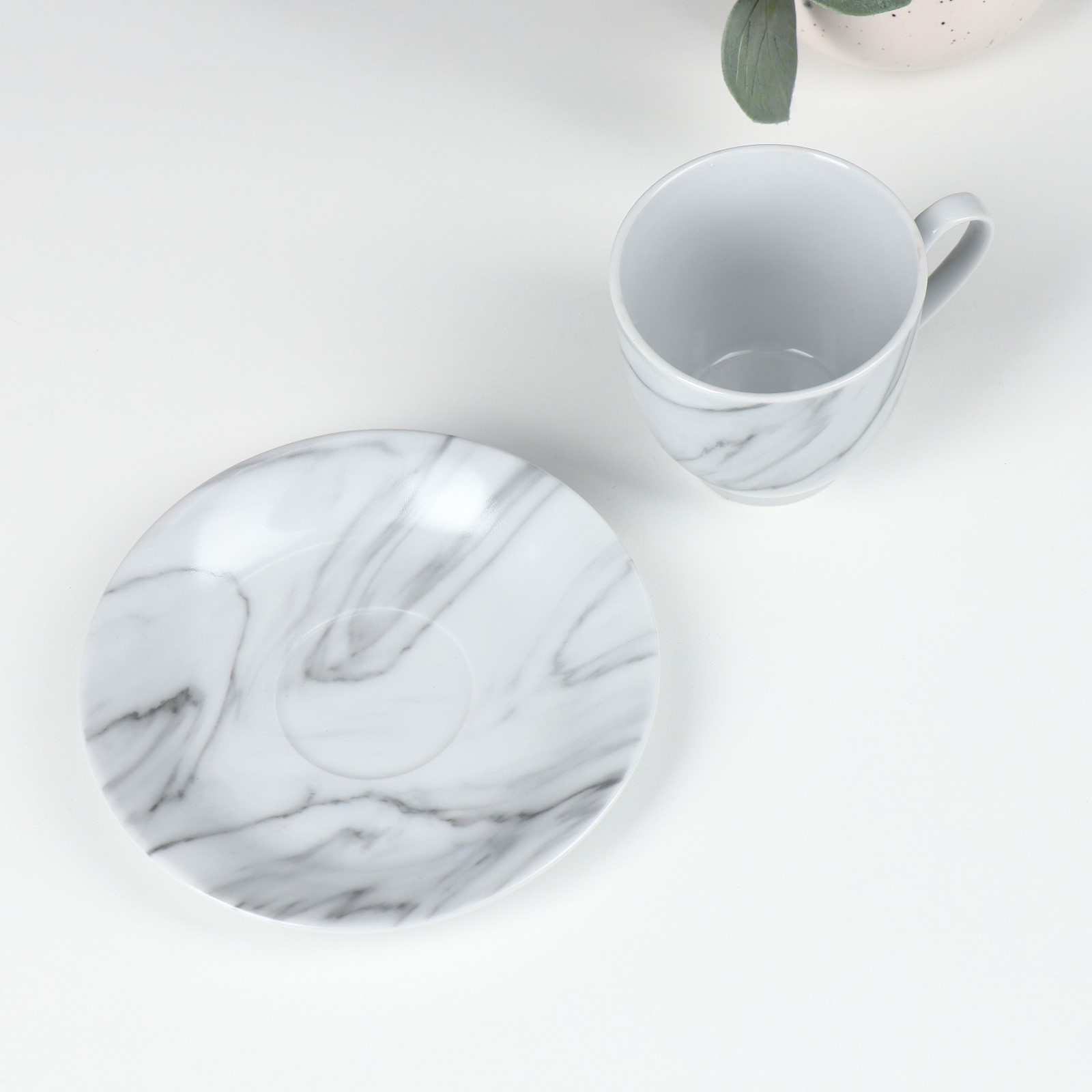 Чайная пара керамическая доляна «мрамор», 2 предмета: чашка 200 мл, блюдце D=14,5 см, цвет серый