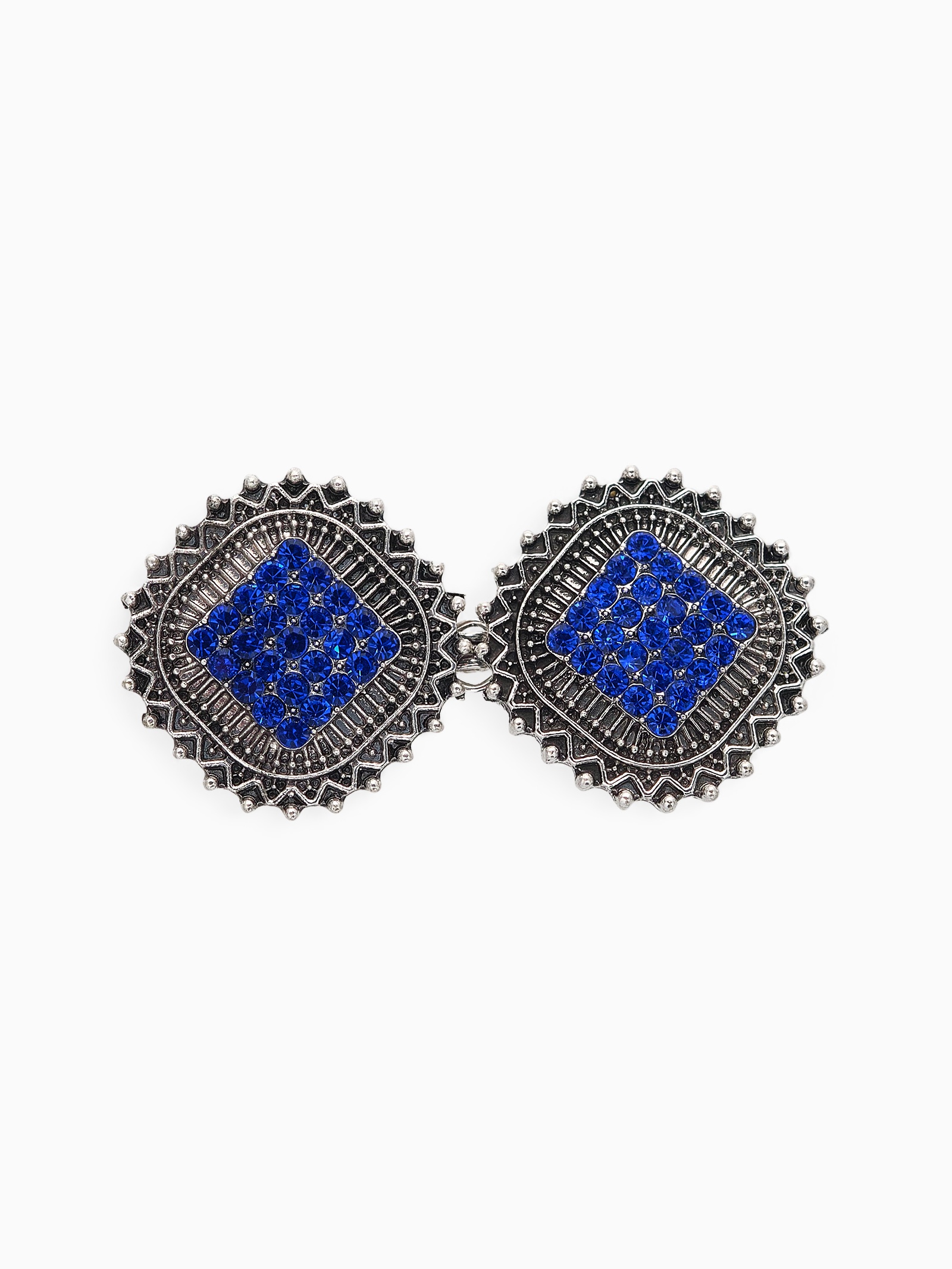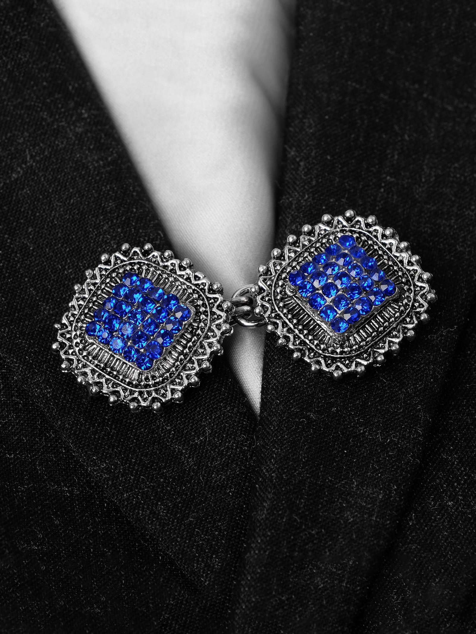 Зажим для кардигана «квадраты», цвет синий в чернёном серебре