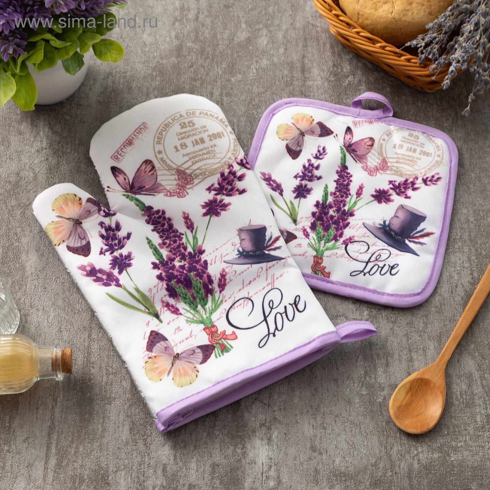 Кухонный набор «доляна» Love, прихватка 17х17 см, рукавица 26х16 см