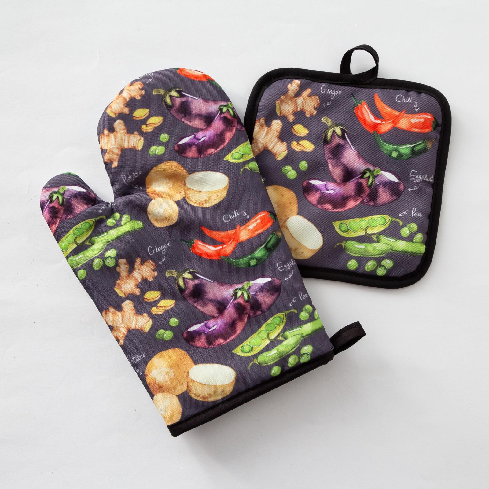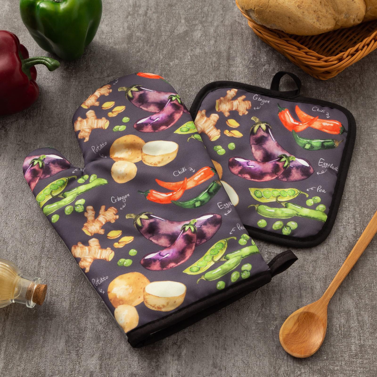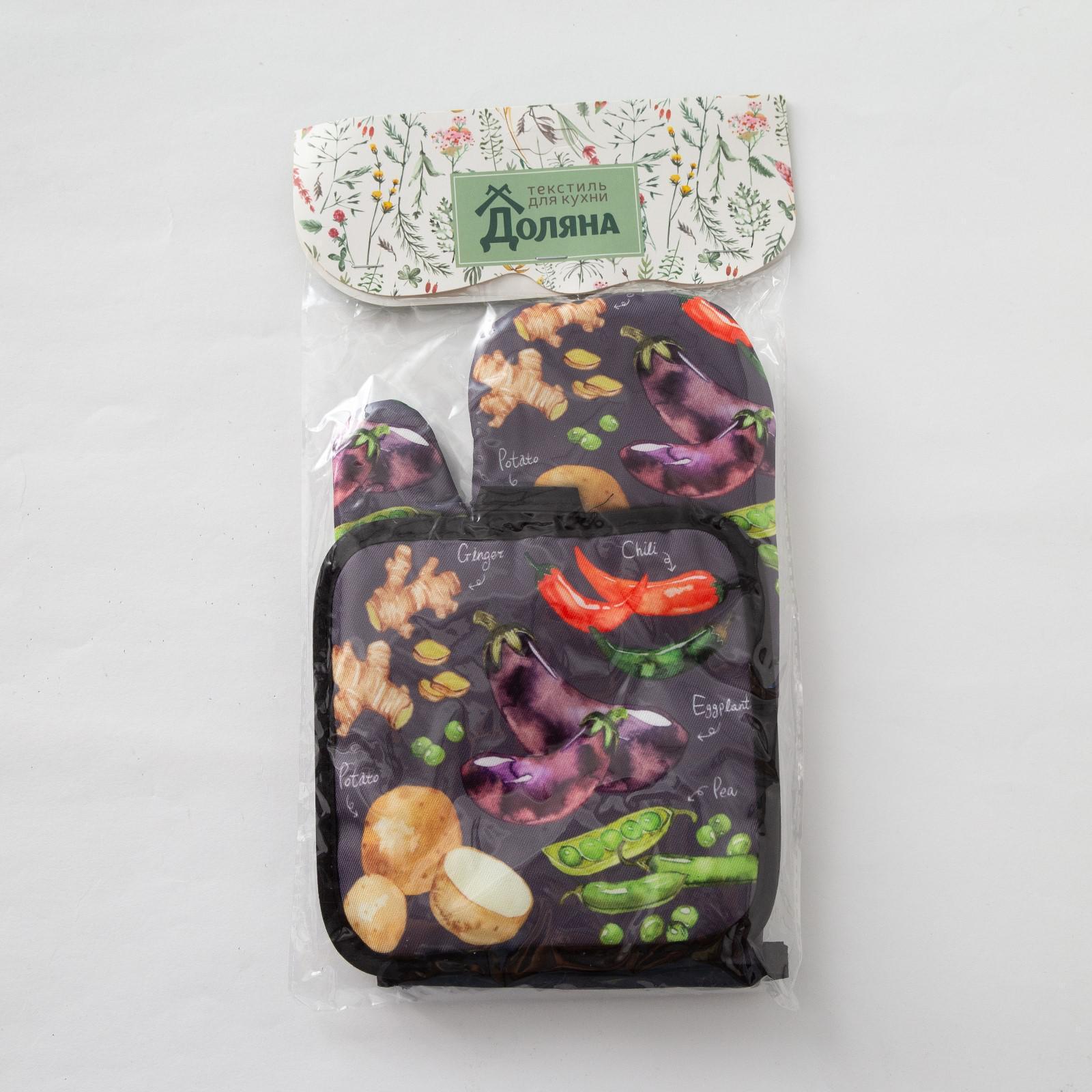 Кухонный набор доляна «овощи», прихватка 17х17 см, рукавица 26х16 см